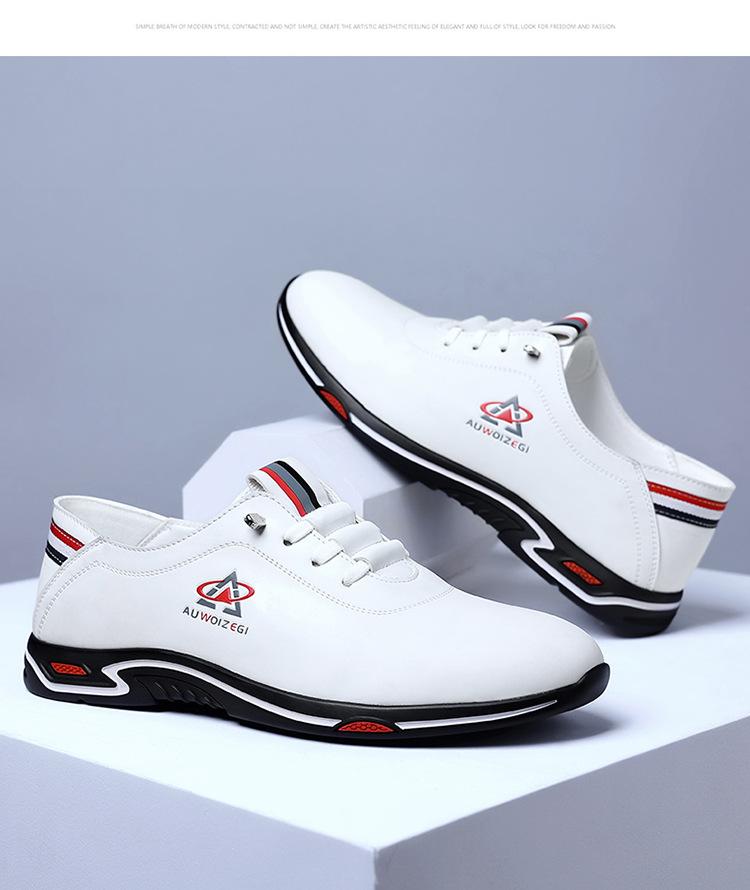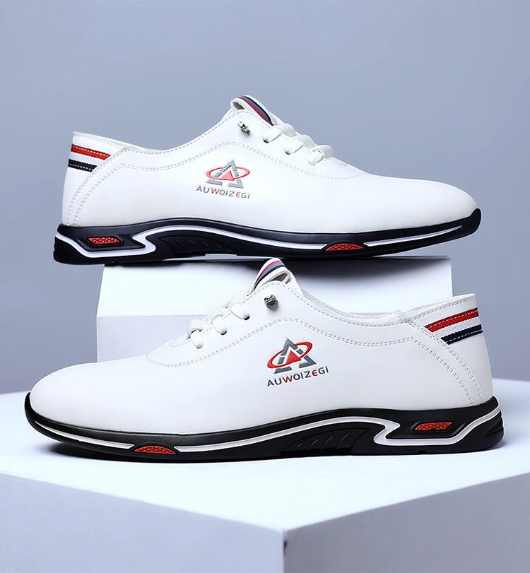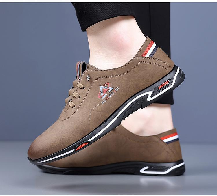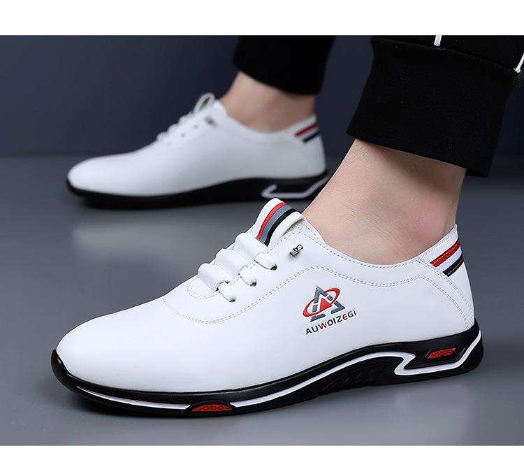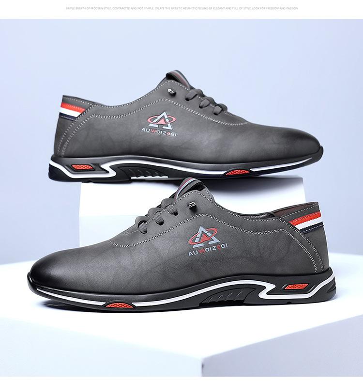 Zapatos casuales de cuero para hombre, combinables con todo, con suela y superficie suaves, transpirables y sin cordones, 2595