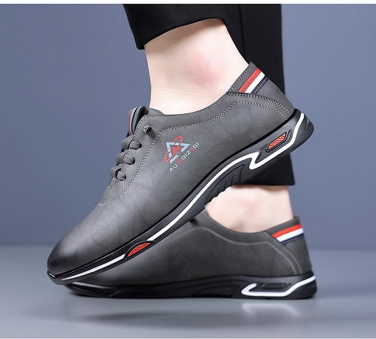 Zapatos casuales de cuero para hombre, versátiles, con suela suave y superficie suave, transpirables y sin cordones 2595
