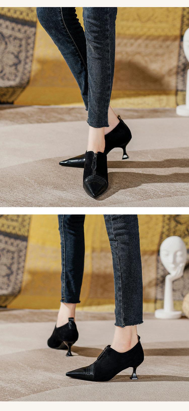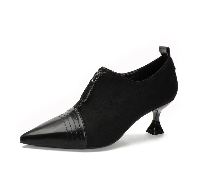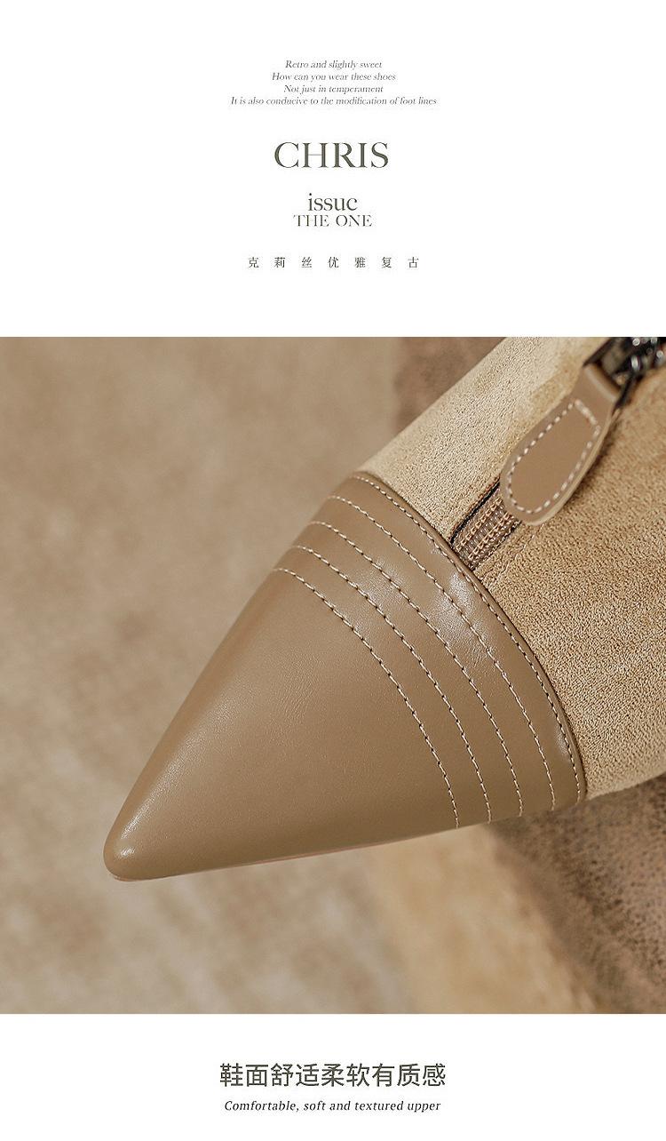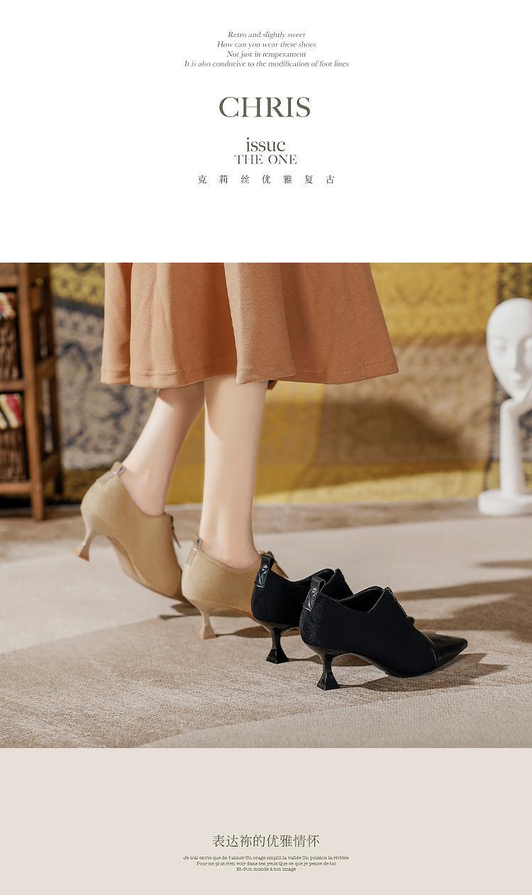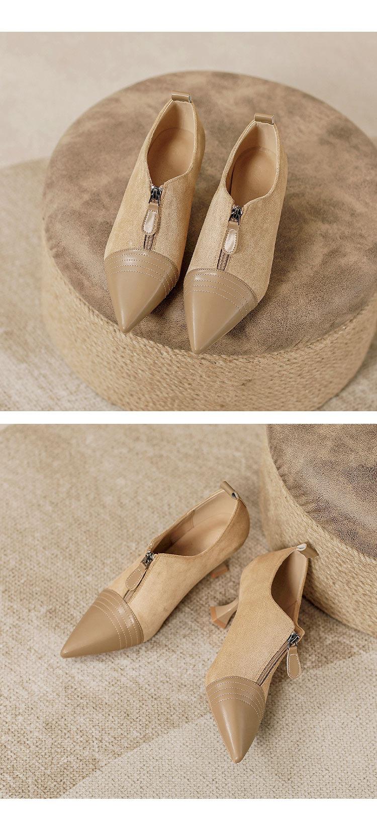 Tacones Altos de Aguja para Mujer 2025 Nuevo Otoño e Invierno Cremallera Frontal Retro Británico Zapatos de Mujer Empalmados Punta Afilada Boca Profunda Flats
