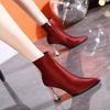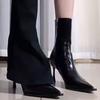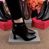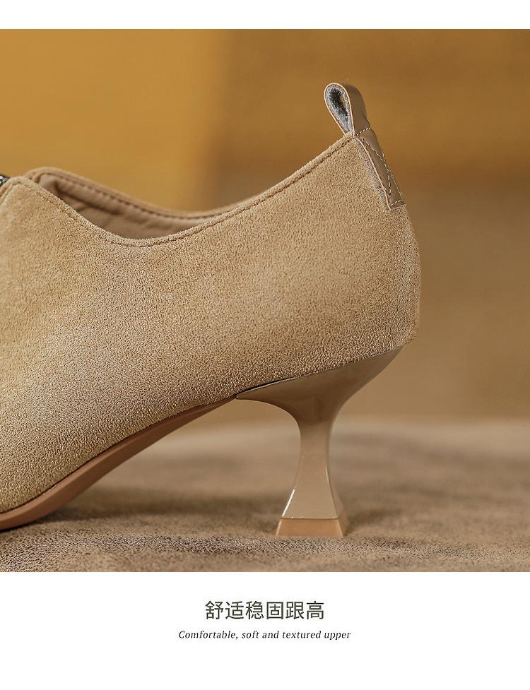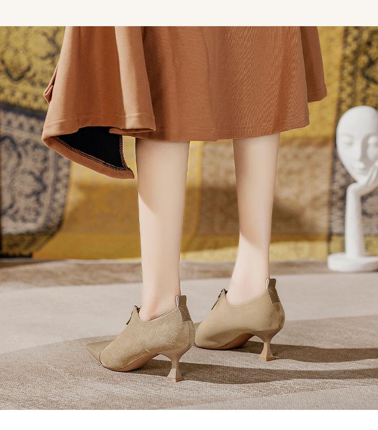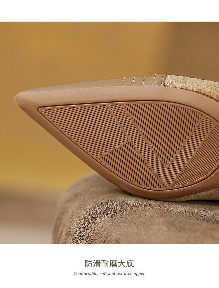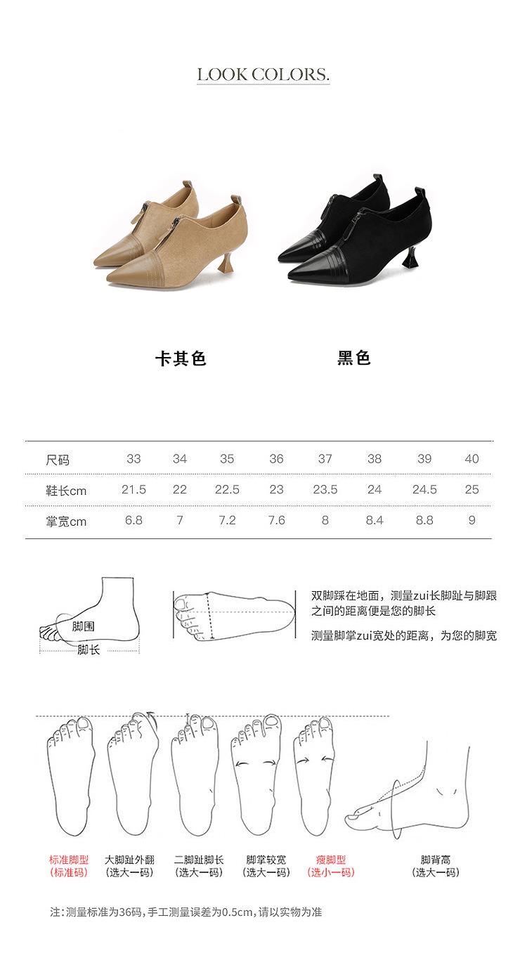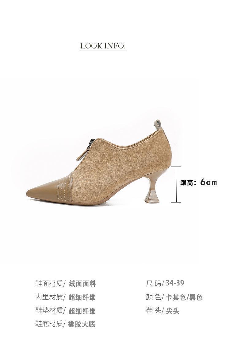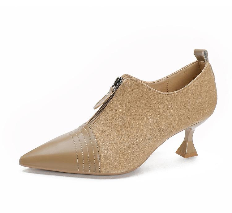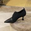 Tacones Altos de Aguja para Mujer 2025 Nuevo Otoño e Invierno Cremallera Frontal Retro Británico Zapatos de Mujer Empalmados Punta Afilada Boca Profunda Flats