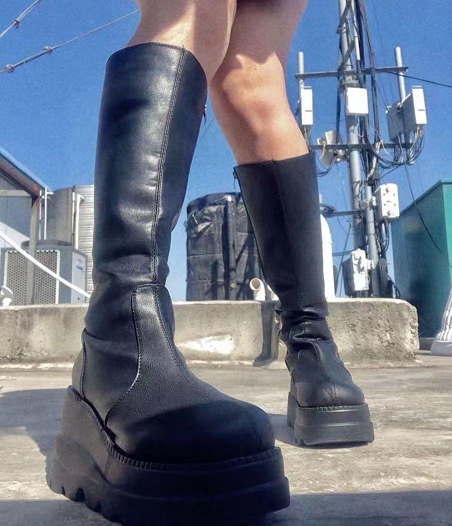 Botas elásticas, botas gruesas y ajustadas, botas altas de caballero, estilo británico, botas de altura pequeña para mujer, otoño 2024, nuevas