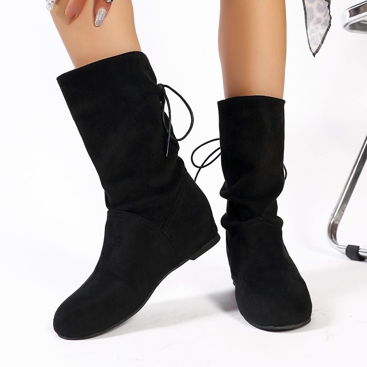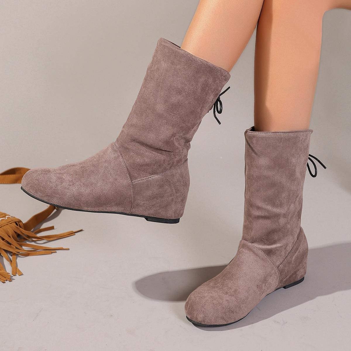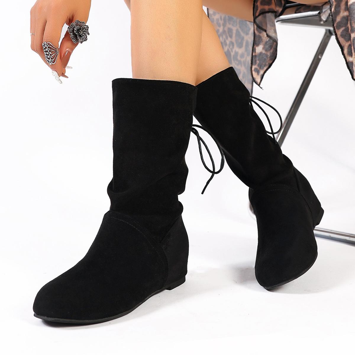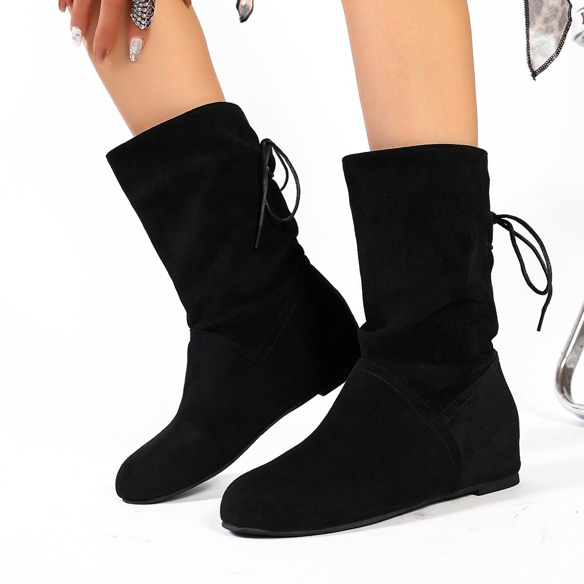 Comercio exterior talla grande botas cortas mujer 2024 otoño e invierno nuevo europeo y americano manga punta redonda suela gruesa cordones botas Martin mujer mayoreo