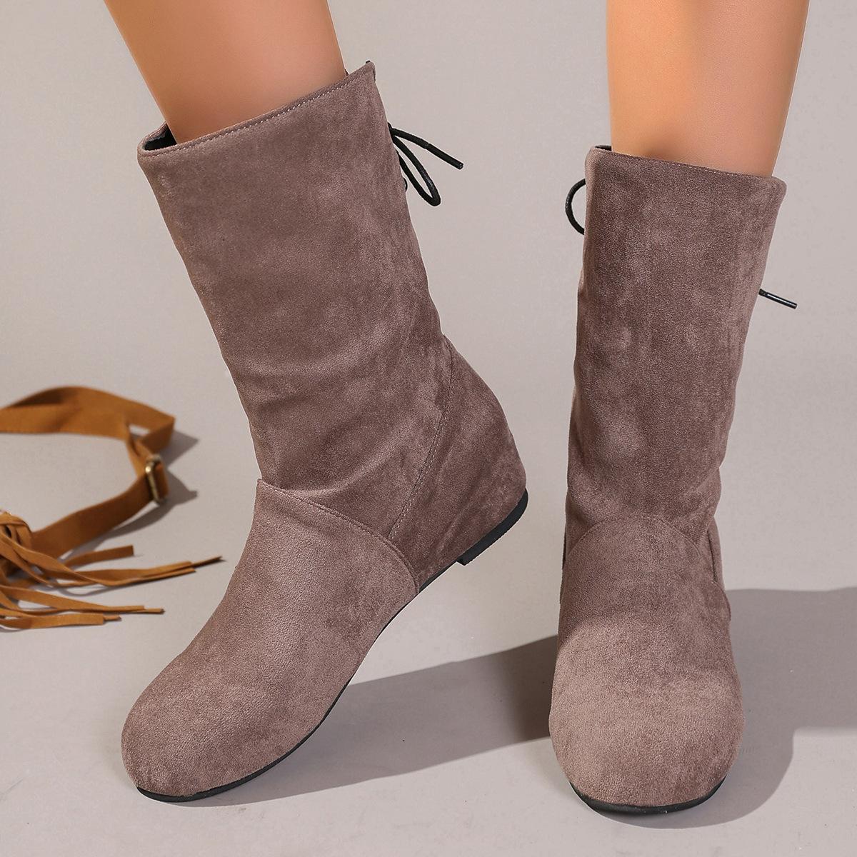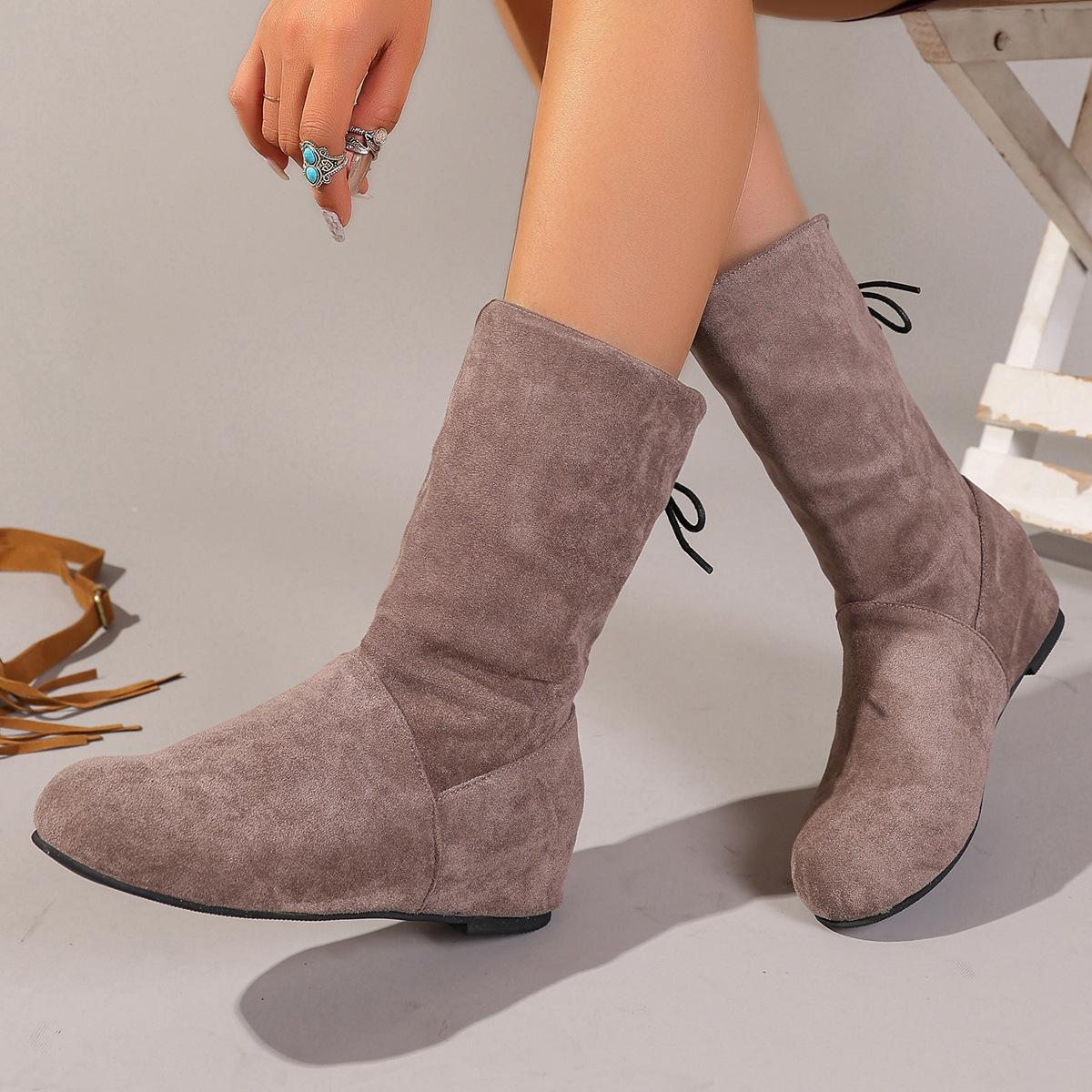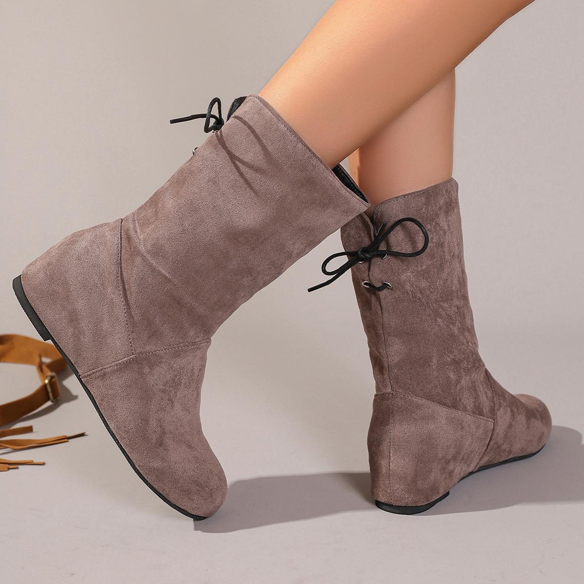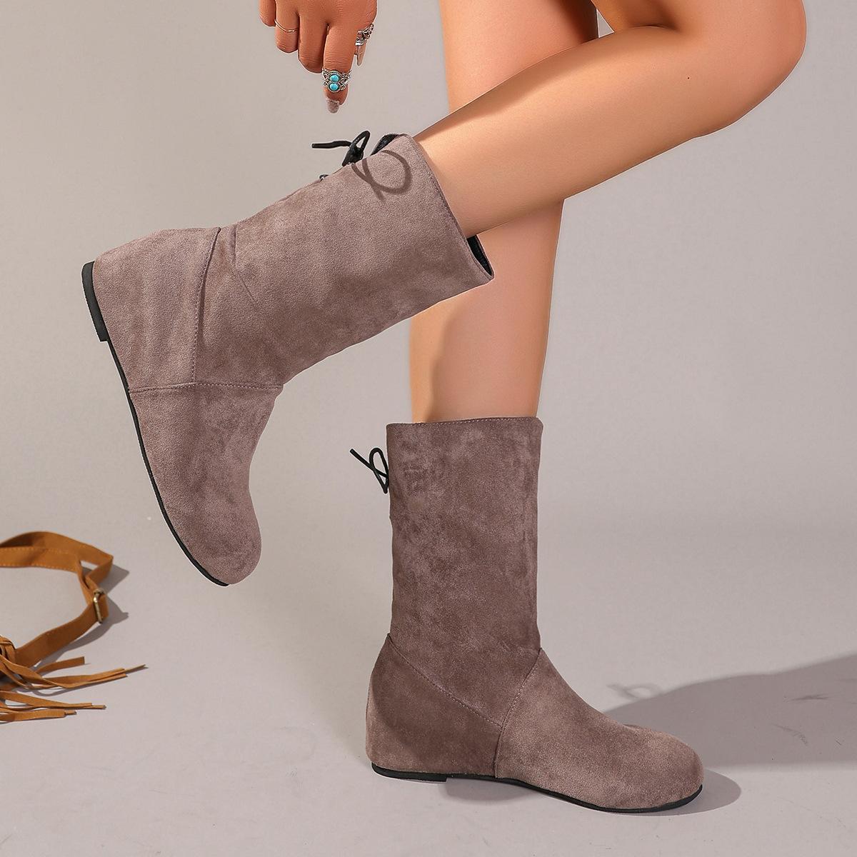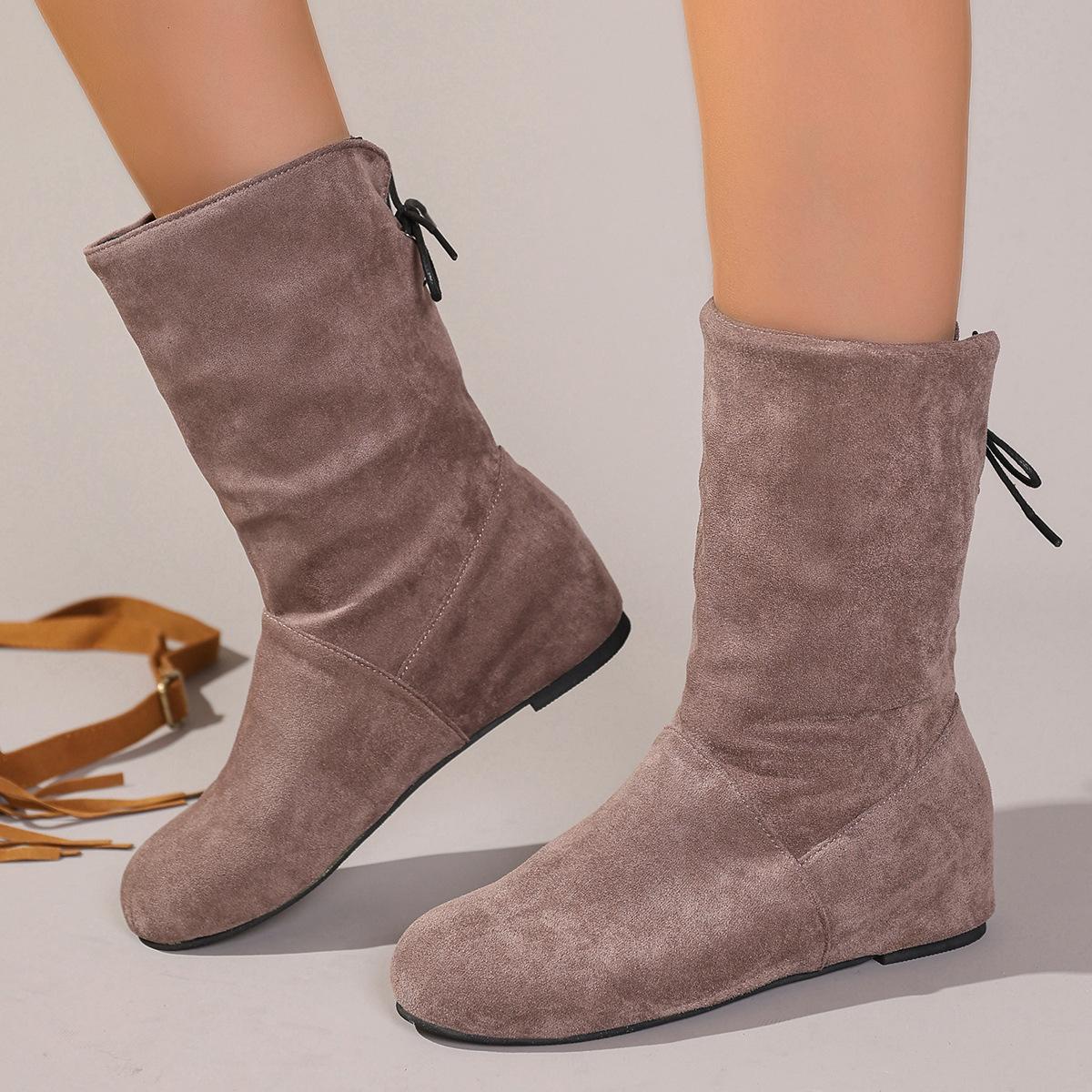 Comercio exterior talla grande botas cortas mujer 2024 otoño e invierno nuevo europeo y americano manga punta redonda suela gruesa cordones botas Martin mujer mayoreo