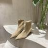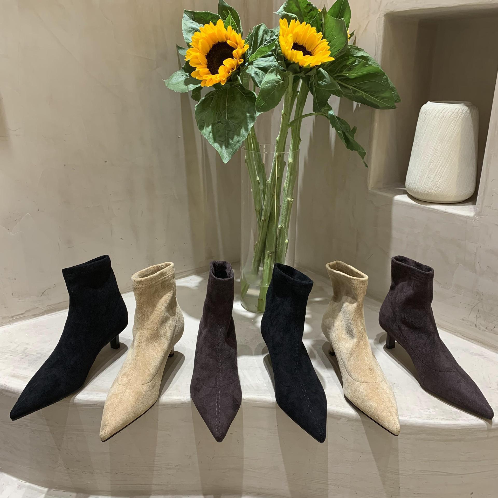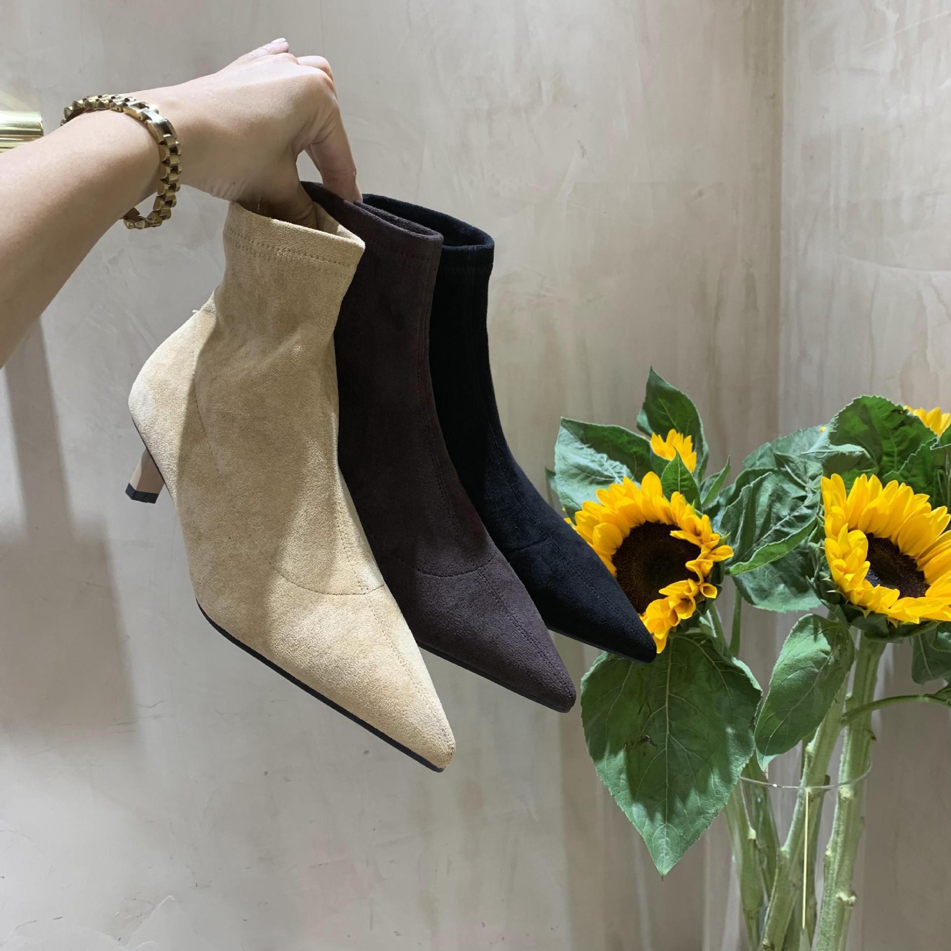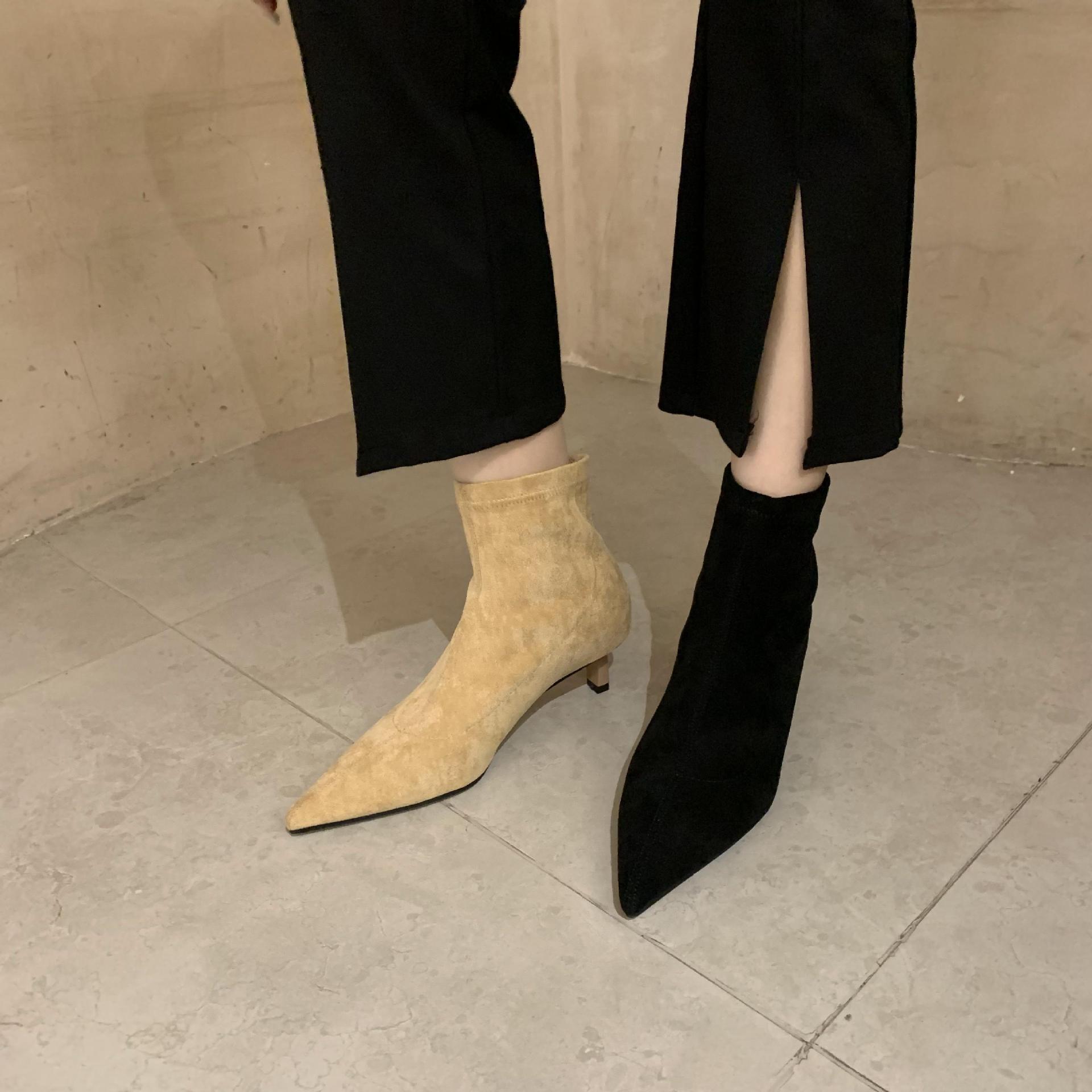 Botas elásticas de tacón fino y puntiagudo para otoño e invierno de 2023, populares en Internet, botas finas, botas de media caña, botas de viaje con tacón alto esmerilado y forro polar para mujer