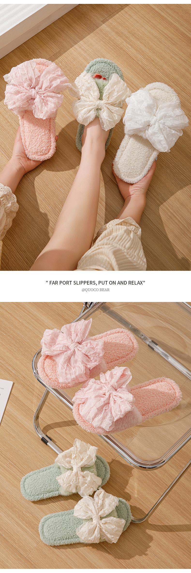 Pantuflas de algodón con lazo abierto de Amazon transfronterizo, pantuflas mullidas de algodón para el hogar, pantuflas de felpa para interiores