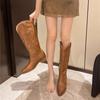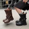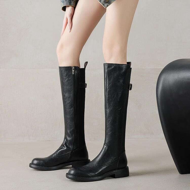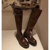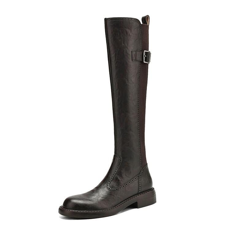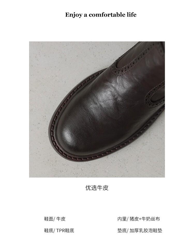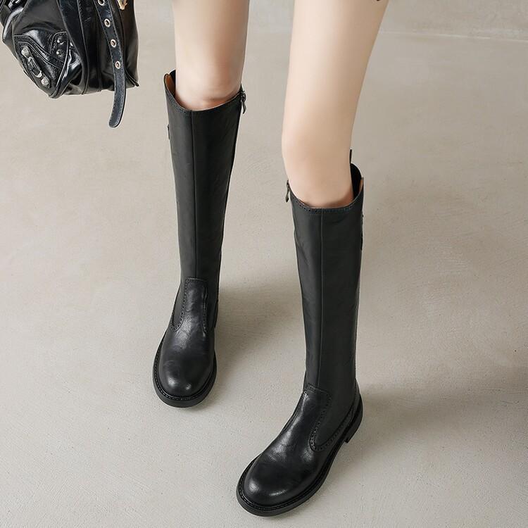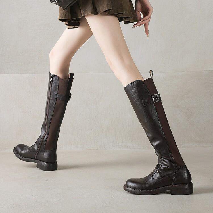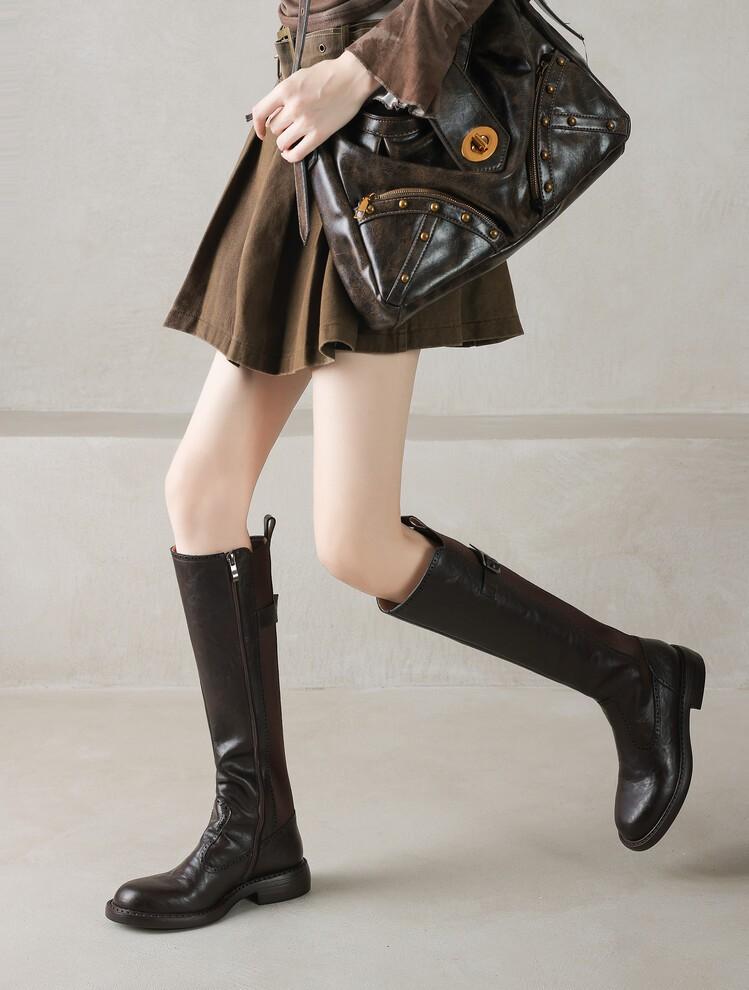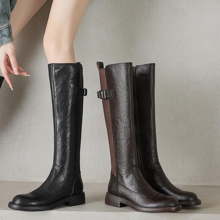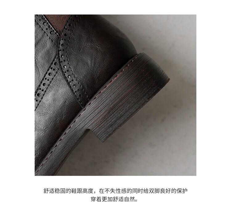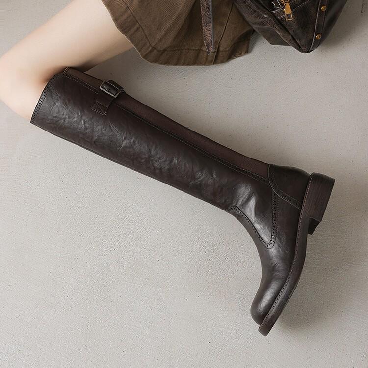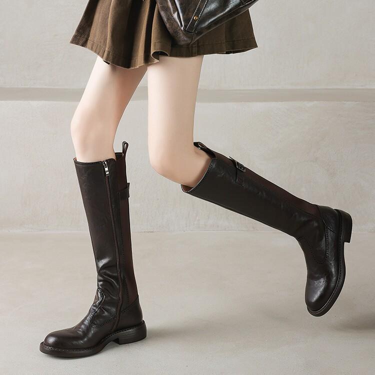 11 Carnaval ~ botas nuevas de caballero marrones de cuero completo por dentro y por fuera 2024 otoño e invierno punta redonda tacón grueso cremallera lateral botas mujeres