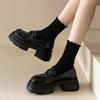 Zapatos de Mujer Flats 2025 Nuevo Primavera Estudiante Guapo Suela Gruesa Negro Estilo Británico Zapatos de Cuero Pequeños Mocasines de Plataforma Otoño
