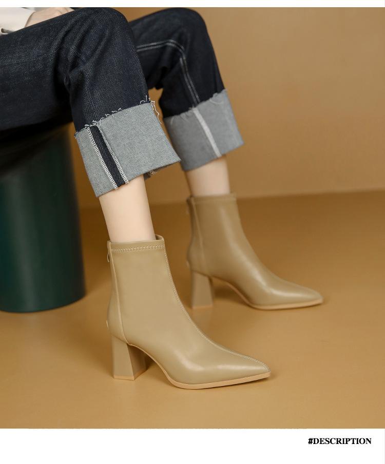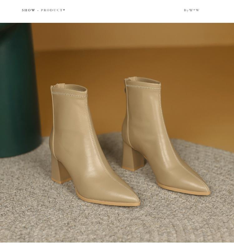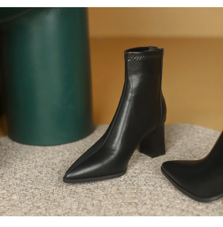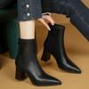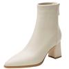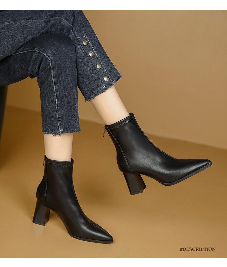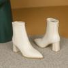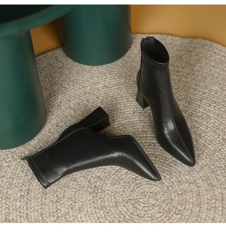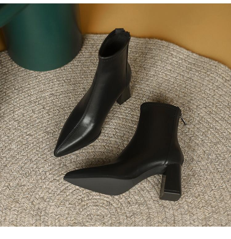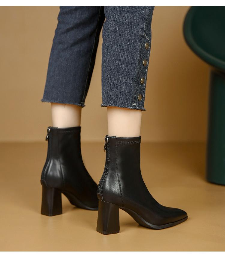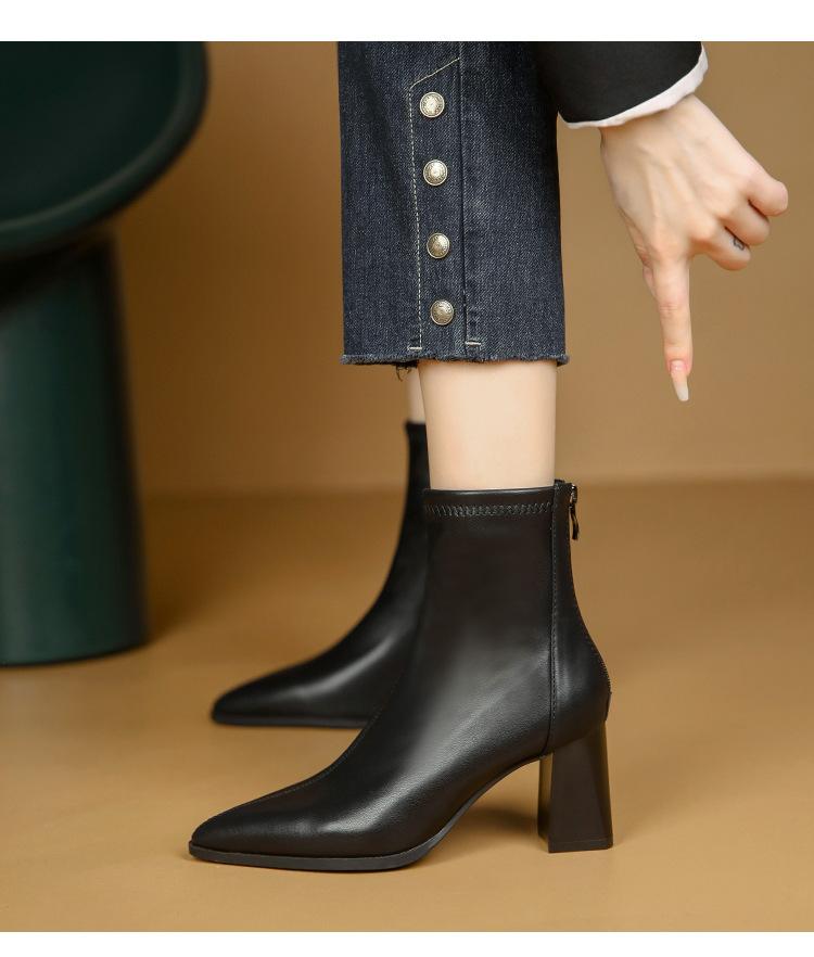 Botas de Mujer Tacón Grueso Cuero Suave 2024 Otoño e Invierno Nuevo Versátil Francés Tacón Pequeño Botines Tacón Medio Forradas de Lana Botas Slim
