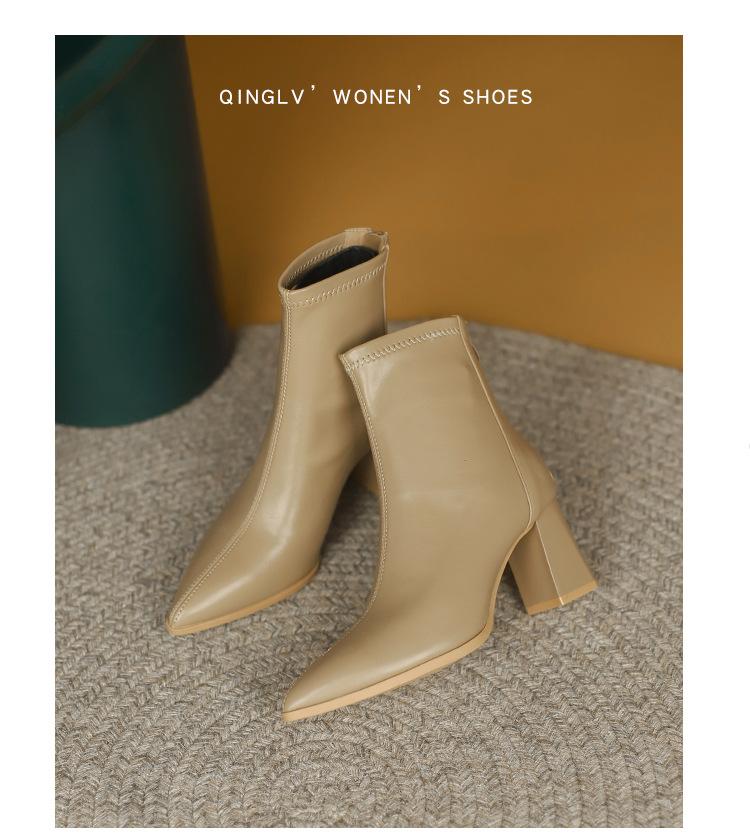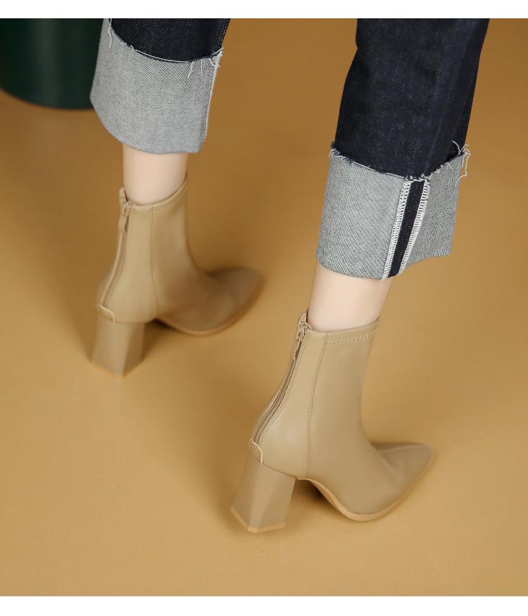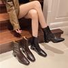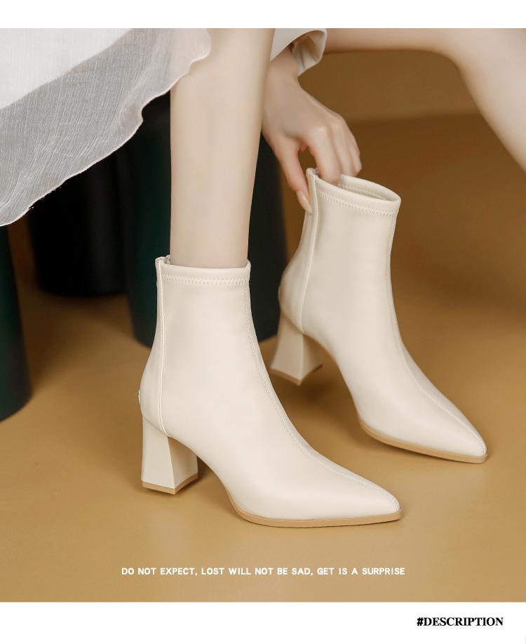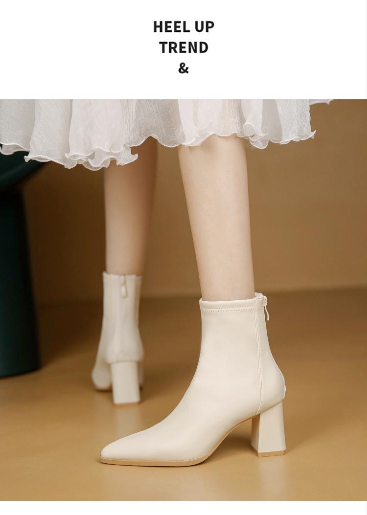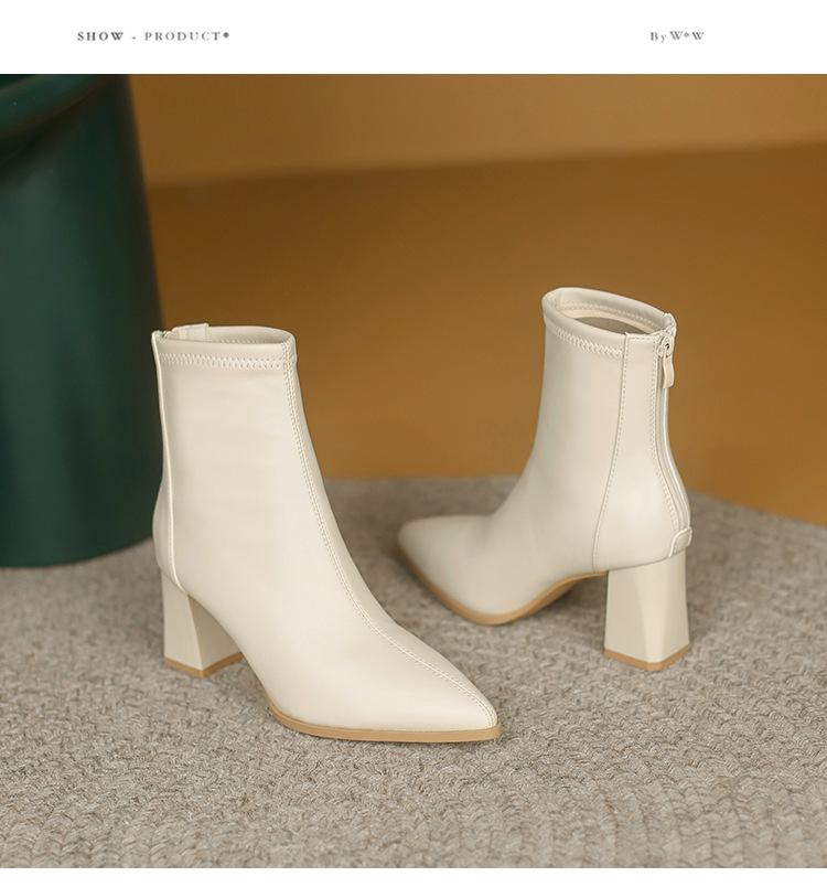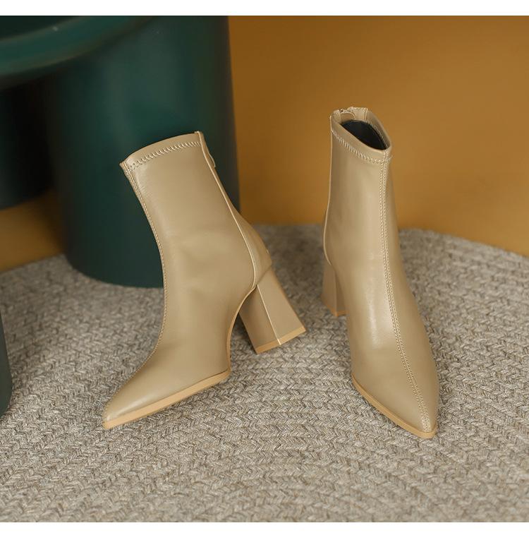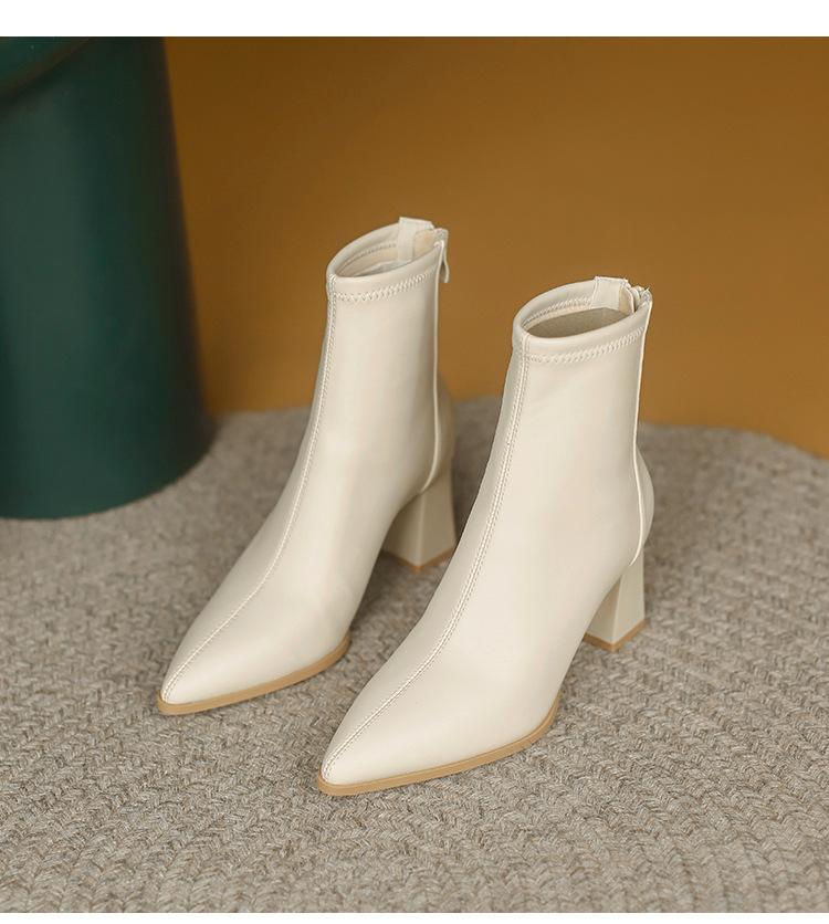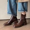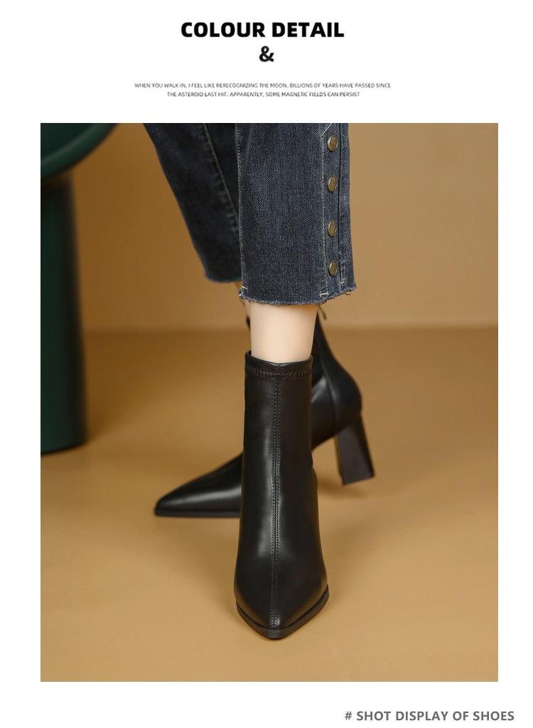 Botas de Mujer Tacón Grueso Cuero Suave 2024 Otoño e Invierno Nuevo Versátil Francés Tacón Pequeño Botines Tacón Medio Forradas de Lana Botas Slim