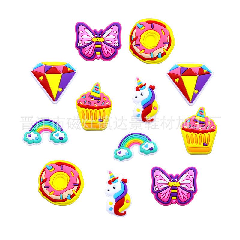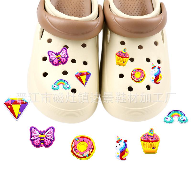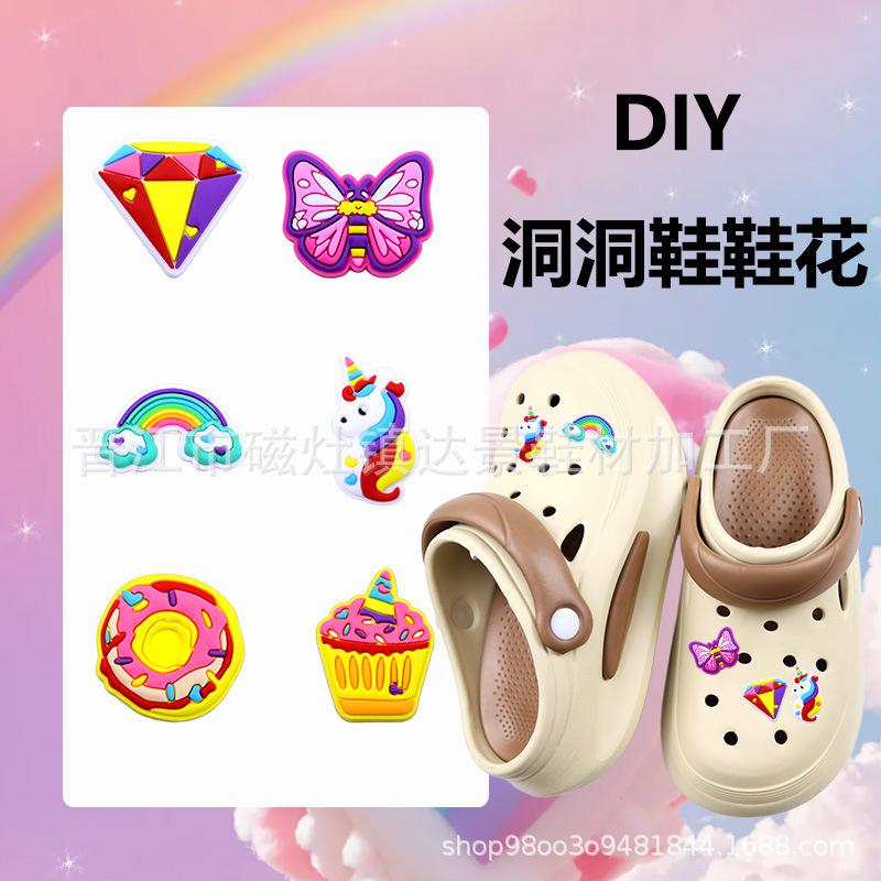 Nuevo color transfronterizo creativo zapatos con agujeros zapatos flor hebilla de zapato PVC goma suave desmontable accesorios de dibujos animados diy