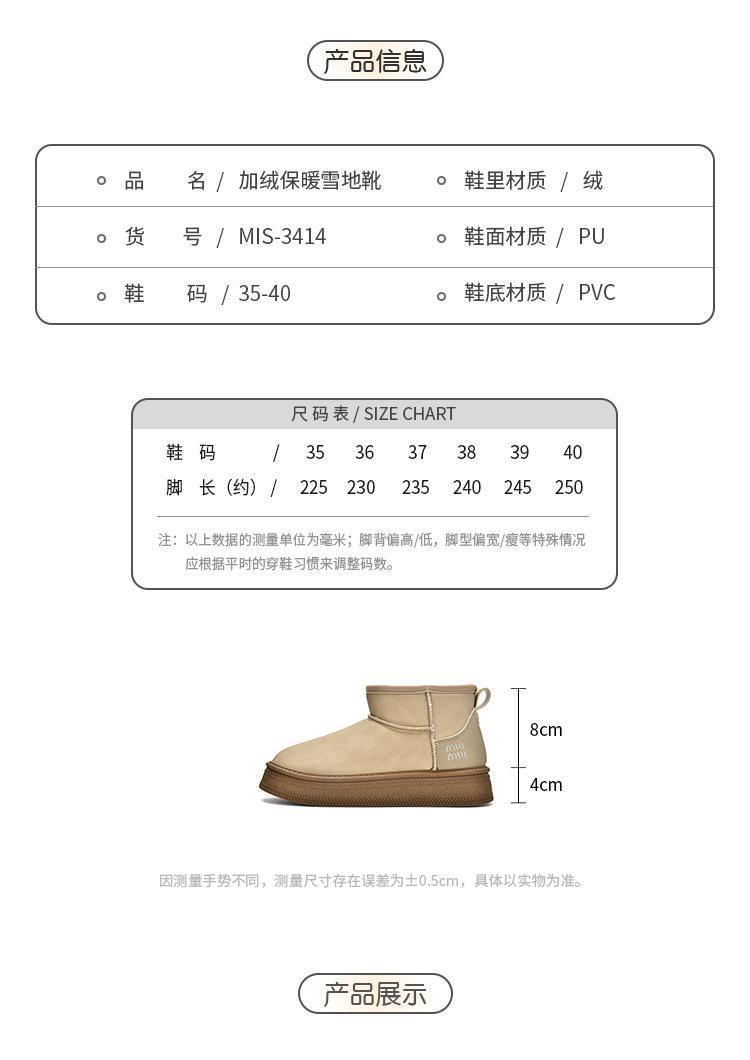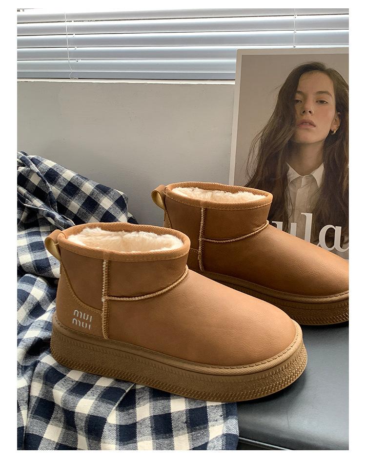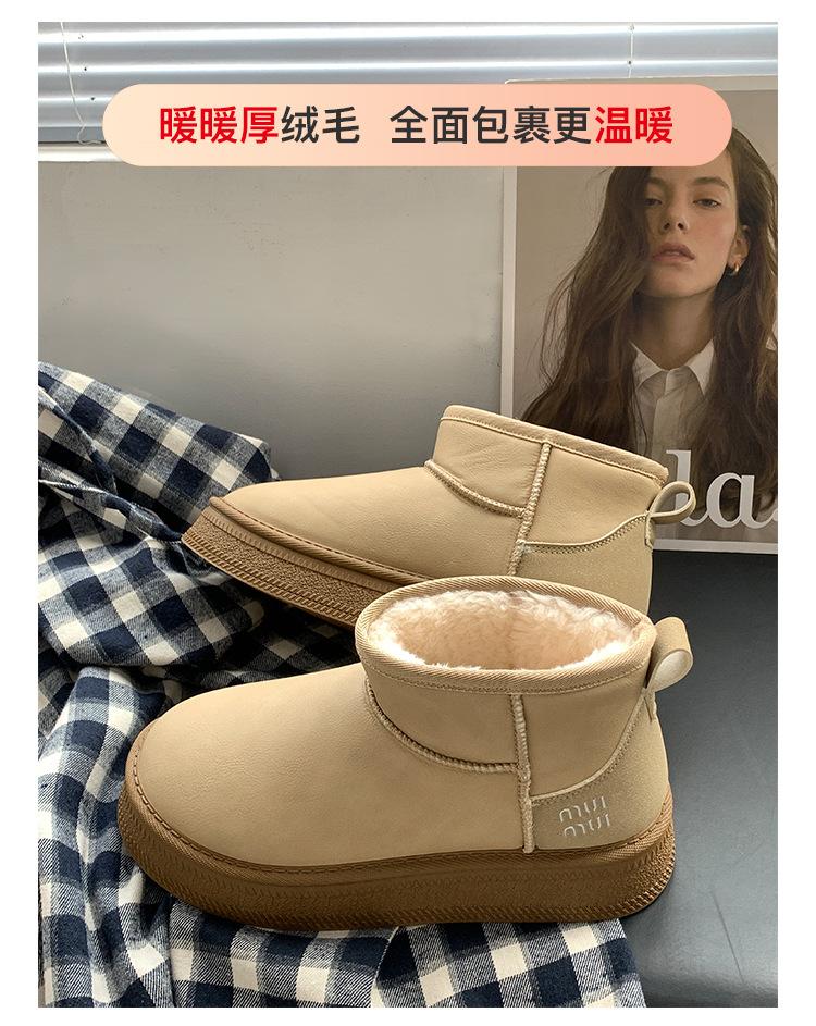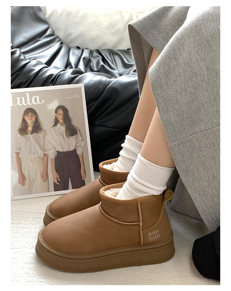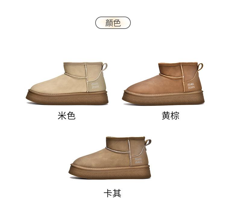 Nuevo Artículo de Venta Caliente Invierno 2024 Nueva Llegada Forrado de Vellón Combinación con Todo Fondo Grueso Bota de Nieve de Caña Corta Botas de Algodón para Mujer MIS-3414