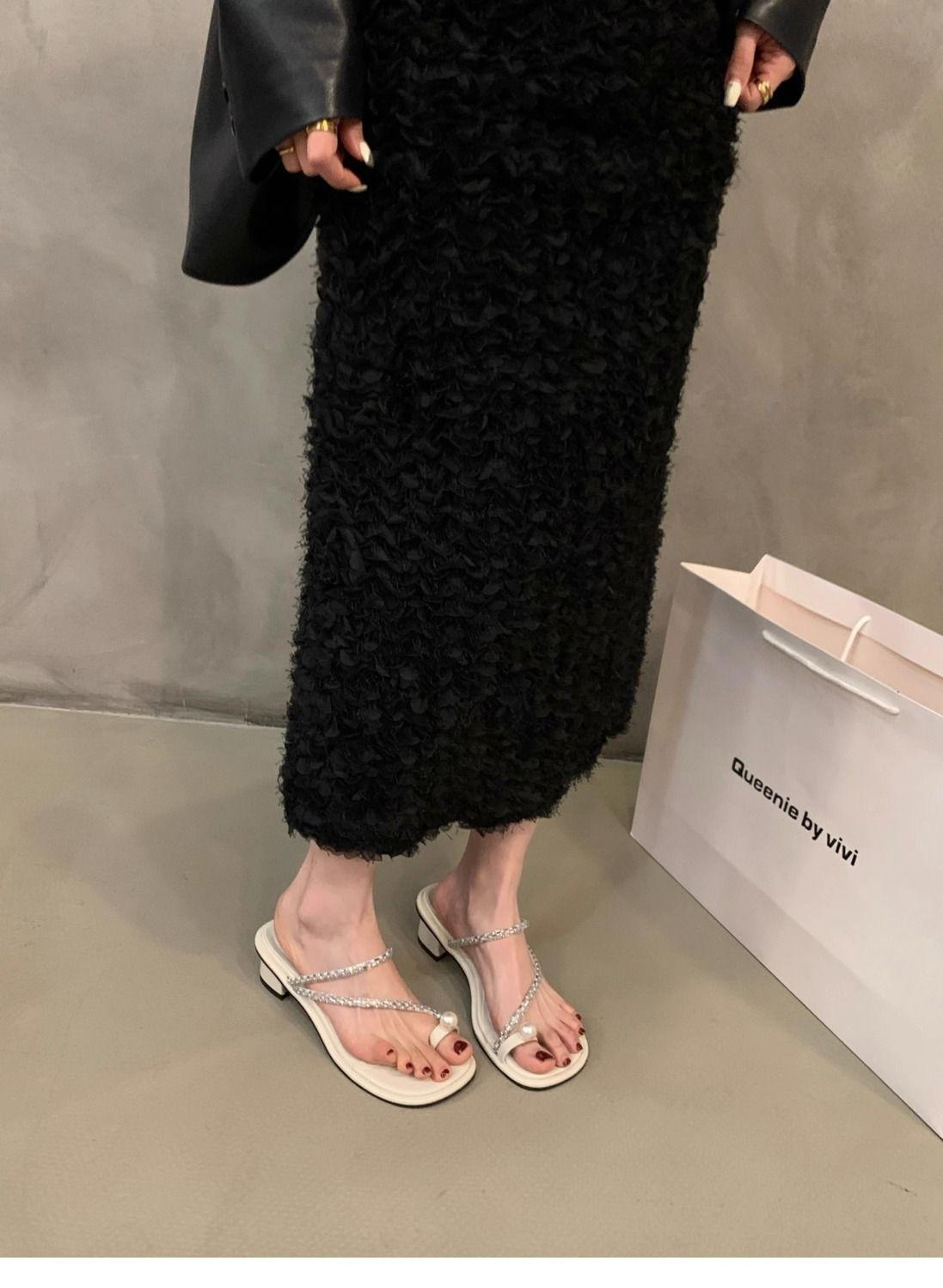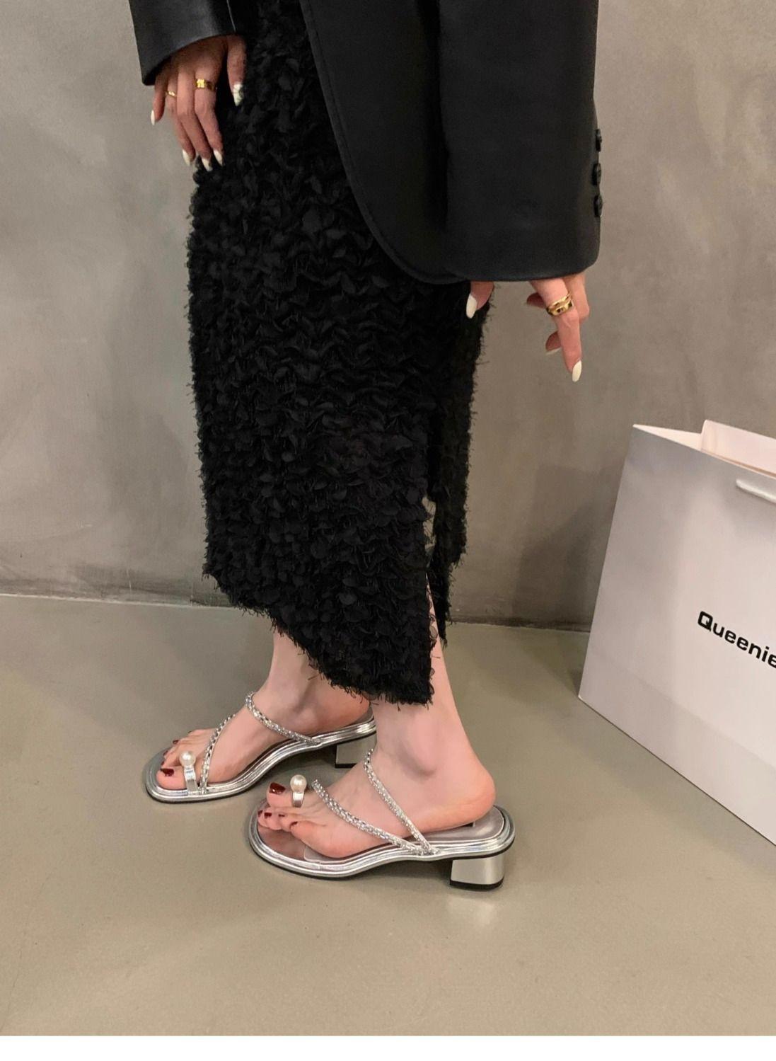 Chanclas para Mujer para Usar Afuera Verano 2025 Nuevo Estilo Estilo Socialité Estilo Hada con Faldas Sandalias de Tira Moda Casual