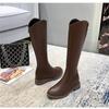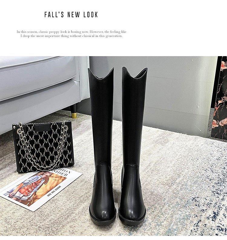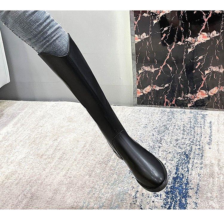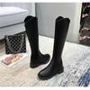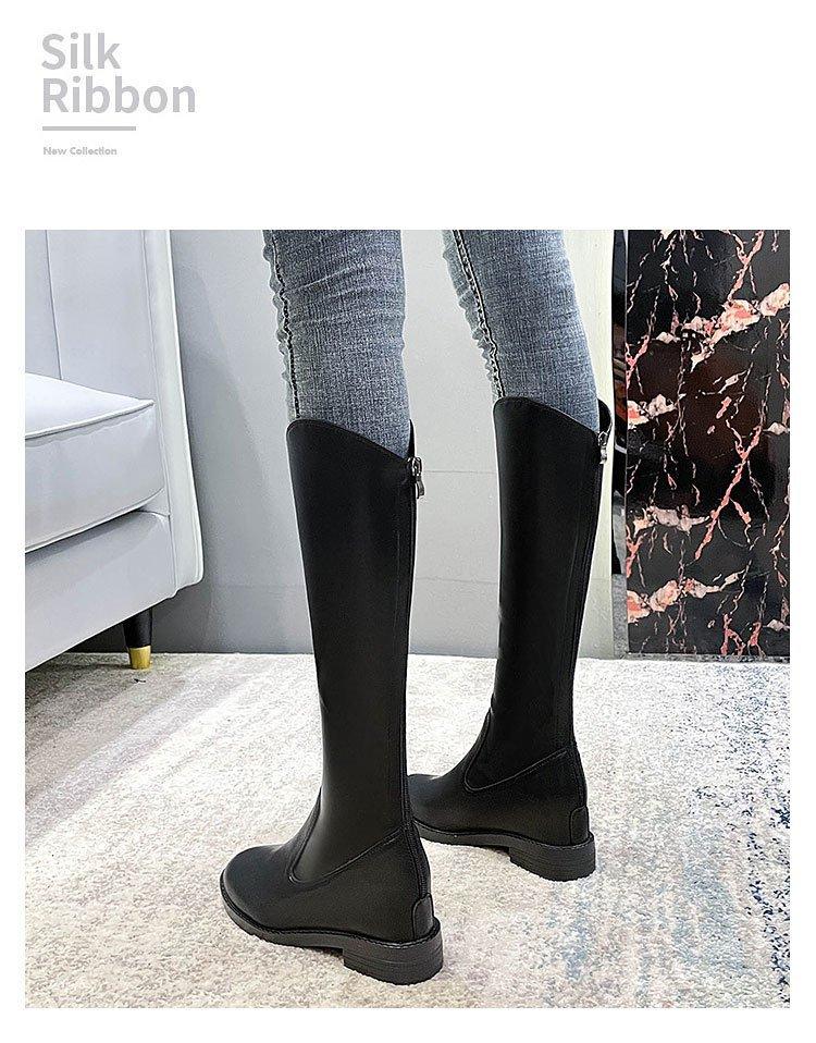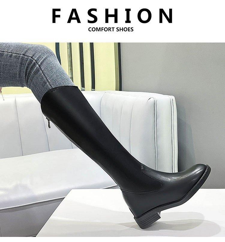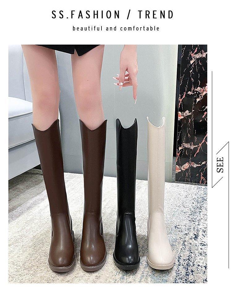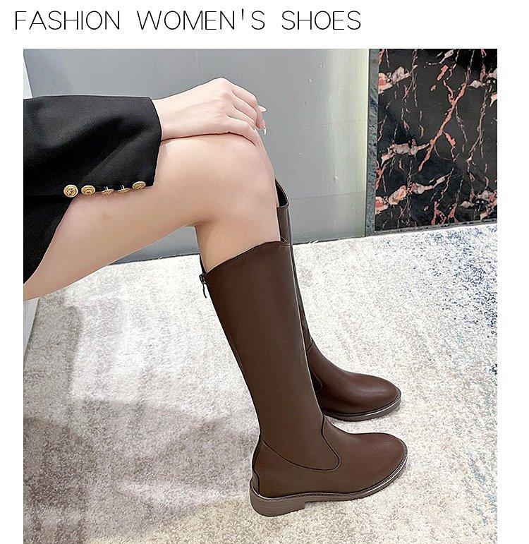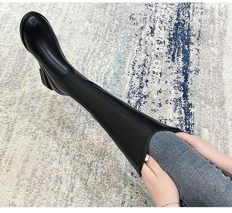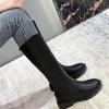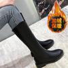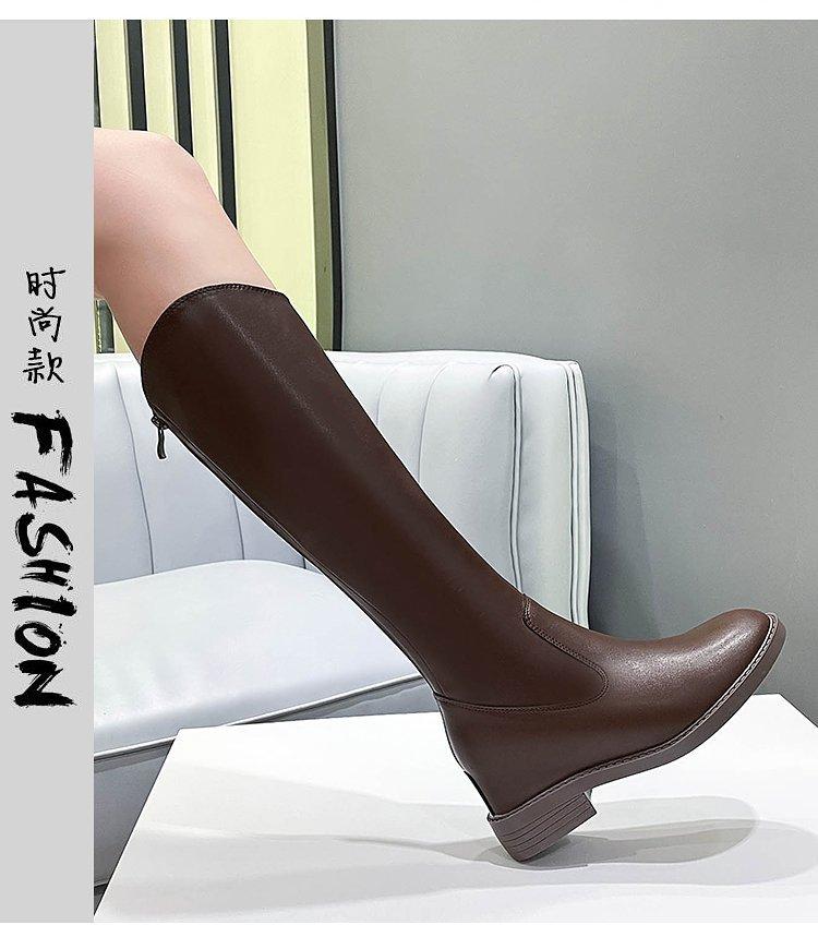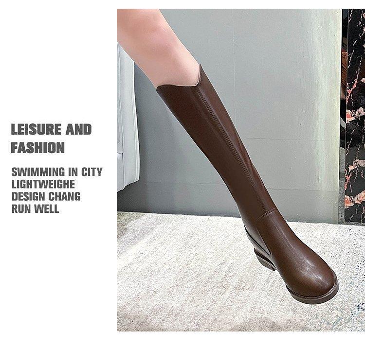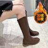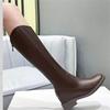 Botas largas pequeñas de piel suave para mujer, nuevas botas de otoño de una sola bota, botas altas de punta redonda, tacón cuadrado, suela suave, caballero, 2024