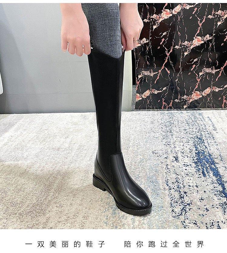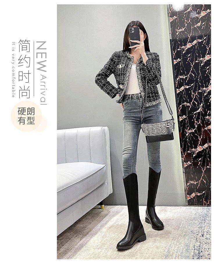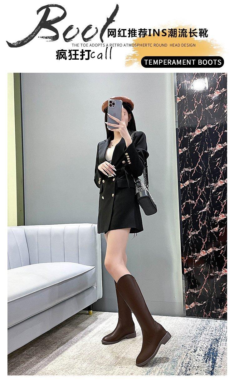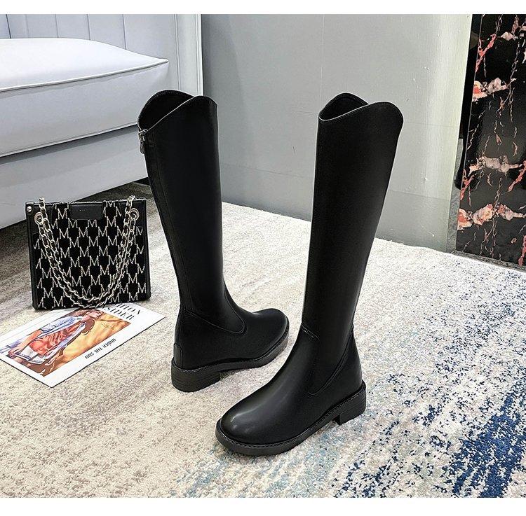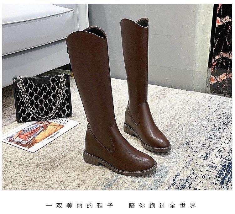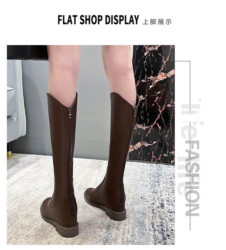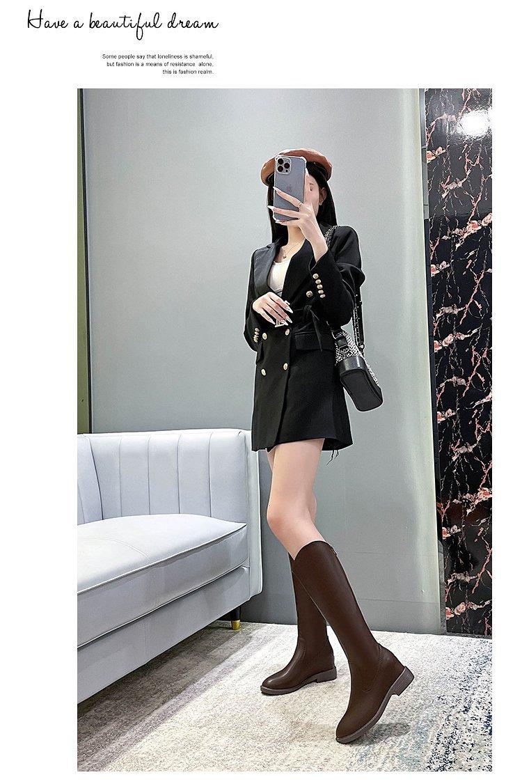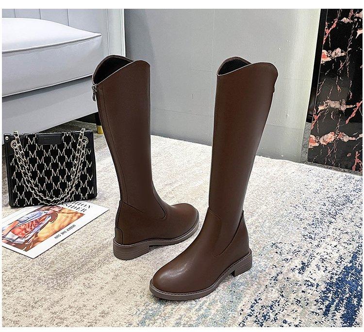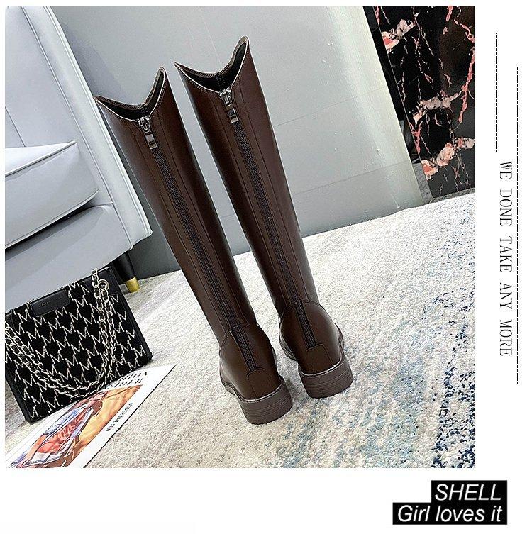 Botas largas pequeñas de piel suave para mujer, nuevas botas de otoño de una sola bota, botas altas de punta redonda, tacón cuadrado, suela suave, caballero, 2024