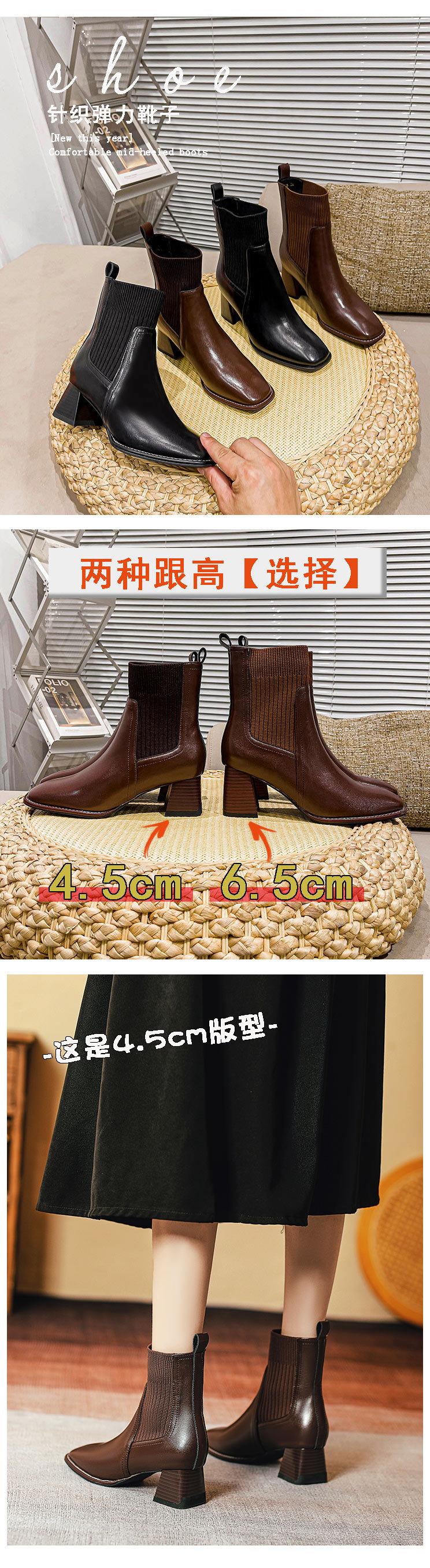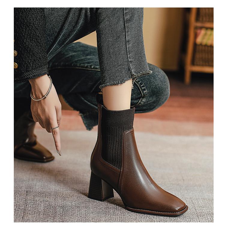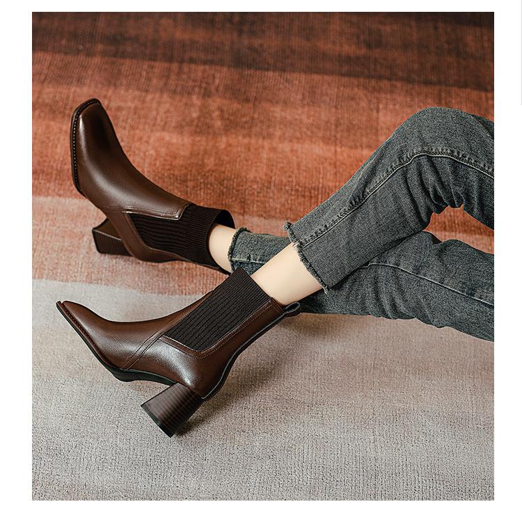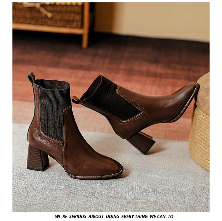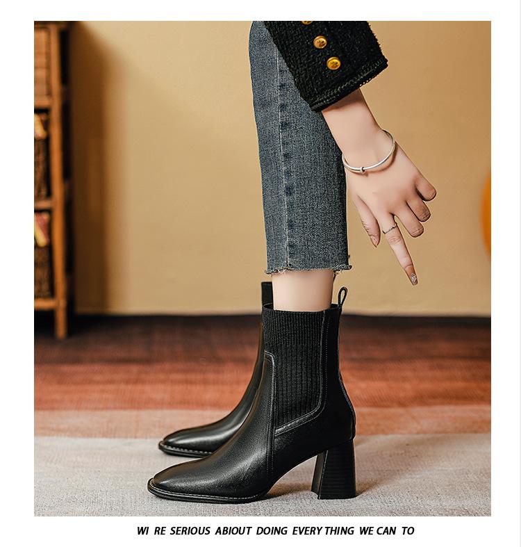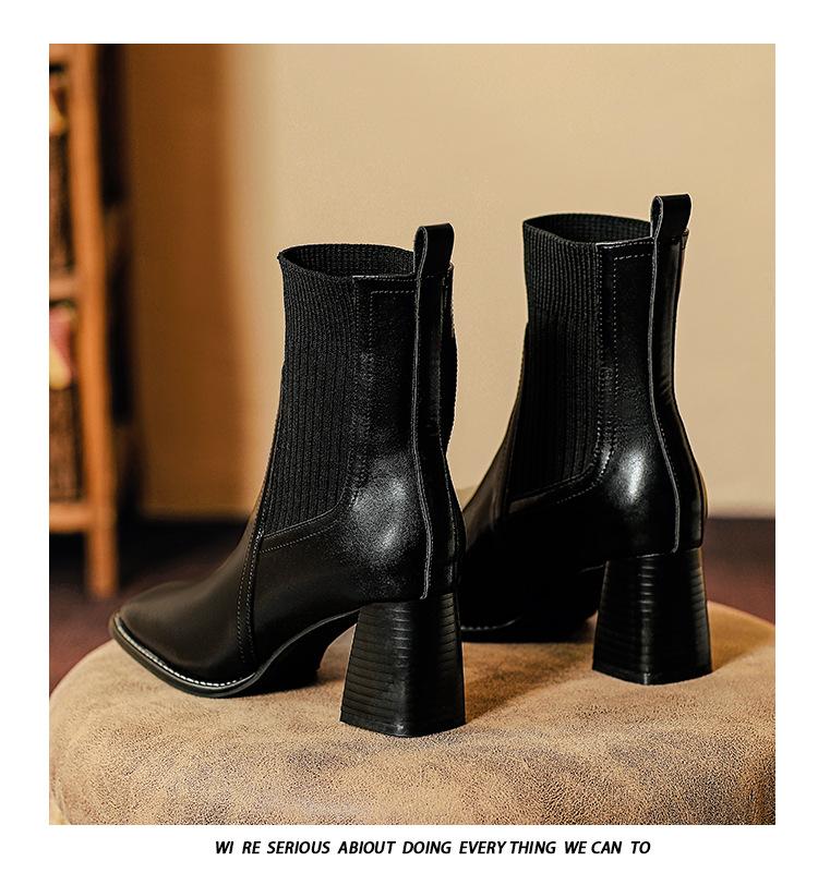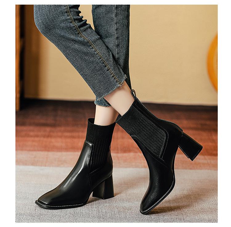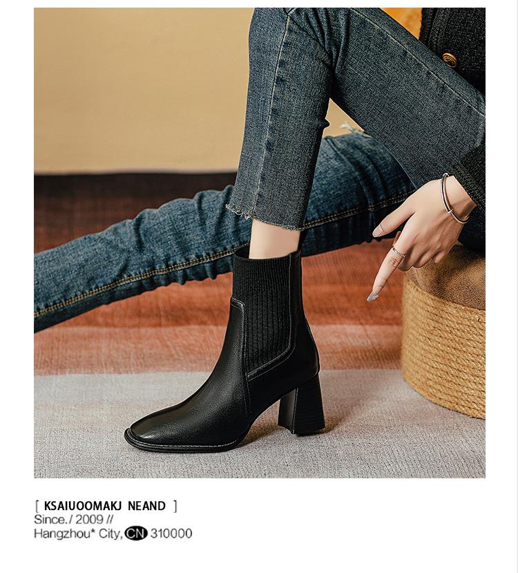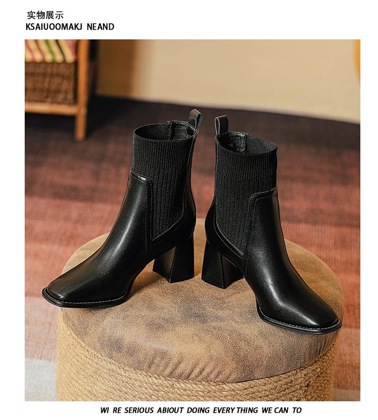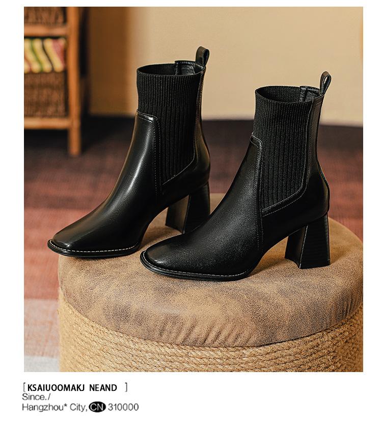 Botas Elásticas de Punto Botines de Tacón Alto Botines de Mujer Primavera y Otoño Botas Individuales 2025 Nuevas Botas Slim Tacón Grueso Media Caña Botas de Moda