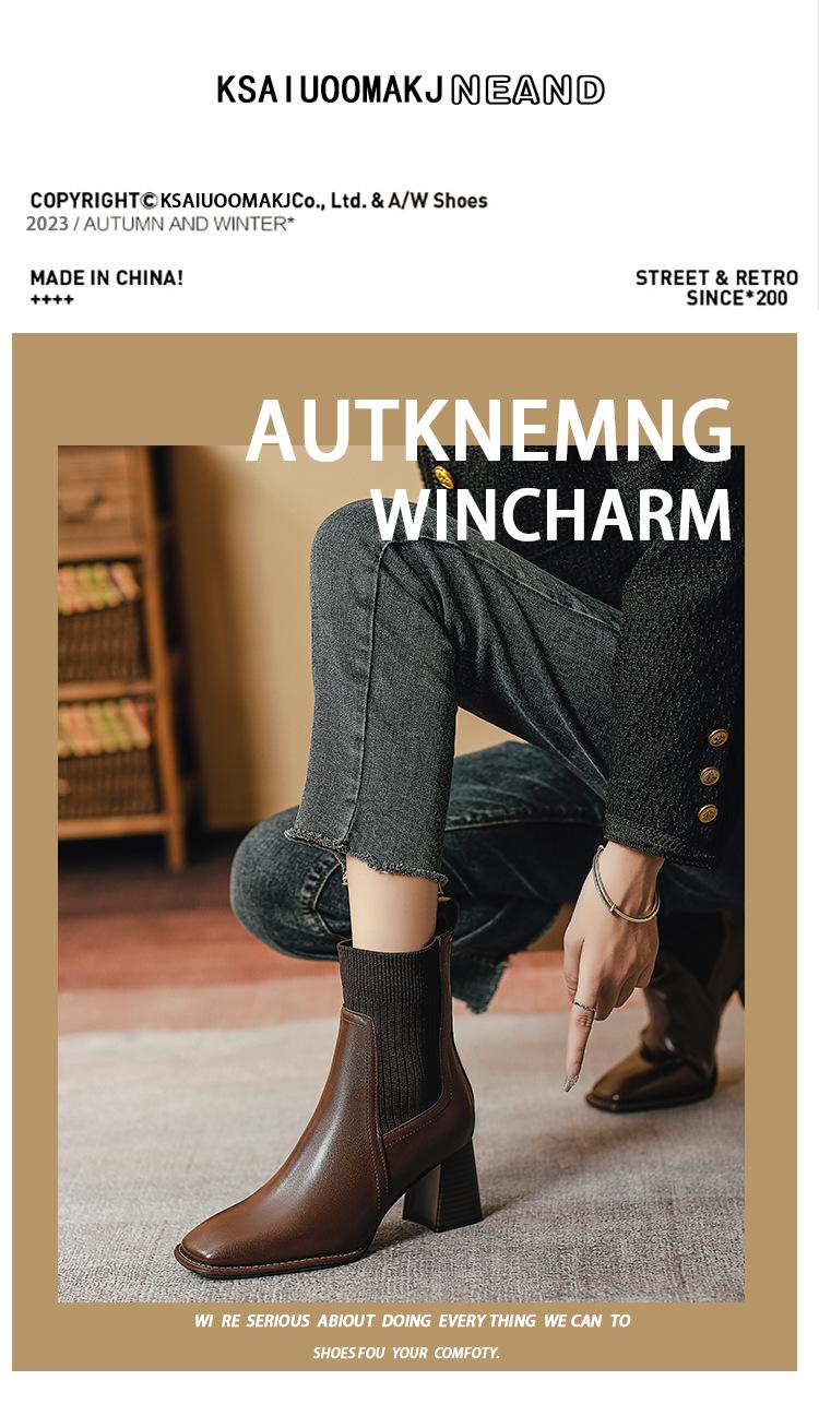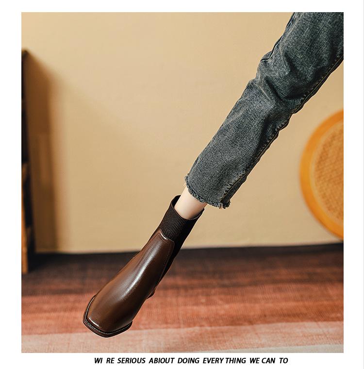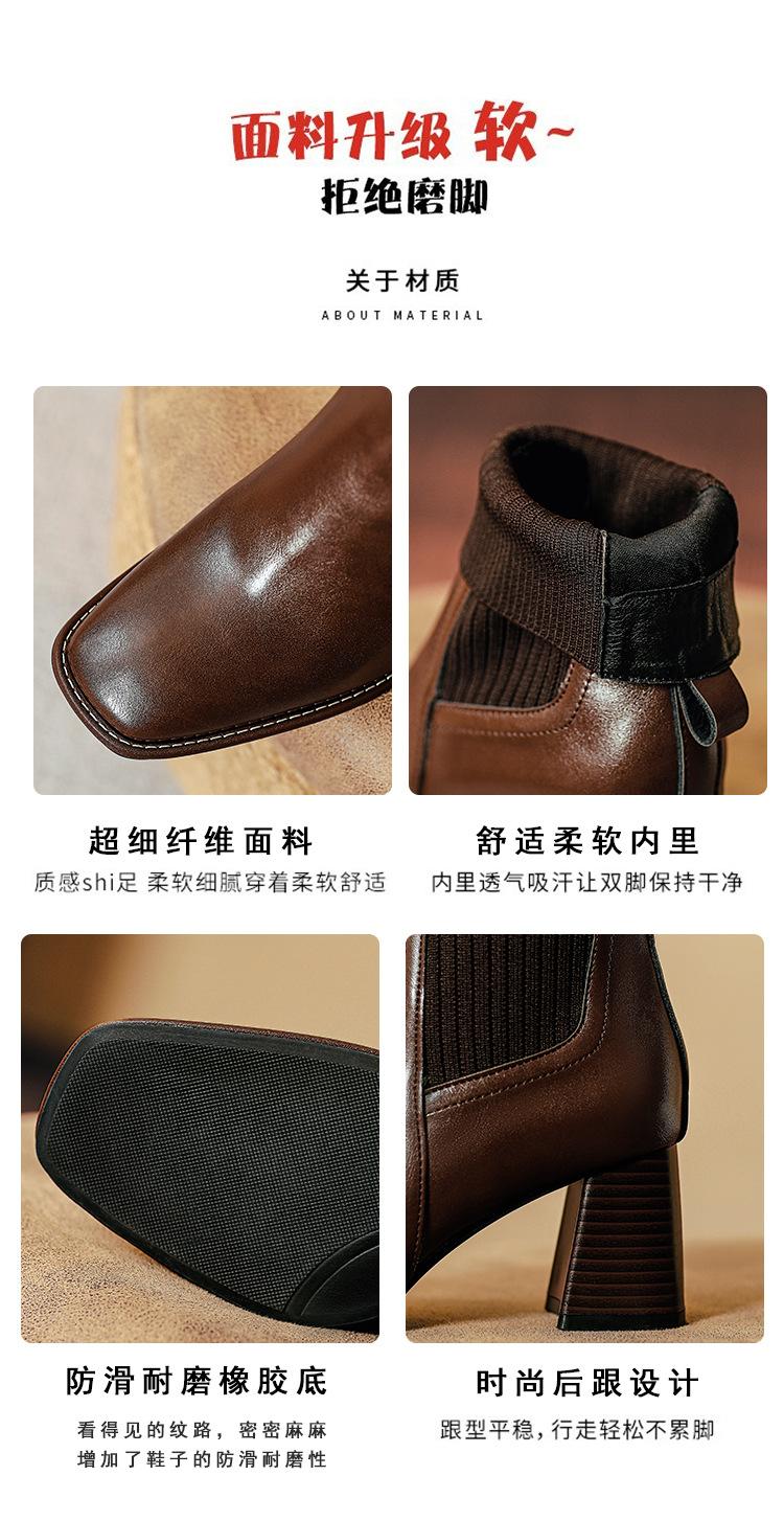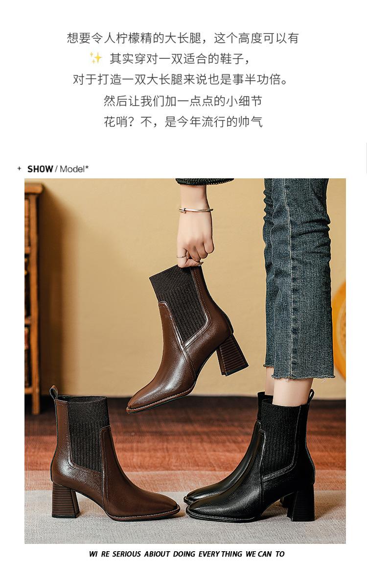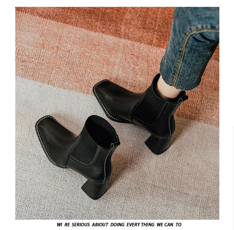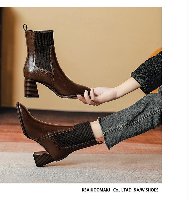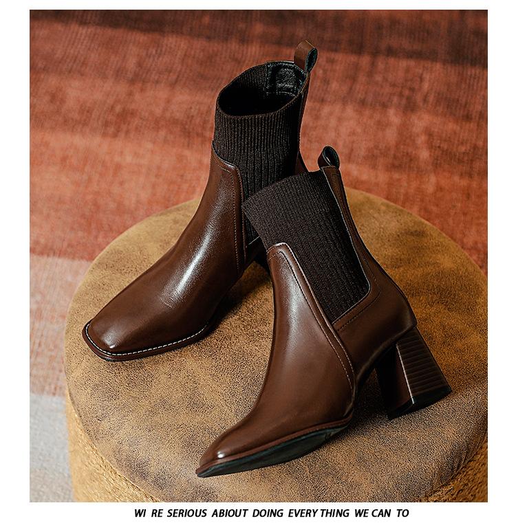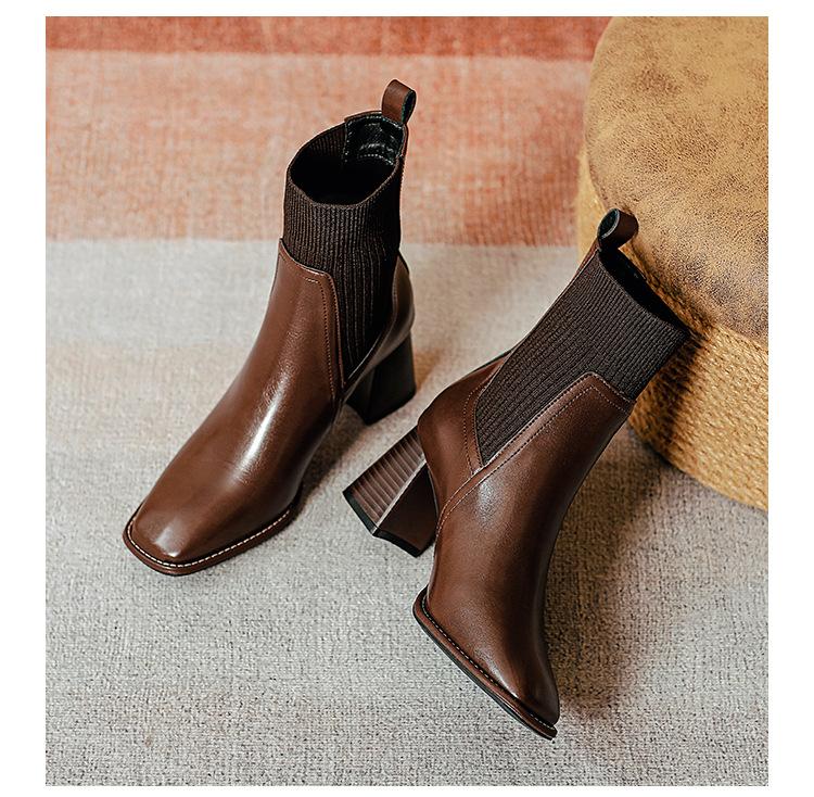Botas Elásticas de Punto Botines de Tacón Alto Botines de Mujer Primavera y Otoño Botas Individuales 2025 Nuevas Botas Slim Tacón Grueso Media Caña Botas de Moda