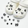 Zapatos con agujeros transfronterizos, flores, decoración DIY distintiva, dibujos animados, lindo lazo negro de titanio, accesorios, hebilla de zapato extraíble
