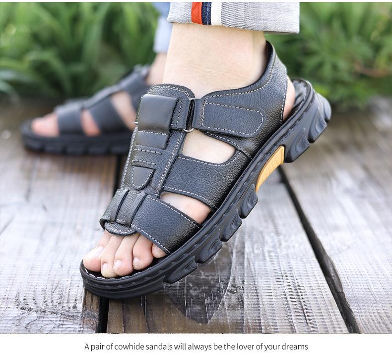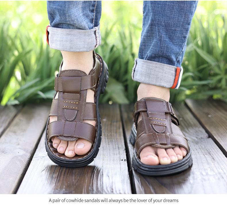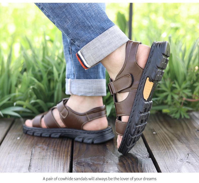 Sandalias para Hombre Nuevas Zapatos de Playa para Hombre Sandalias de Piel de Vaca Zapatos para Exterior Antideslizantes de Suela Gruesa Sandalias Romanas de Cuero para Hombre