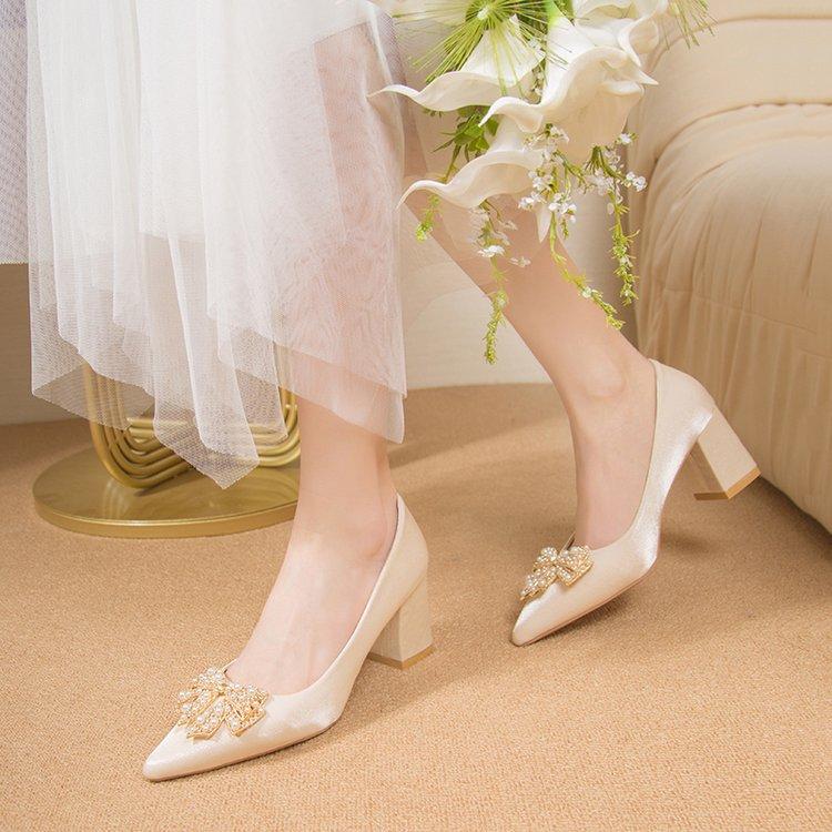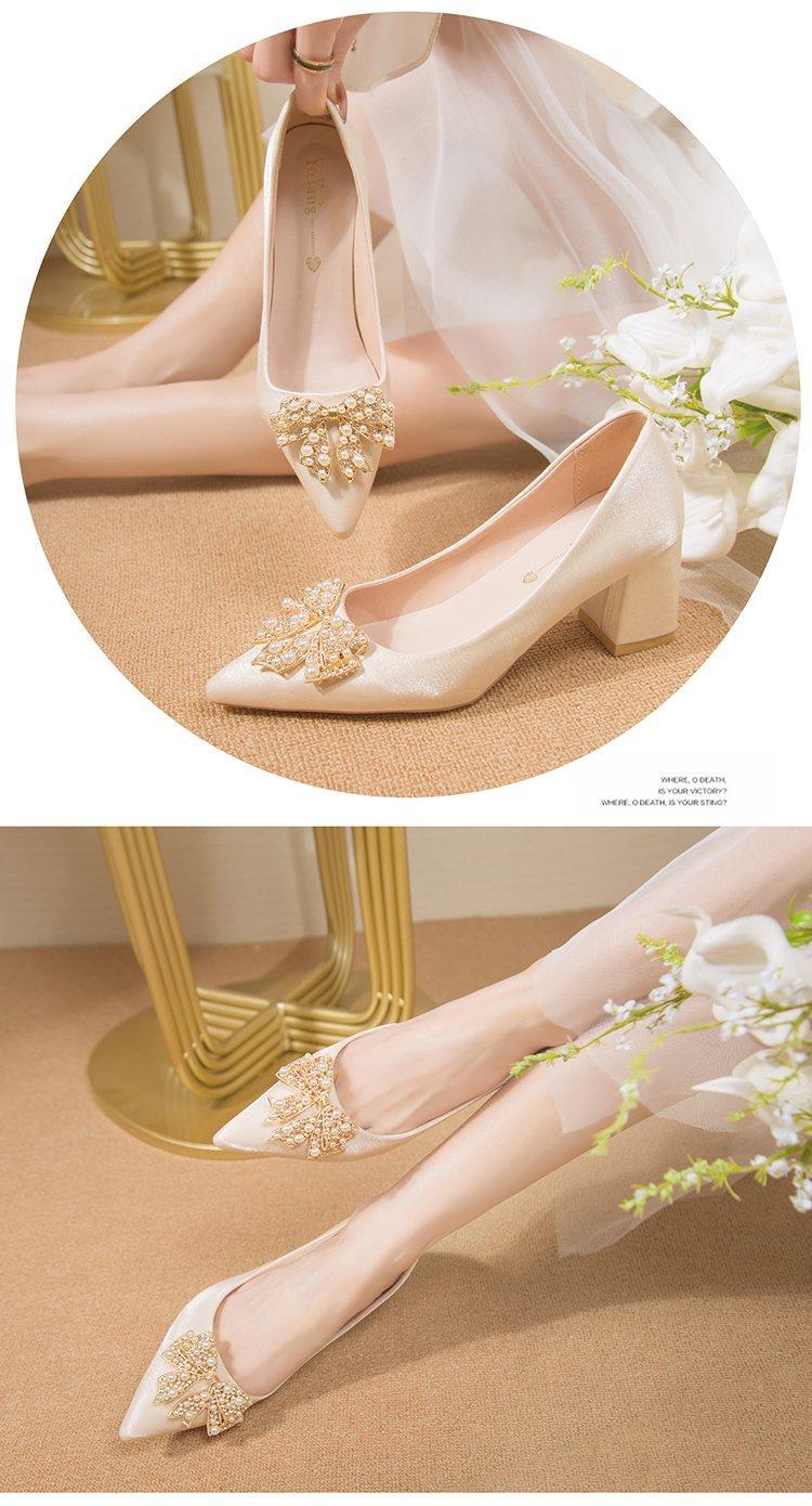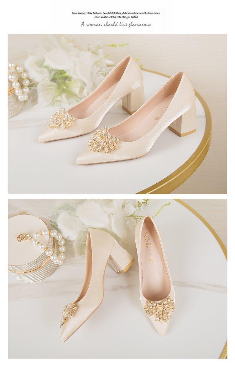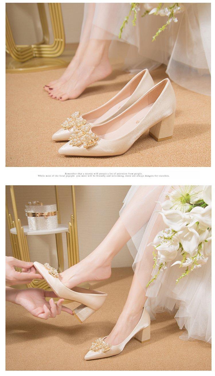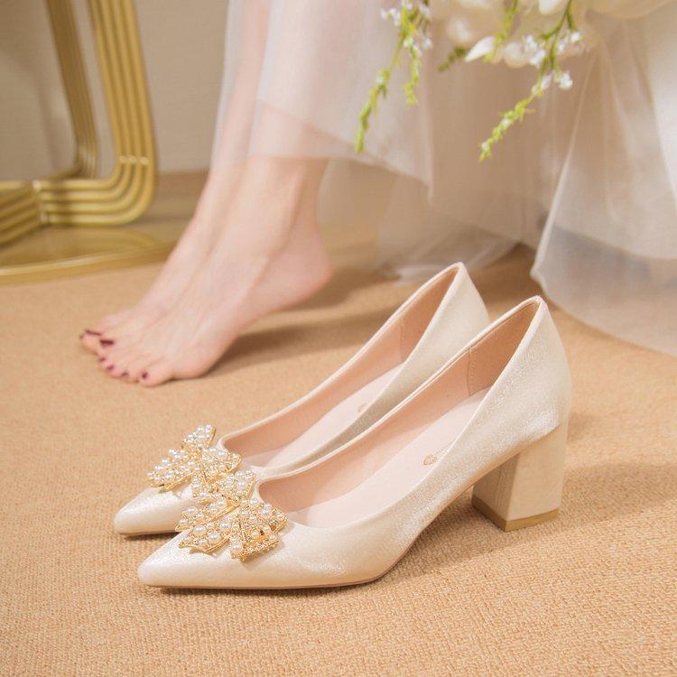 Zapatos de Boda de Punta para Mujer 2025 Nuevos Vestido de Boda Principal Tacones Altos Zapatos de Novia Zapatos de Dama de Honor Tacón Grueso Francés Zapatos de Compromiso
