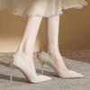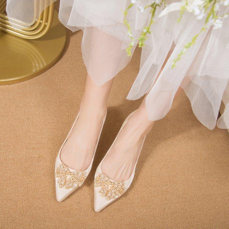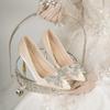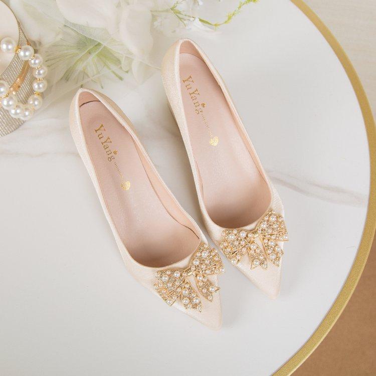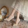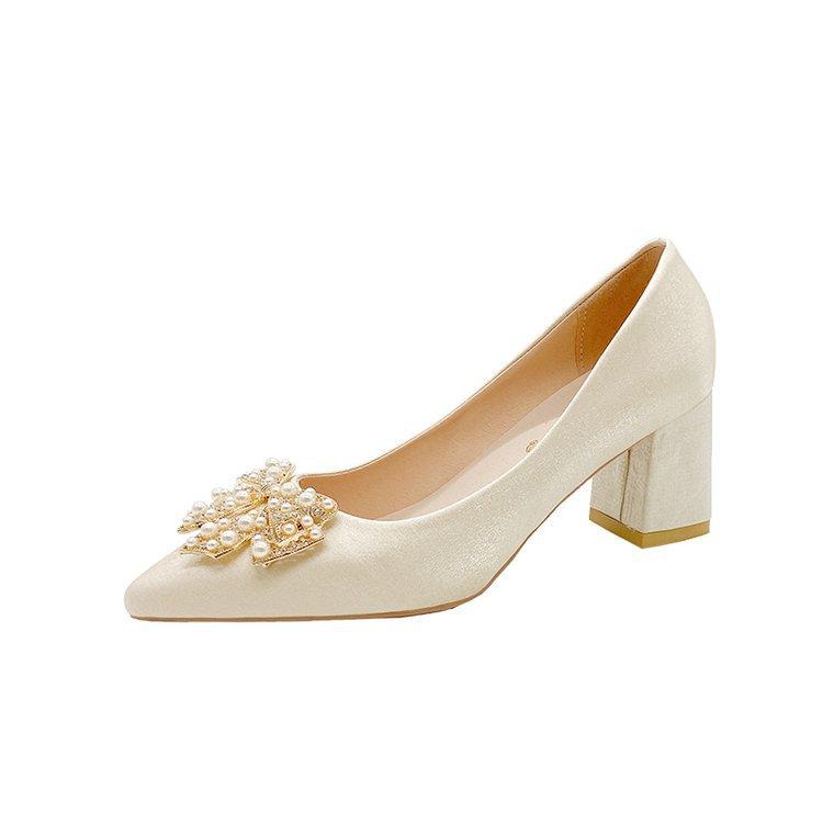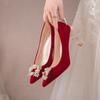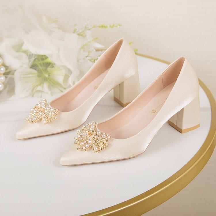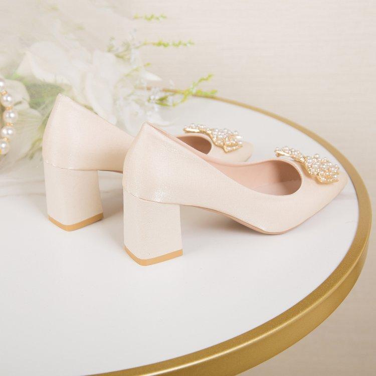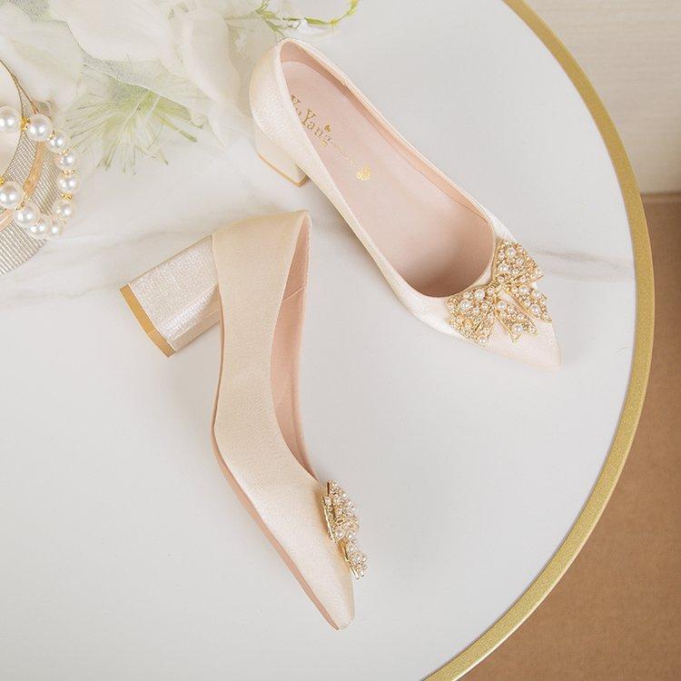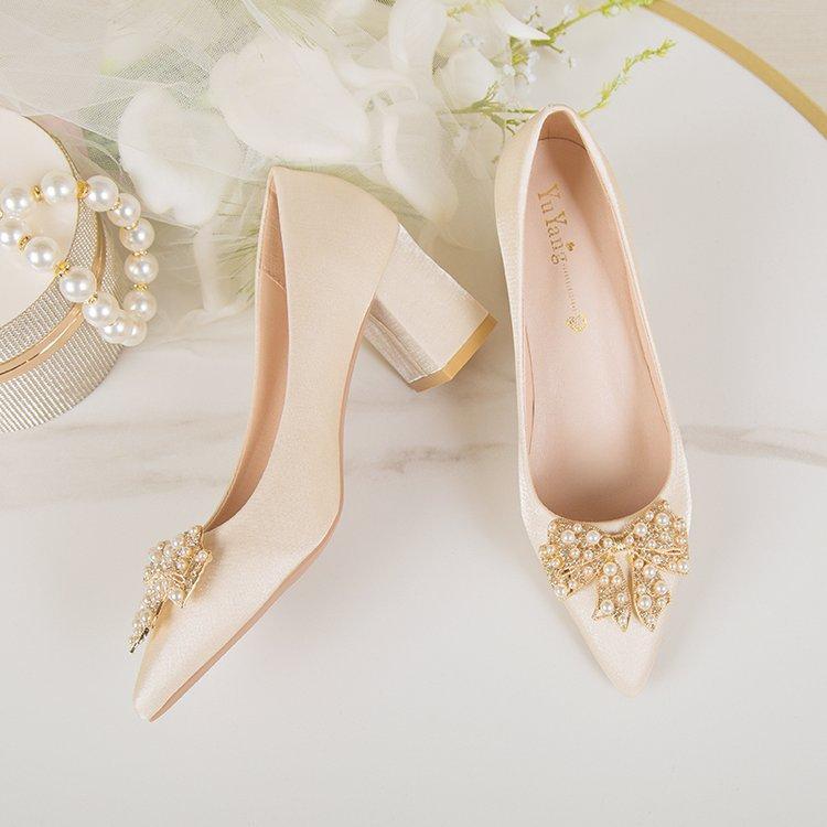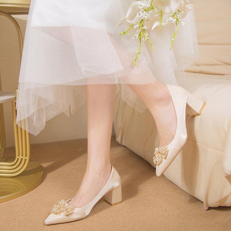 Zapatos de Boda de Punta para Mujer 2025 Nuevos Vestido de Boda Principal Tacones Altos Zapatos de Novia Zapatos de Dama de Honor Tacón Grueso Francés Zapatos de Compromiso