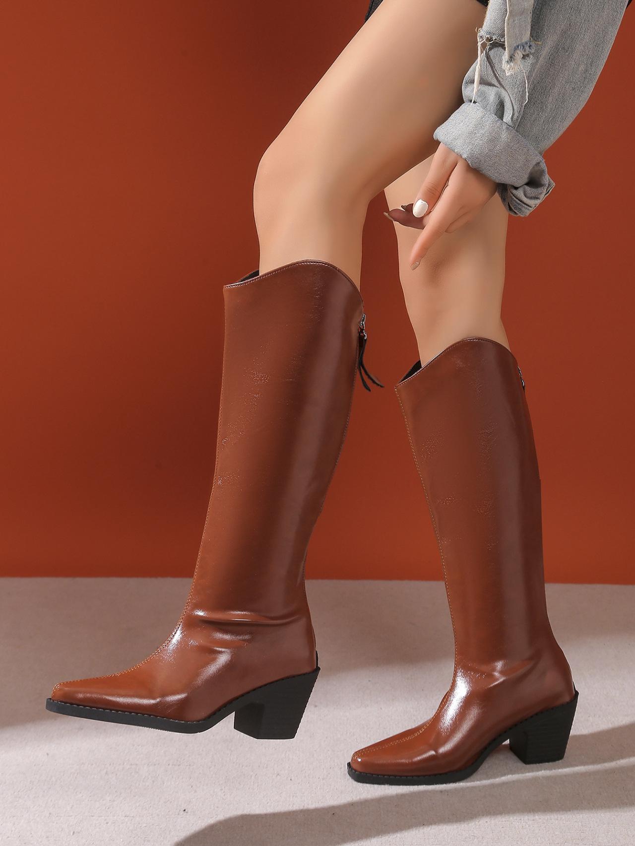 Botas de talla grande botas retro de caballero botas hasta la rodilla para mujer otoño e invierno 2024 botas vaqueras occidentales tacón grueso puntiagudo