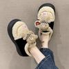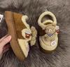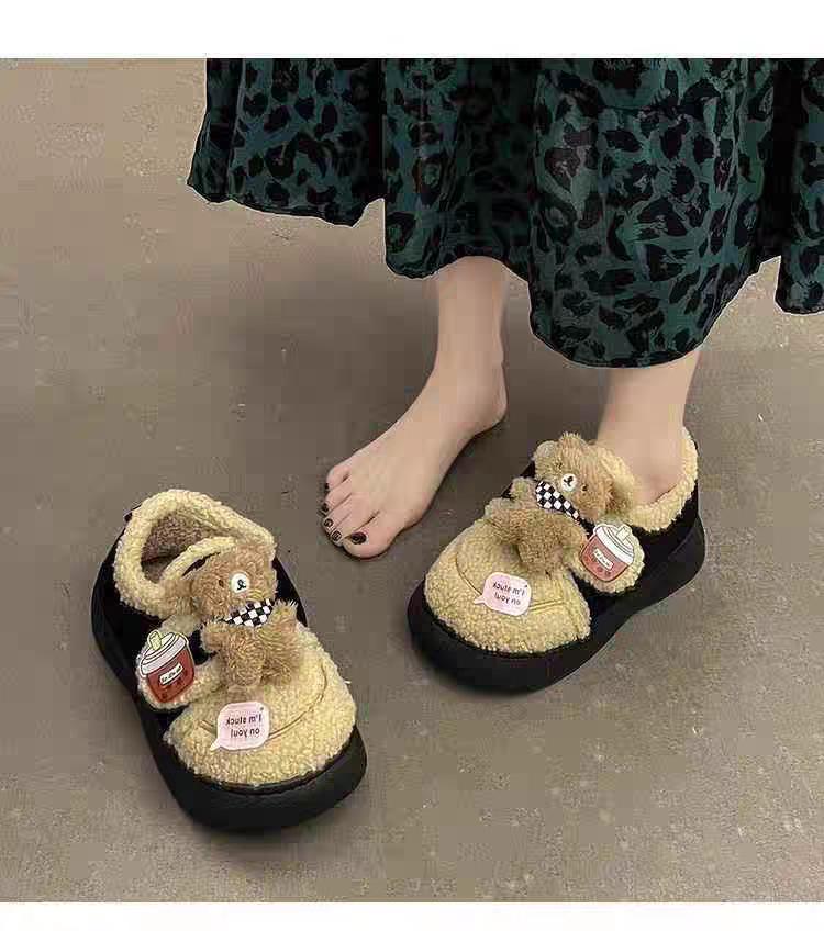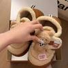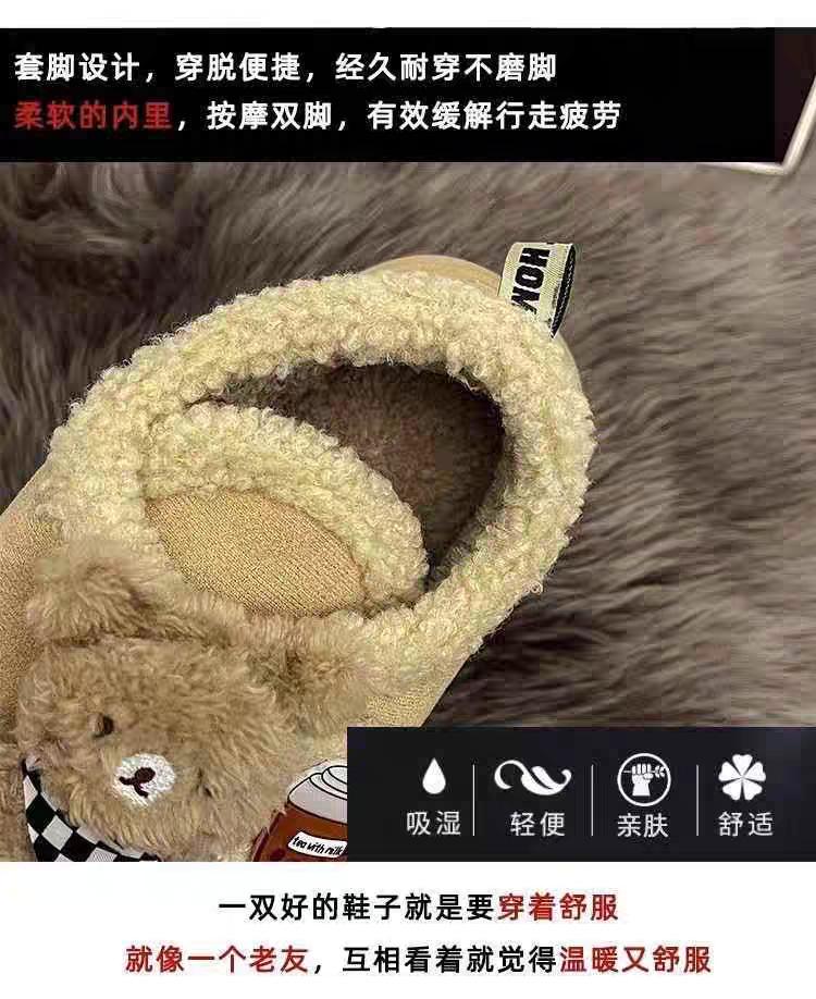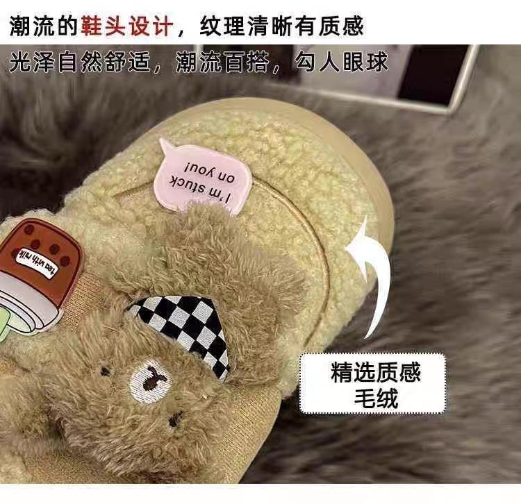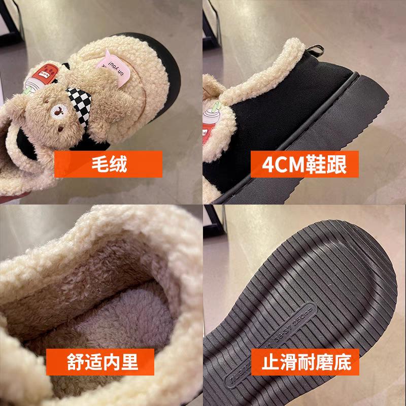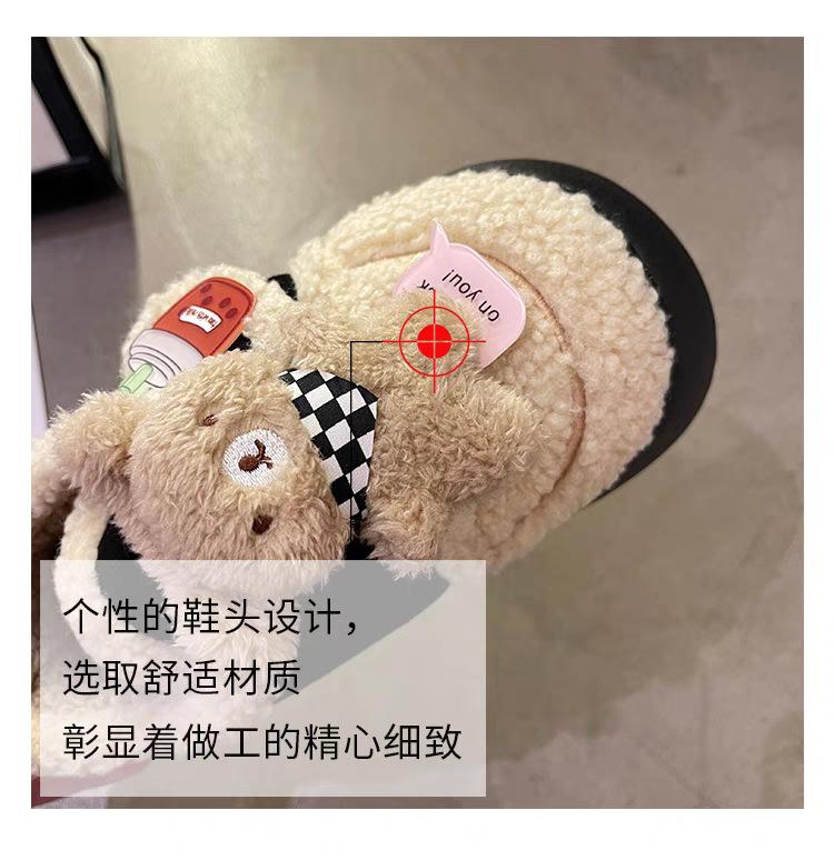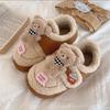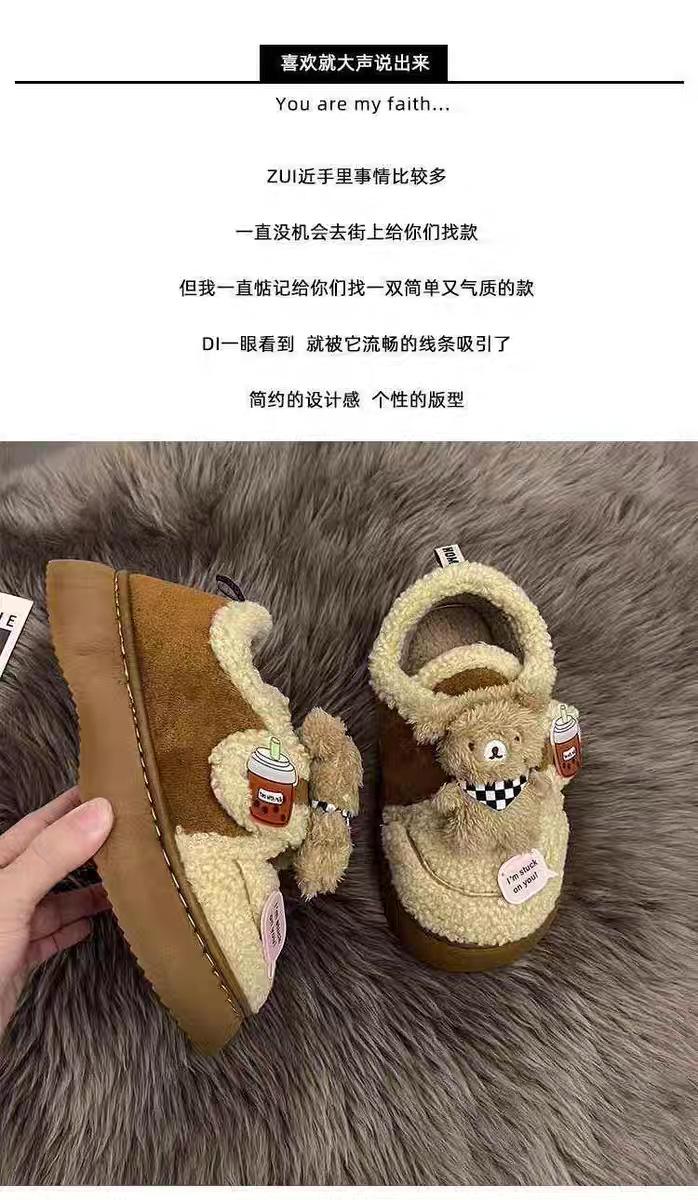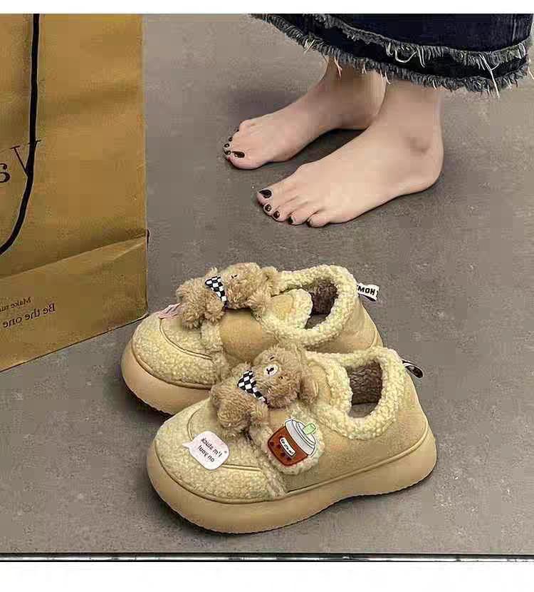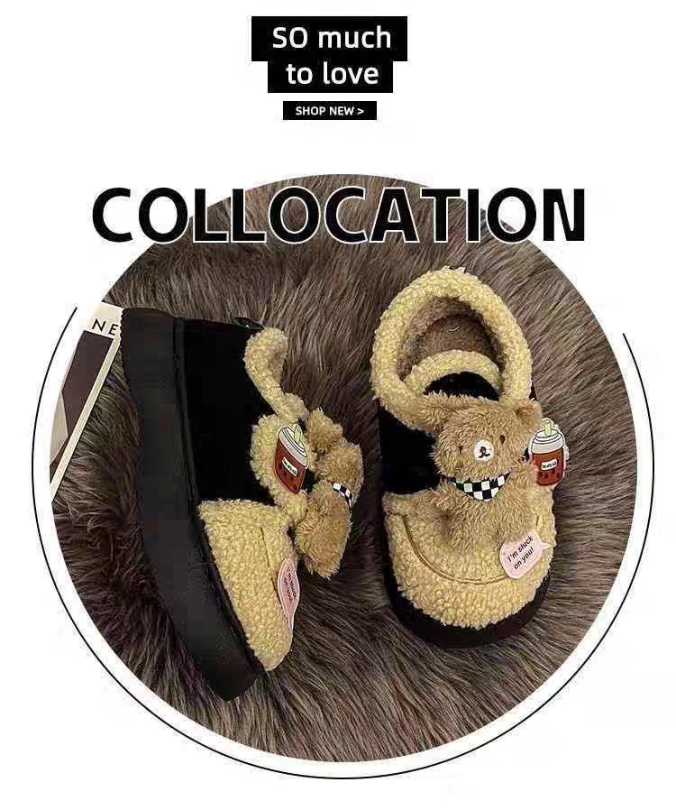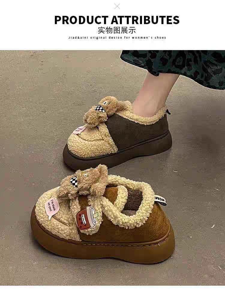 Zapatos Mao Mao con diseño de oso de dibujos animados para mujer, ropa exterior para otoño e invierno de 2024, bonitos zapatos de pan con velcro cálidos y forrados de vellón para estudiantes nuevos.