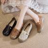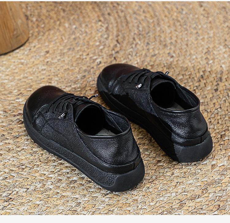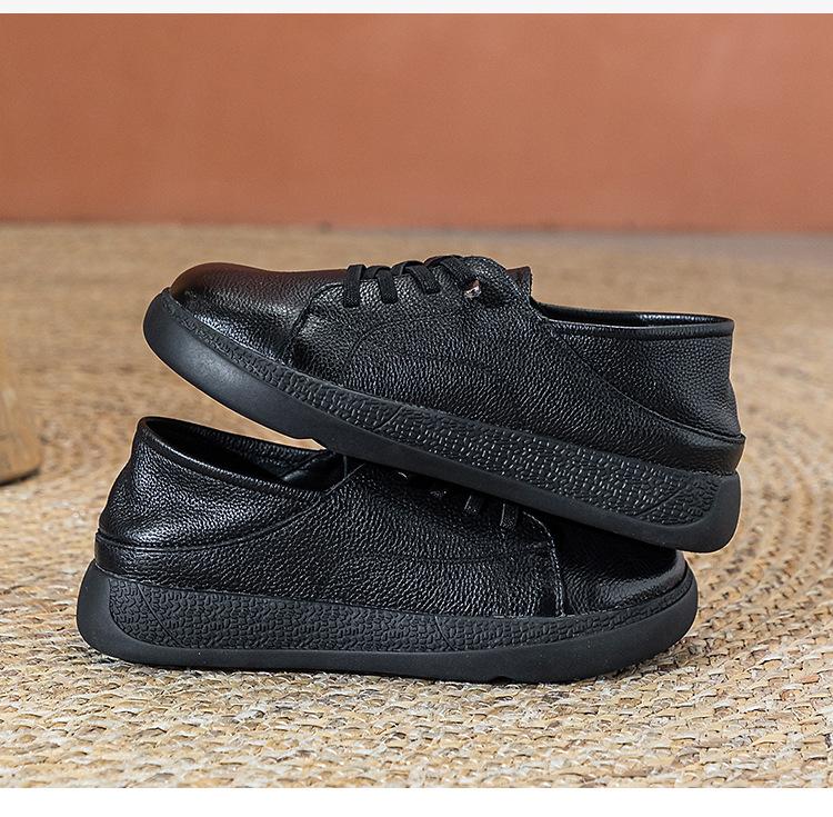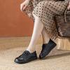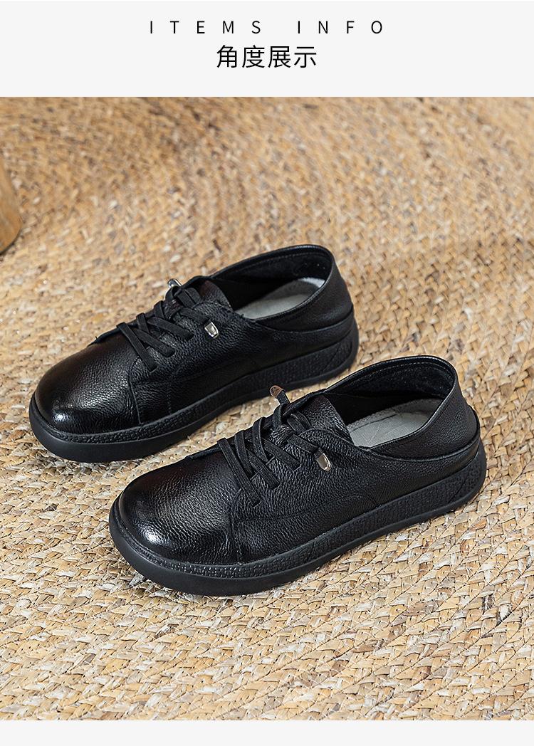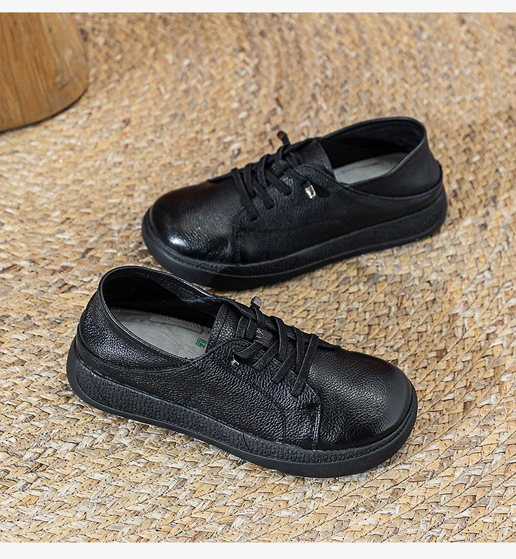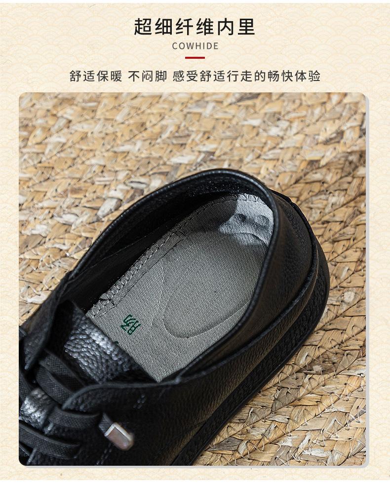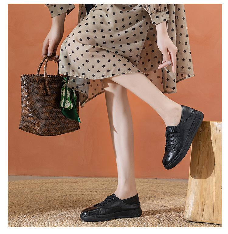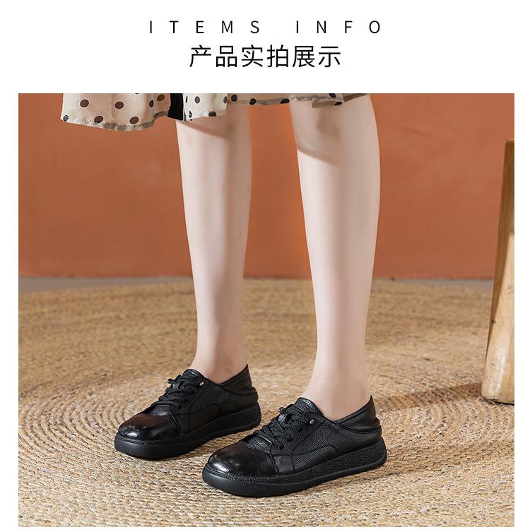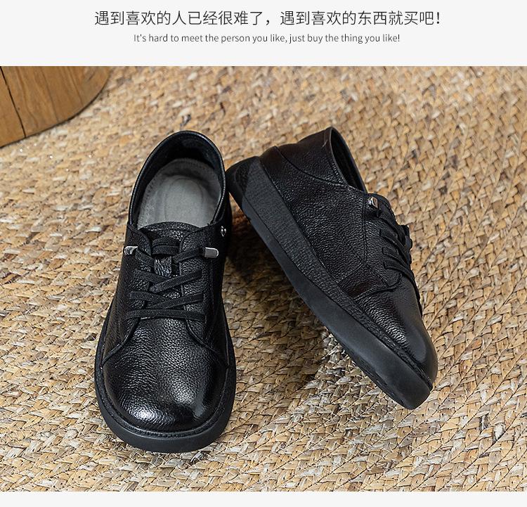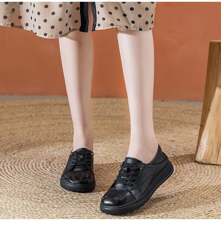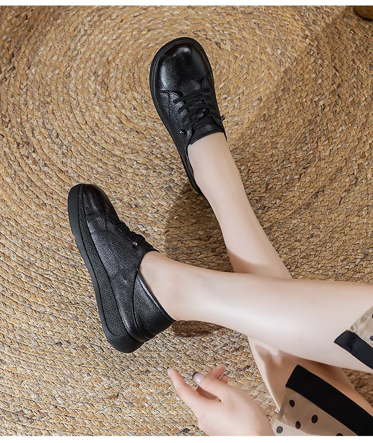 Zapatos de piel de vacuno de primera capa para mujer, nuevos zapatos planos retro de otoño para mujer, zapatos Lefu de estilo británico de dos piezas y sin cordones.