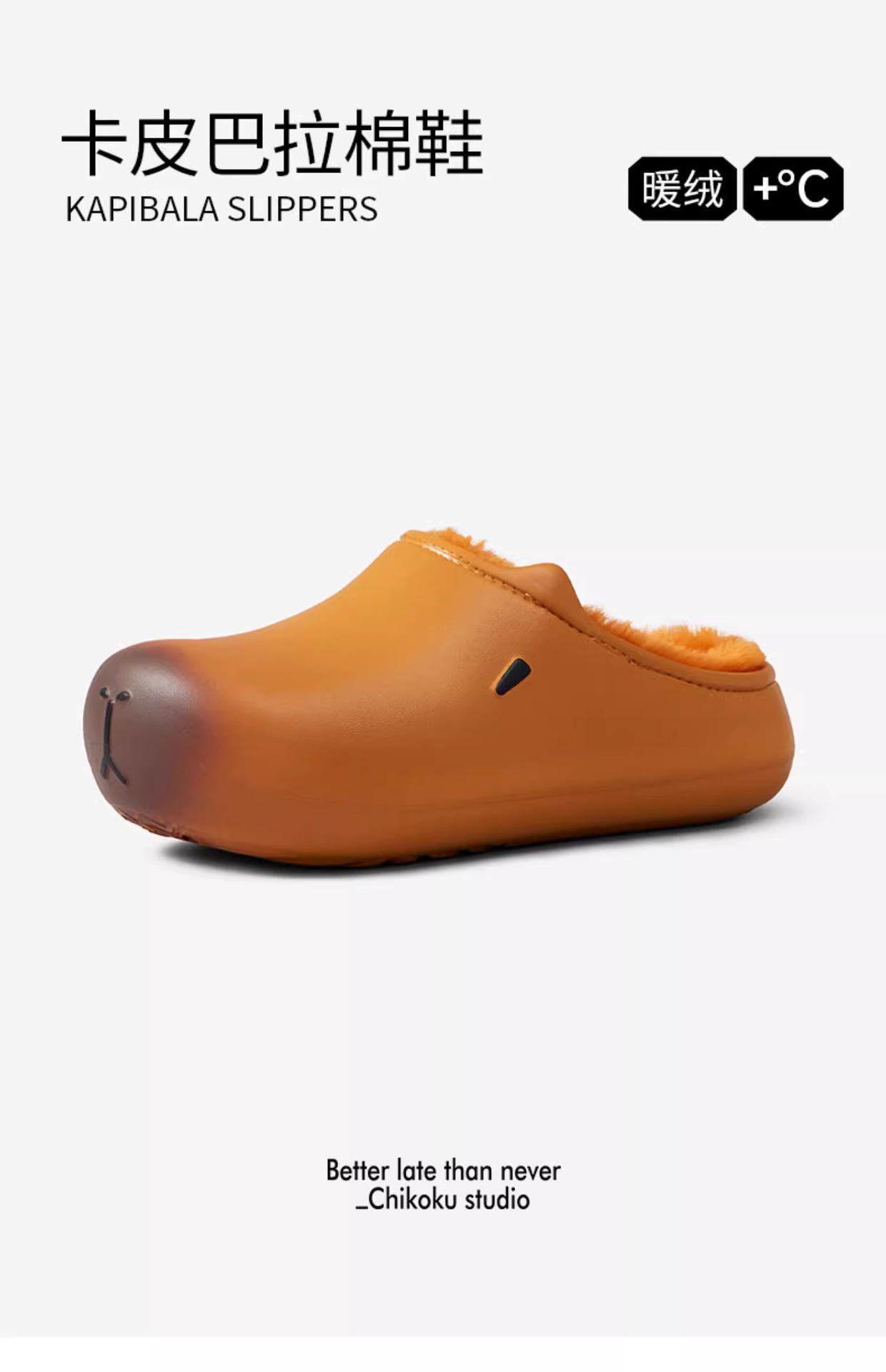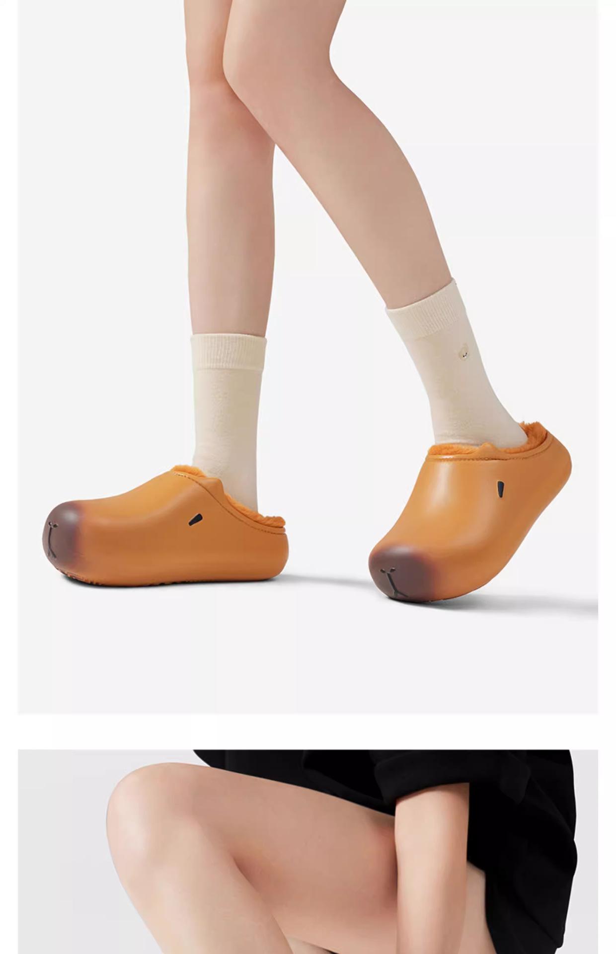 Pantuflas de Algodón Eva de Capibara para Mujer, Pantuflas de Algodón de Invierno para el Hogar de Suela Gruesa, Zapatos de Algodón Impermeables Cálidos de Felpa para Pareja, Estilo Padre-Hijo