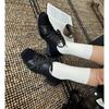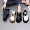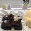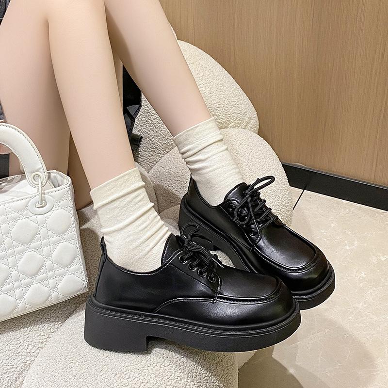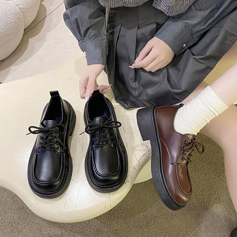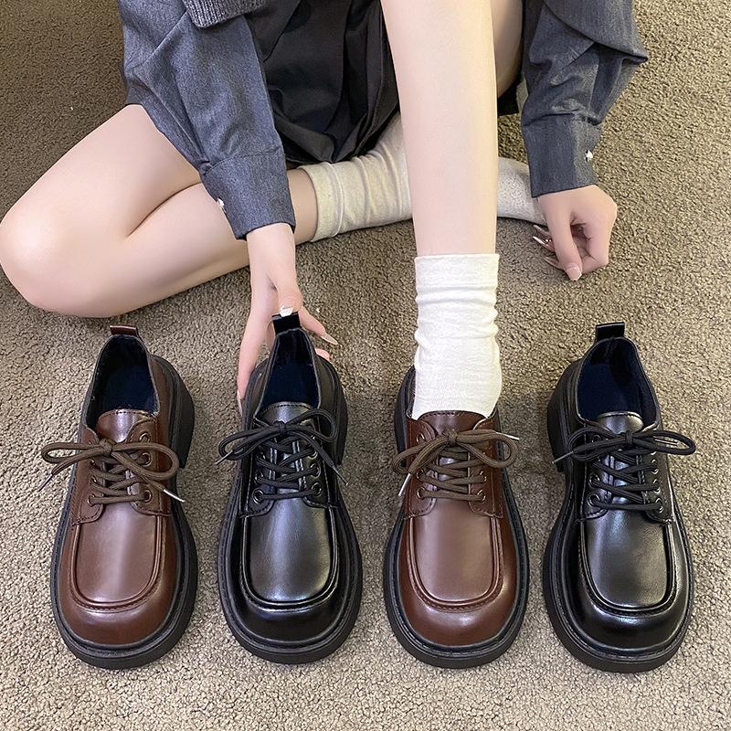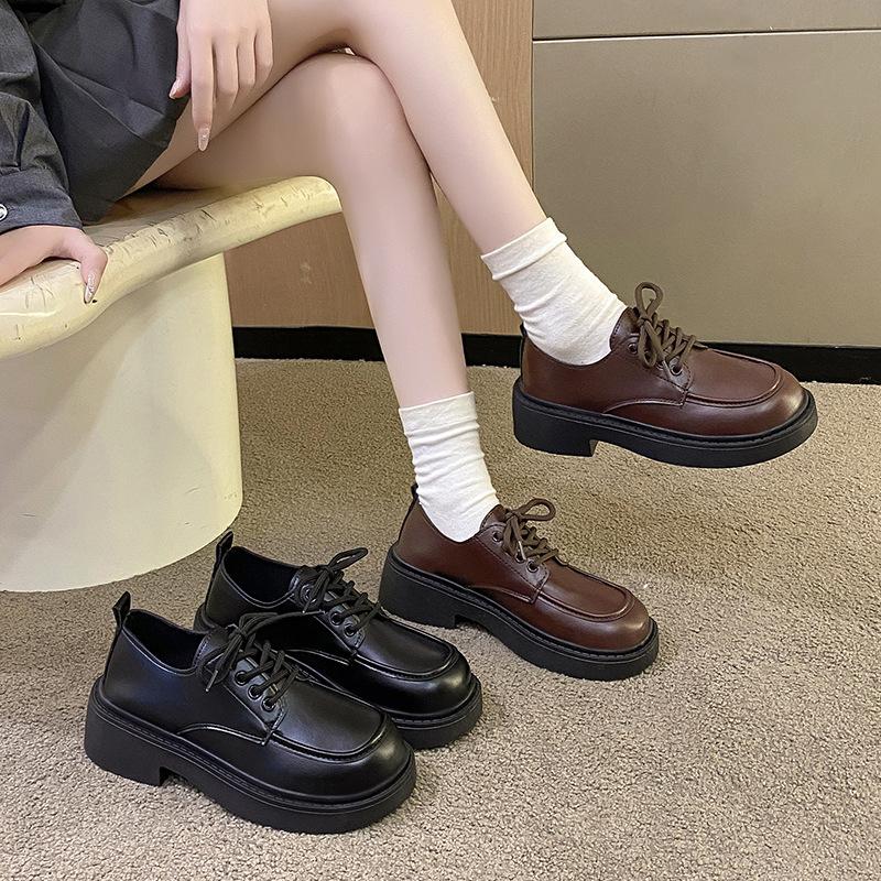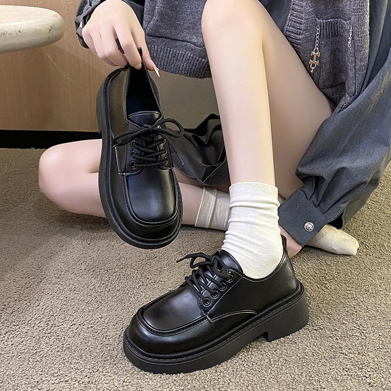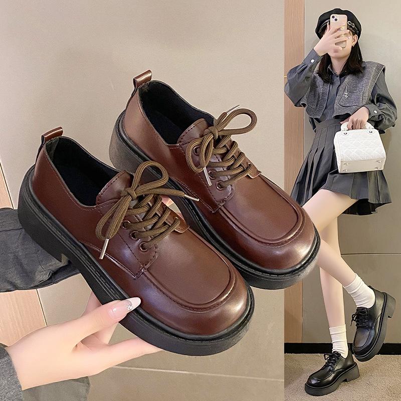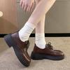 Zapatos de cuero pequeños de estilo británico retro de comercio exterior para mujer, mocasines de tacón grueso con cordones y punta redonda, combinables con todo, para invierno de 2024