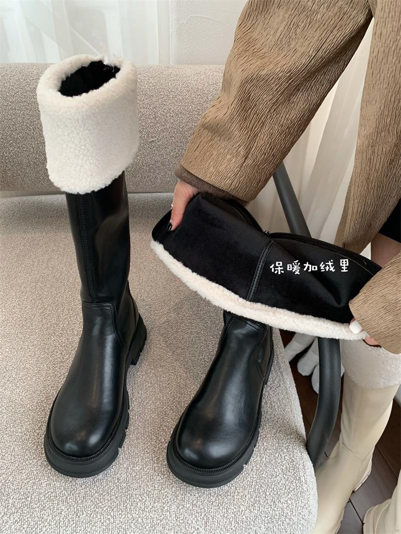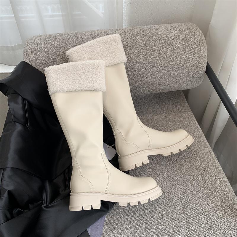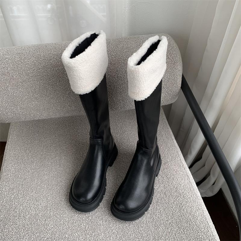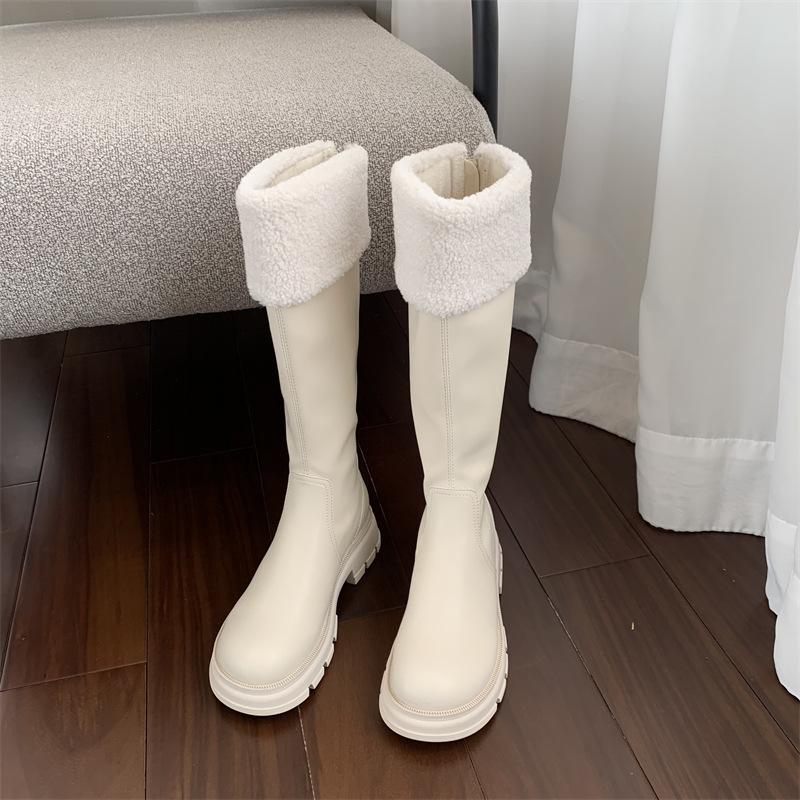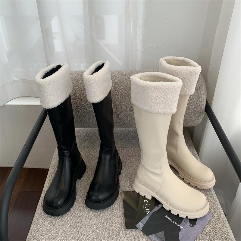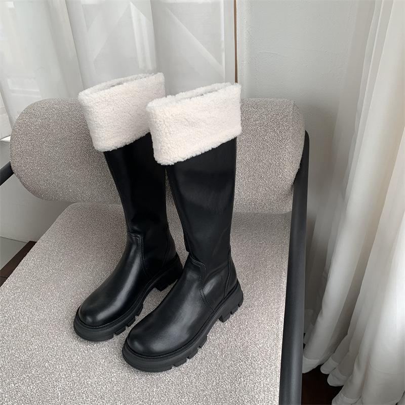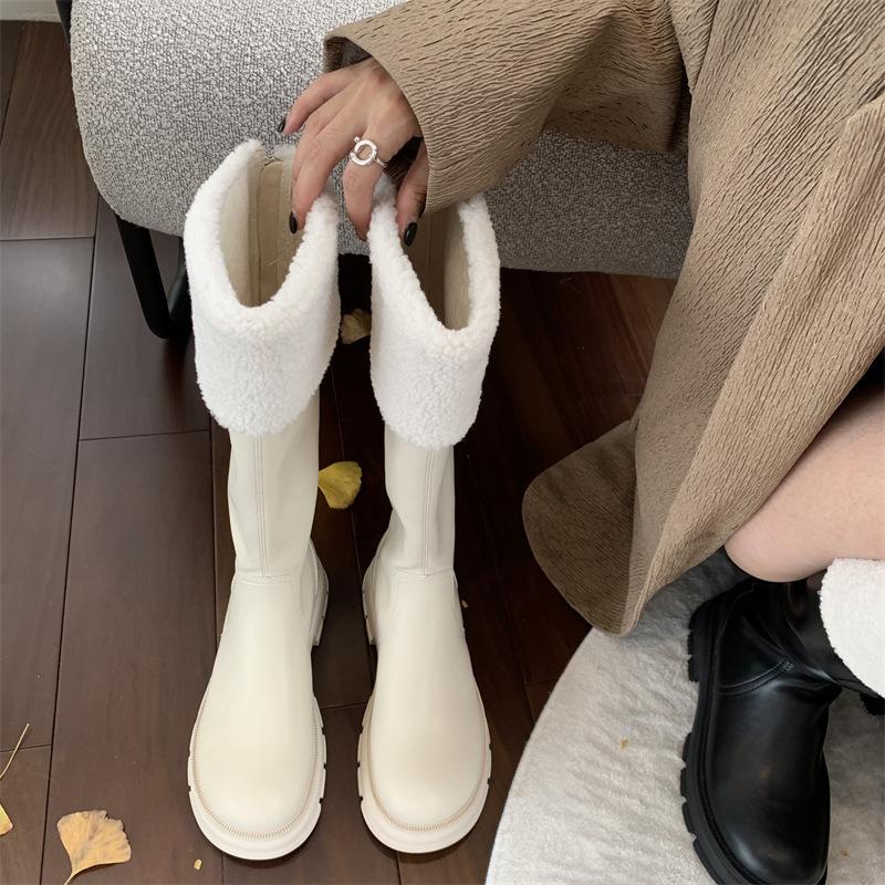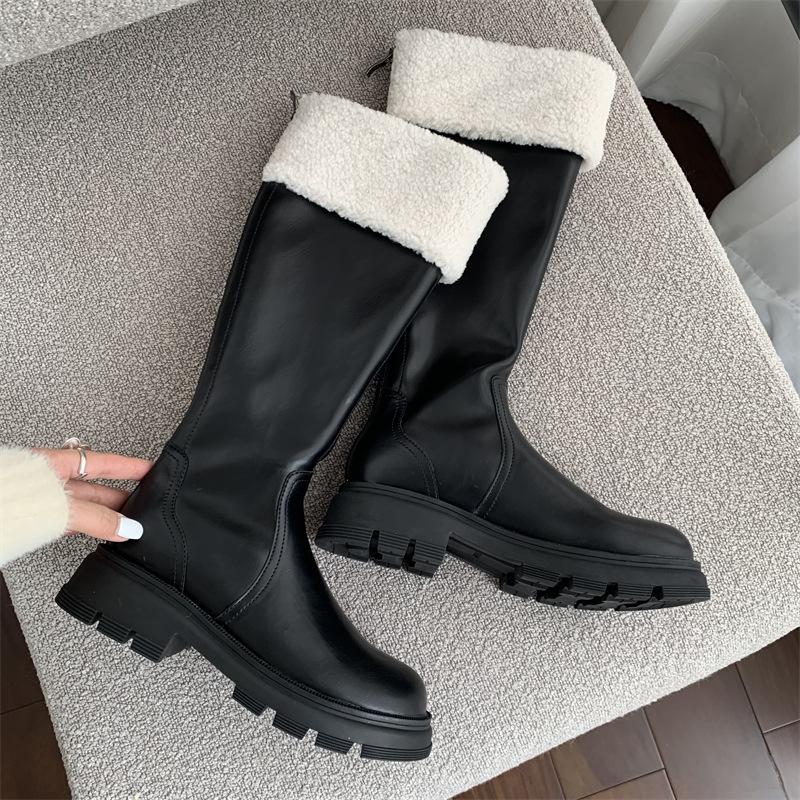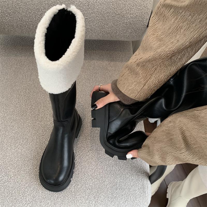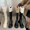 Botas altas de caballero de tubo largo con suela gruesa y nicho para mujer, otoño e invierno 2024, nuevas botas de algodón de felpa, botas de nieve