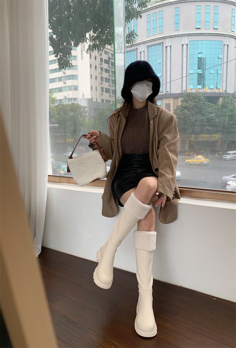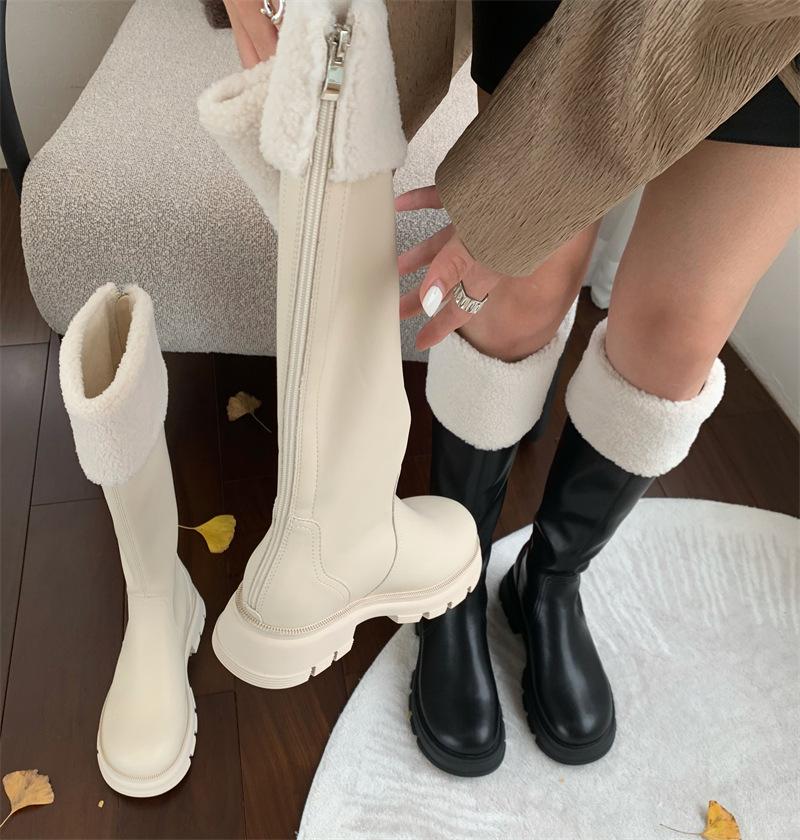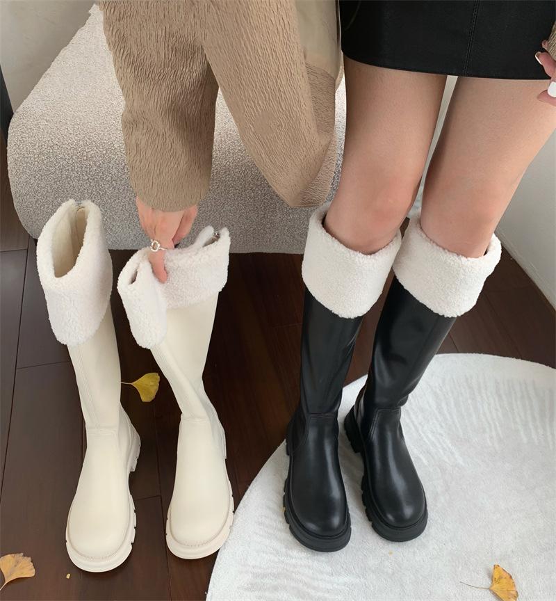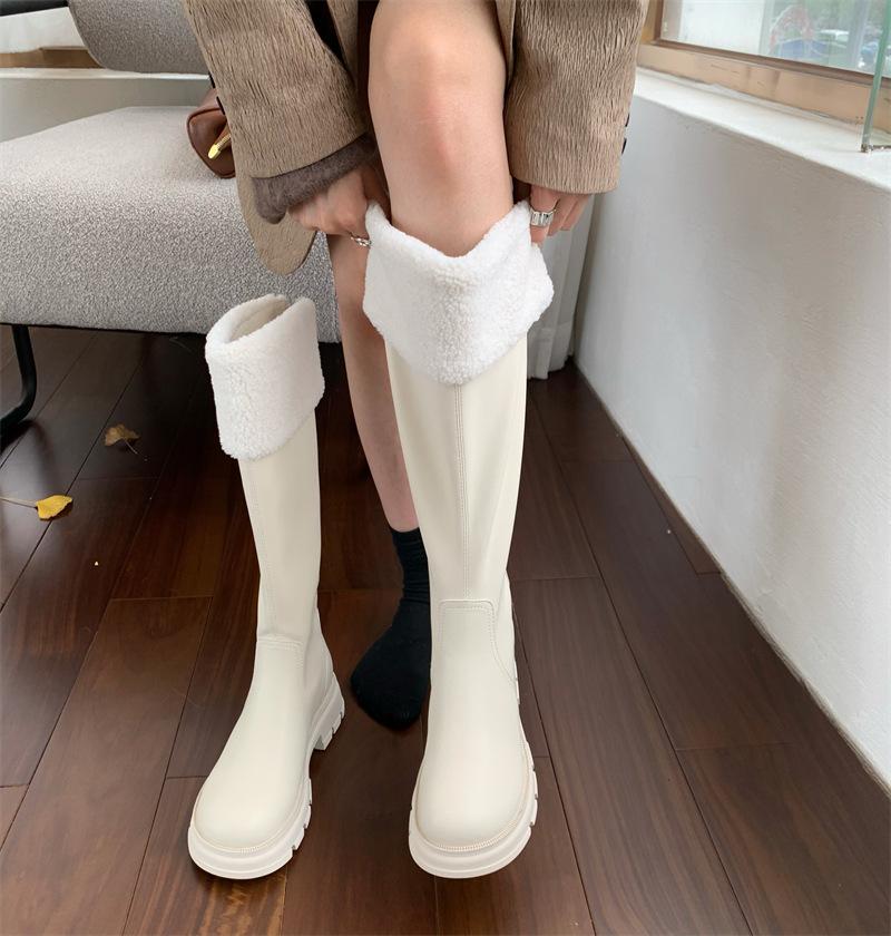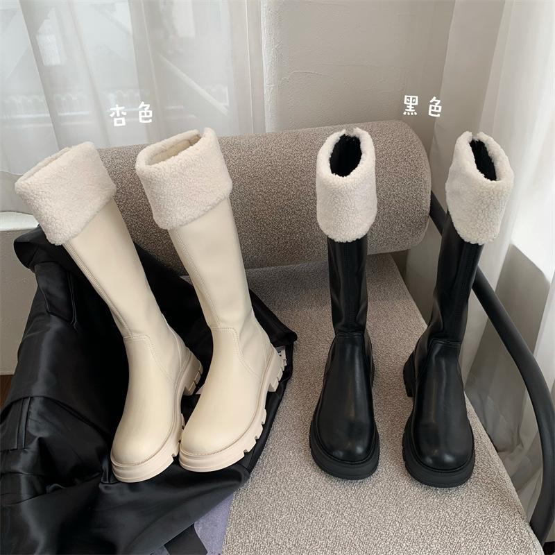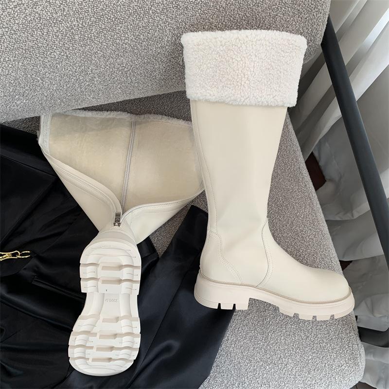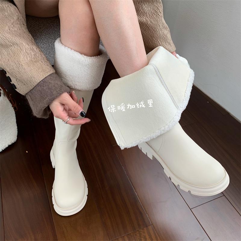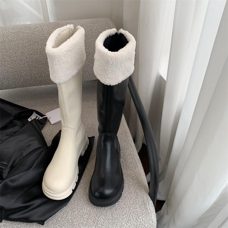 Botas altas de caballero de tubo largo con suela gruesa y nicho para mujer, otoño e invierno 2024, nuevas botas de algodón de felpa, botas de nieve