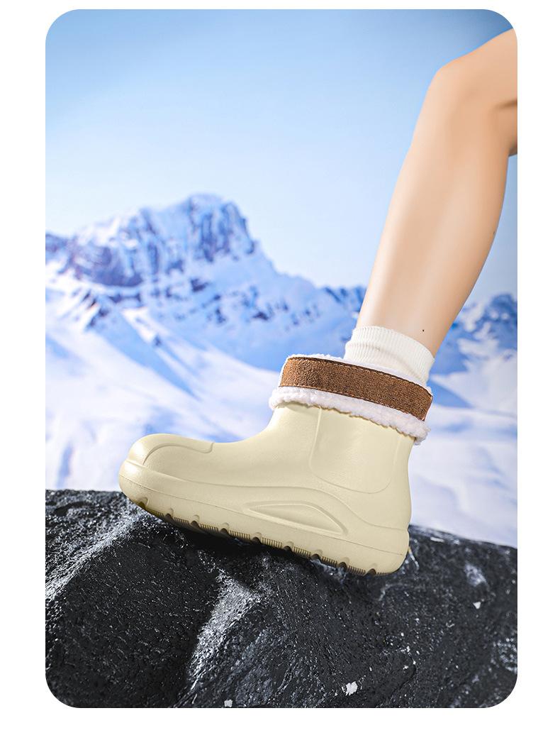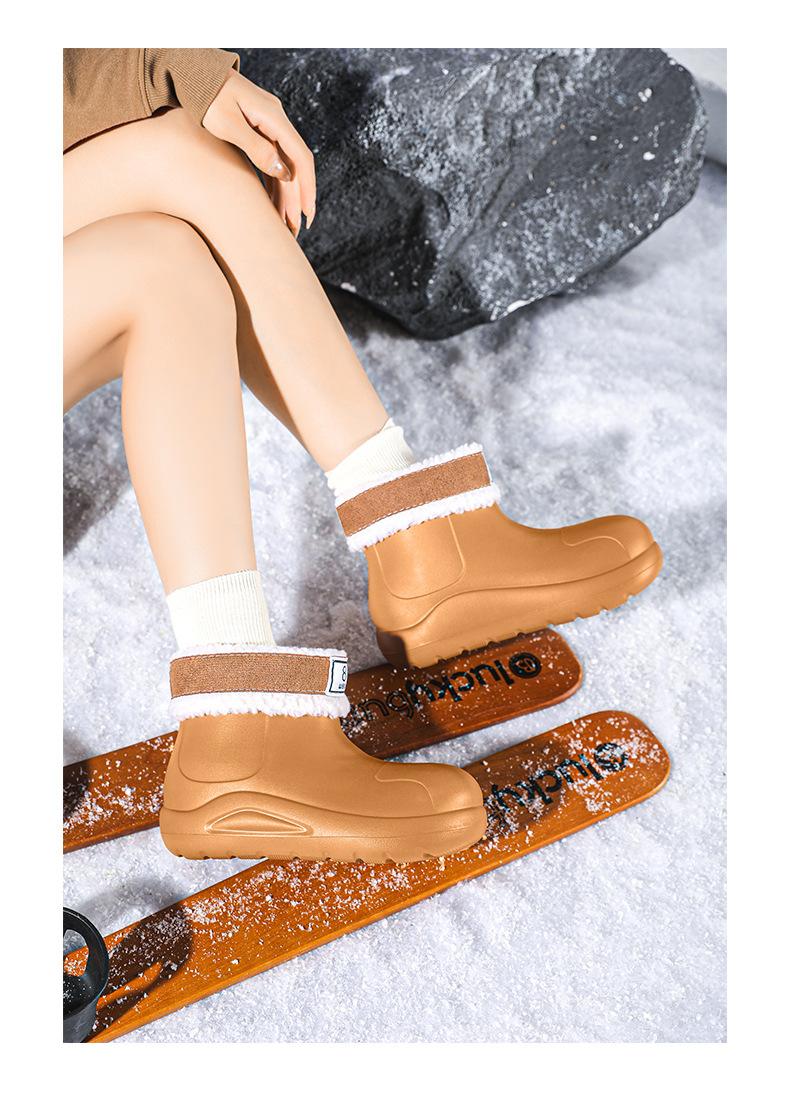 Compra Botas de lluvia cortas con forro polar transfronterizo, cálidas, para motocicleta, antideslizantes, resistentes al desgaste, para acampar, de moda, botas Martin de invierno para mujer al por mayor en Joom.pro