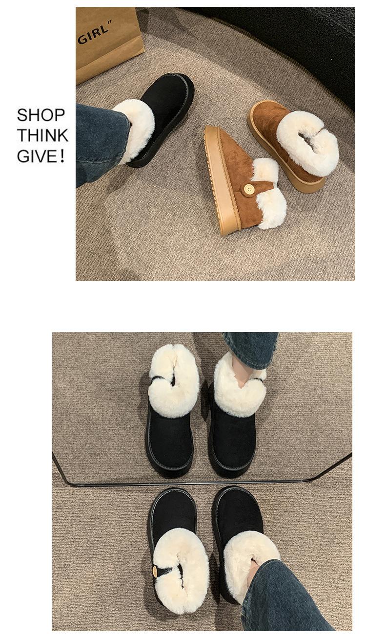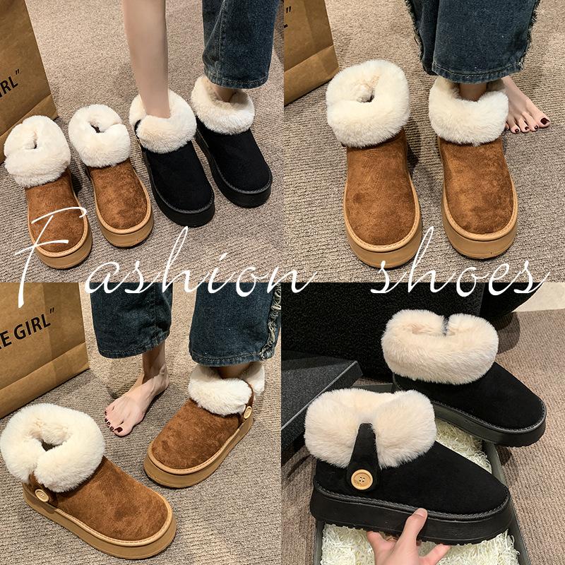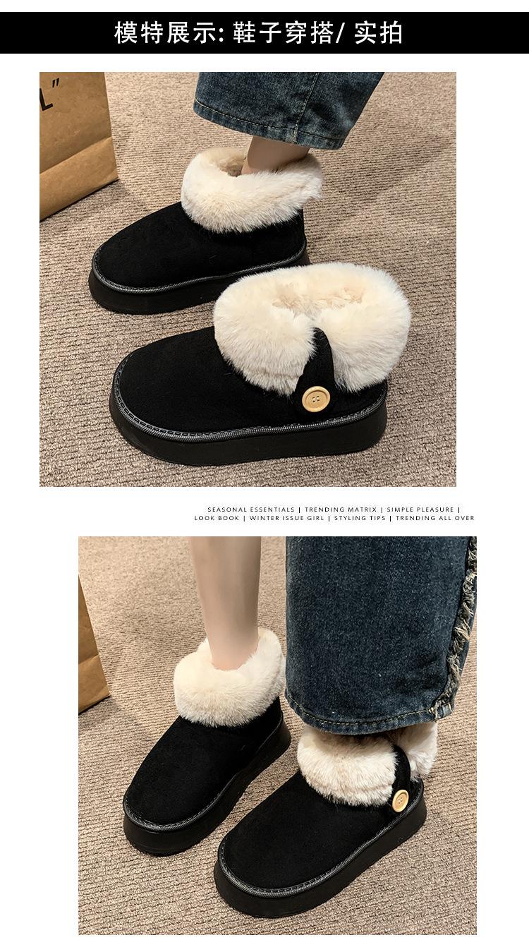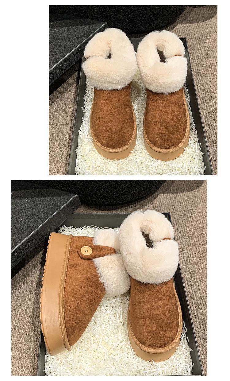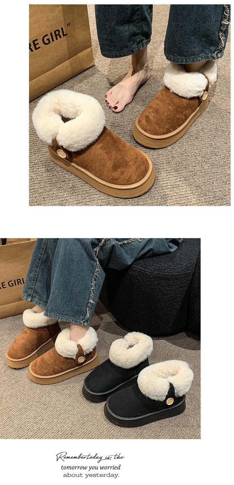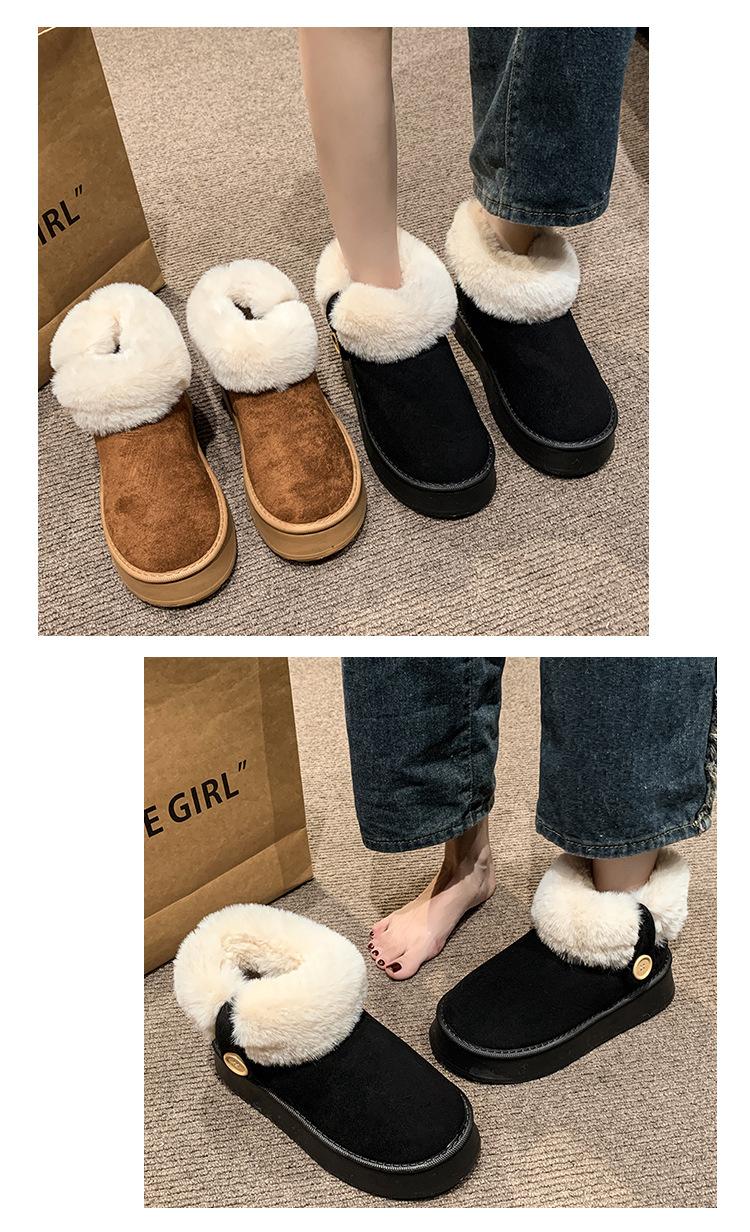 Zapatos de Algodón Mao Mao para Mujer Invierno Ropa Exterior Botas de Caña Alta 2024 Zapatos de Plataforma Tipo Pan Zapatos de Gamuza con Forro Polar Cálido Botas de Nieve Acolchadas
