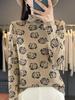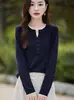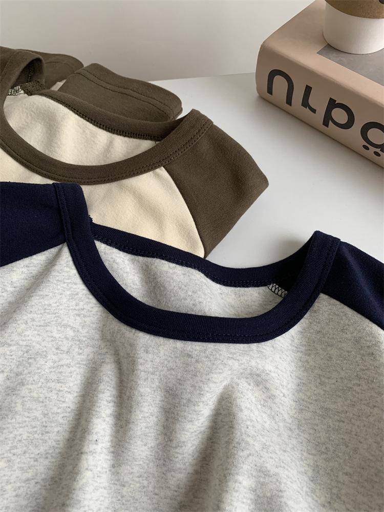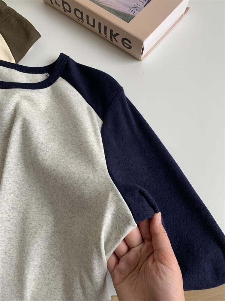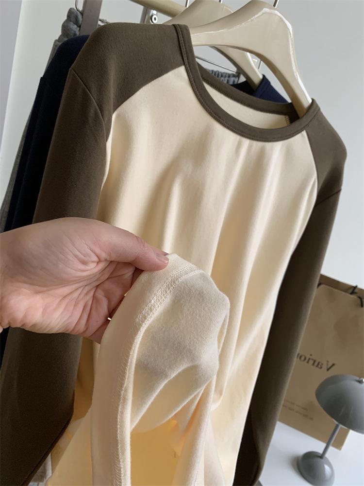 Camiseta de cuello redondo y manga larga cepillada para mujer, jersey de otoño e invierno, nueva camiseta holgada, sencilla, gruesa, cálida, con contraste de color.
