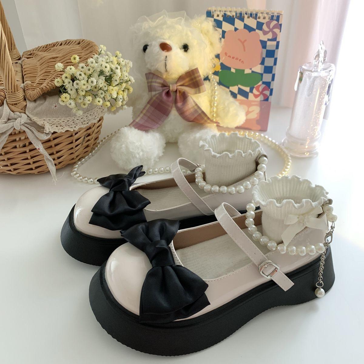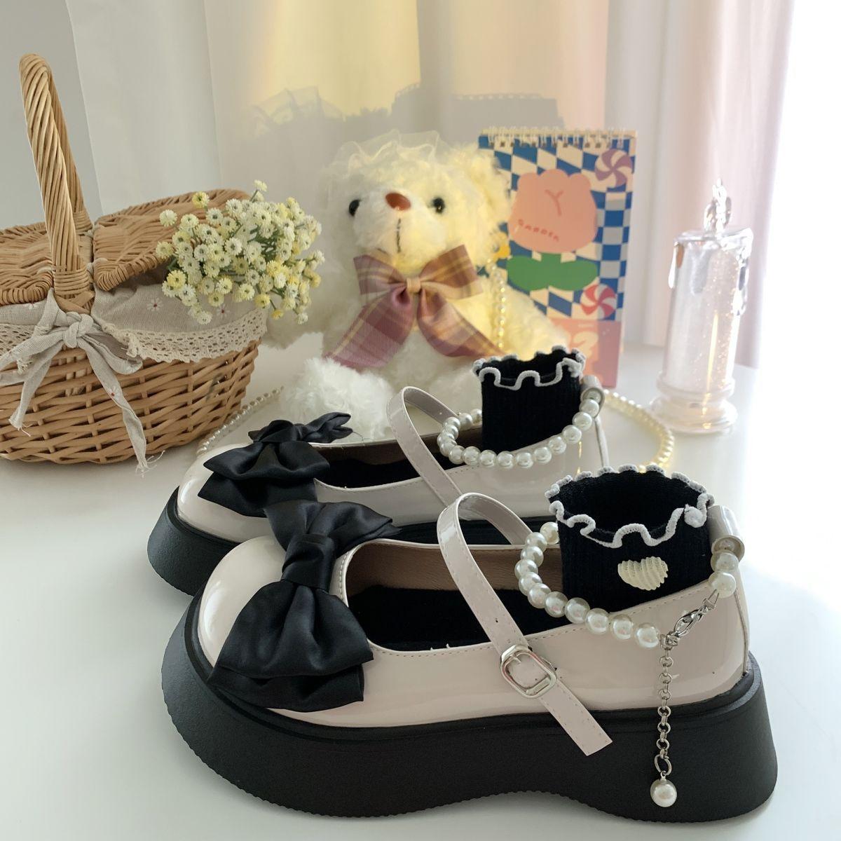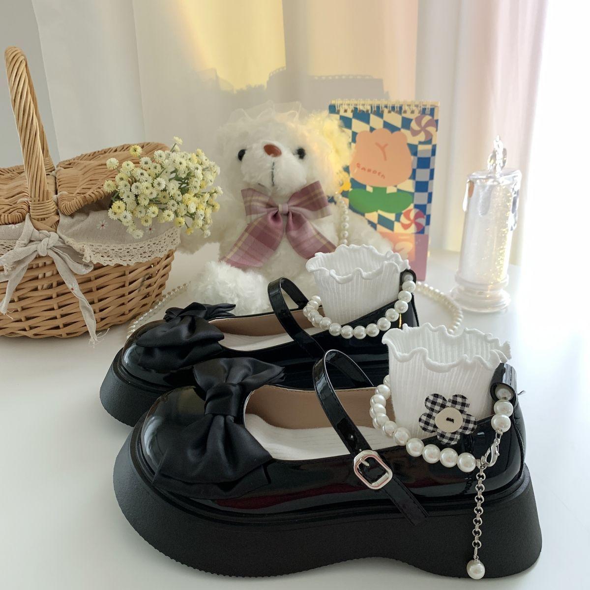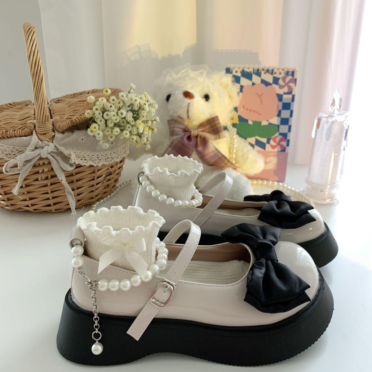 Zapatos Mary Jane de una sola capa con lazo de perla, zapatos japoneses JK de cuero pequeños con suela gruesa para mujer, zapatos de punta redonda con aumento de altura para estudiantes, lindos zapatos de punta grande.