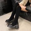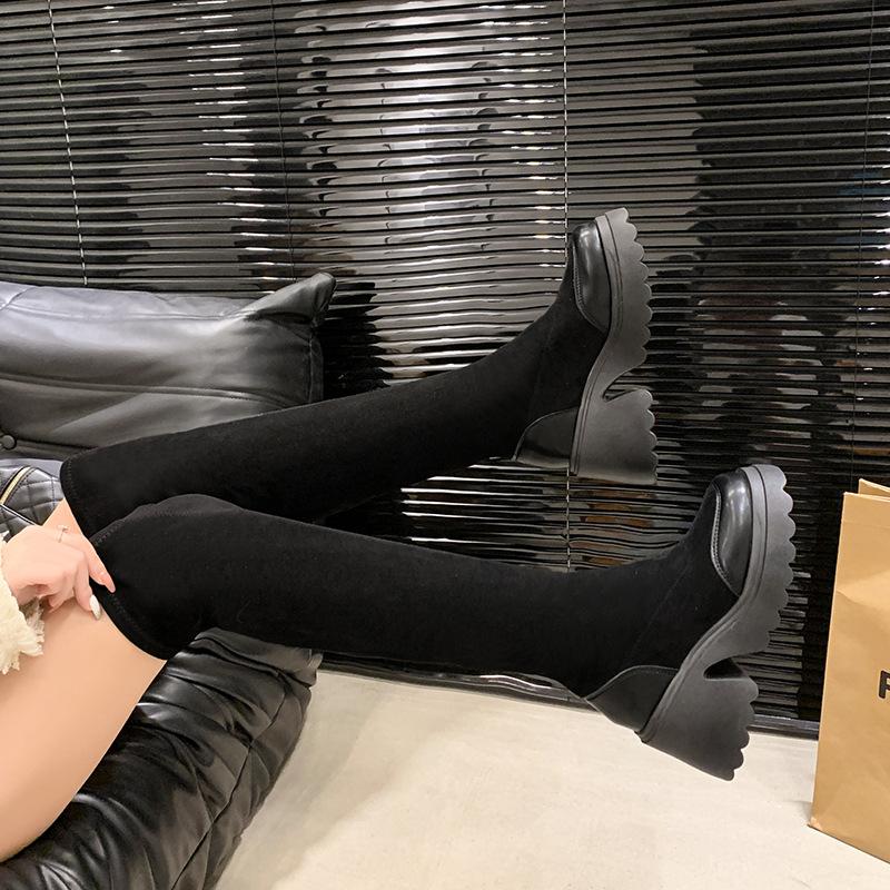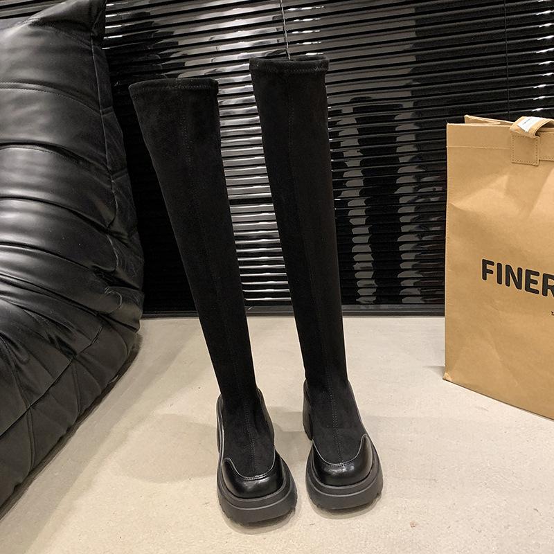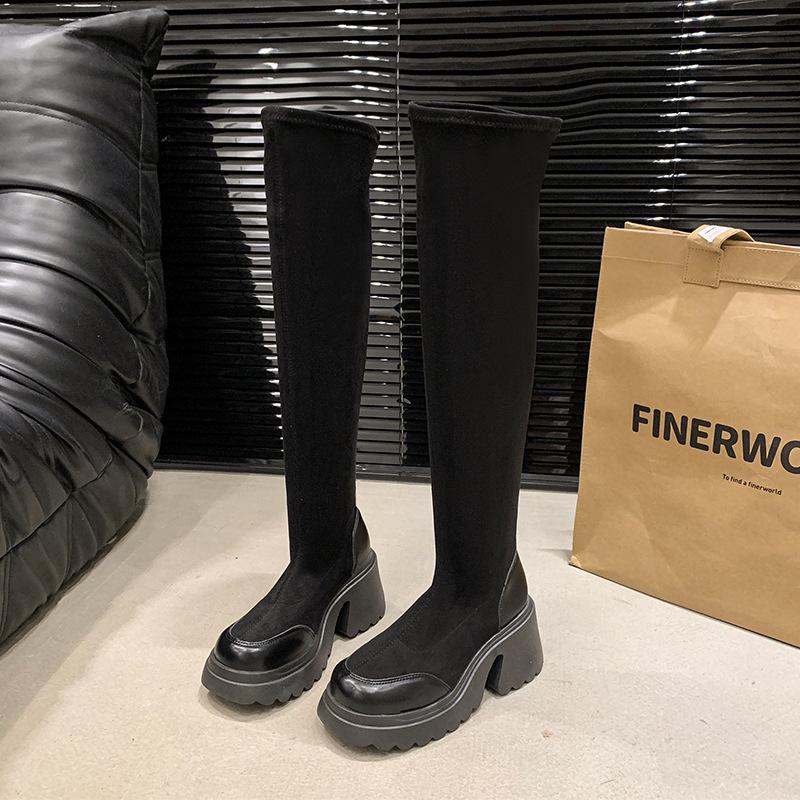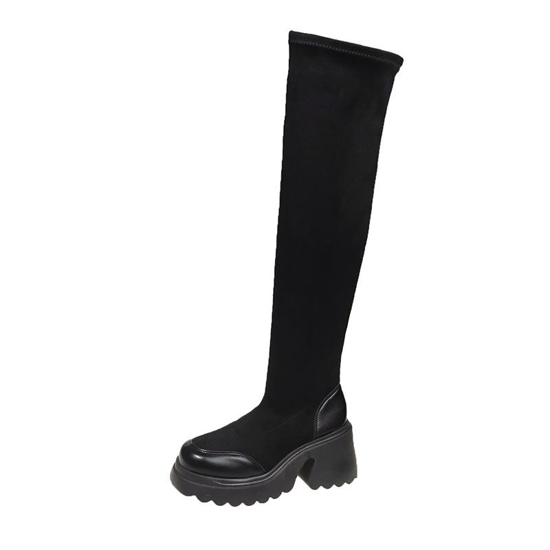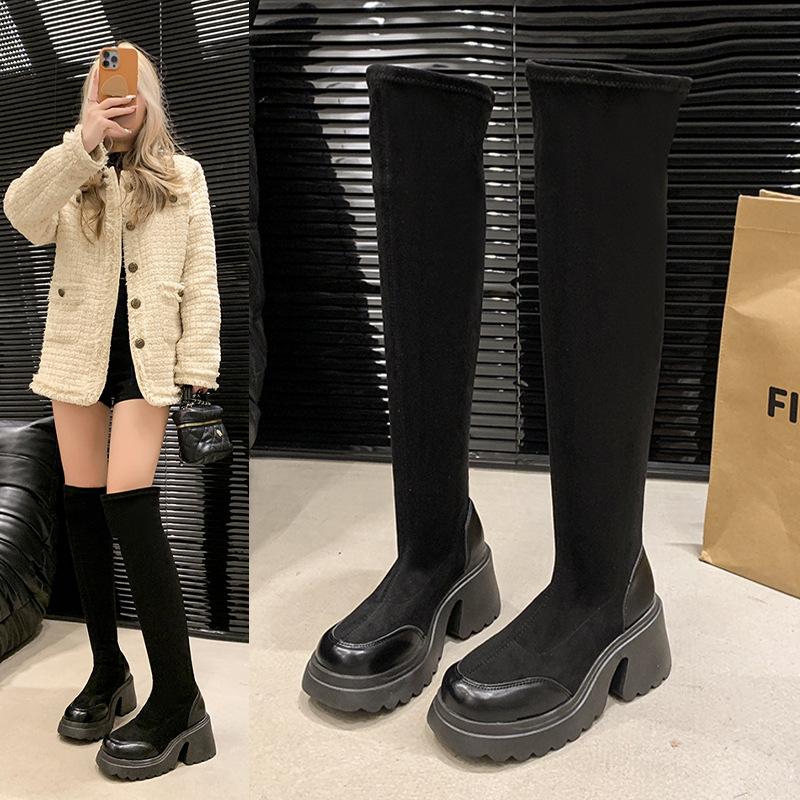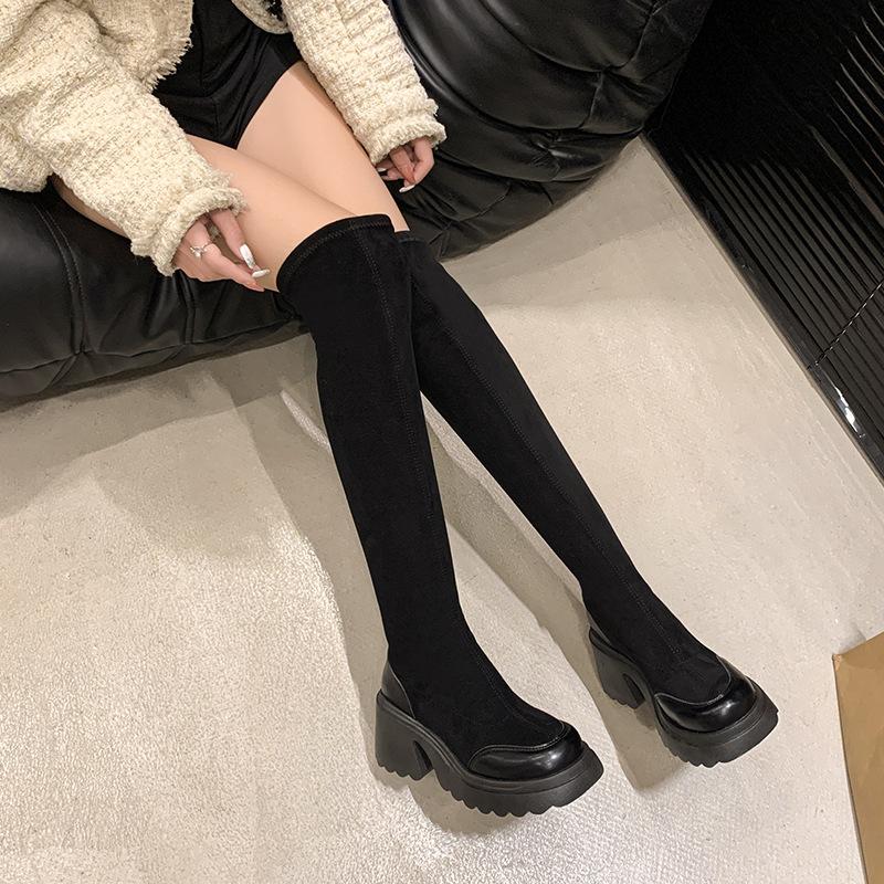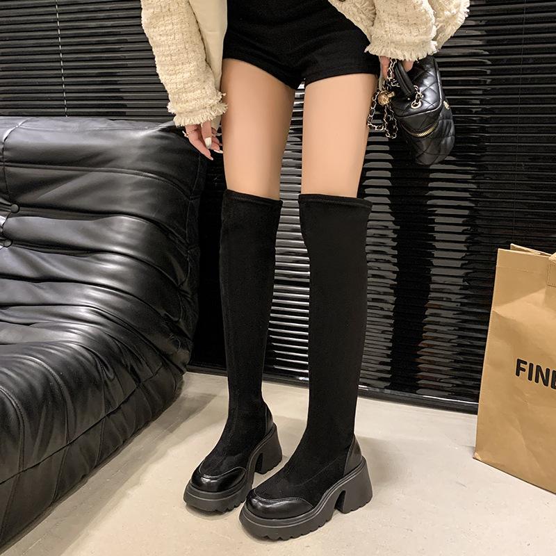 Botas por encima de la rodilla Maillard retro de otoño e invierno 2024 con calcetines finos y elásticos de tacón alto y suela gruesa para mujer