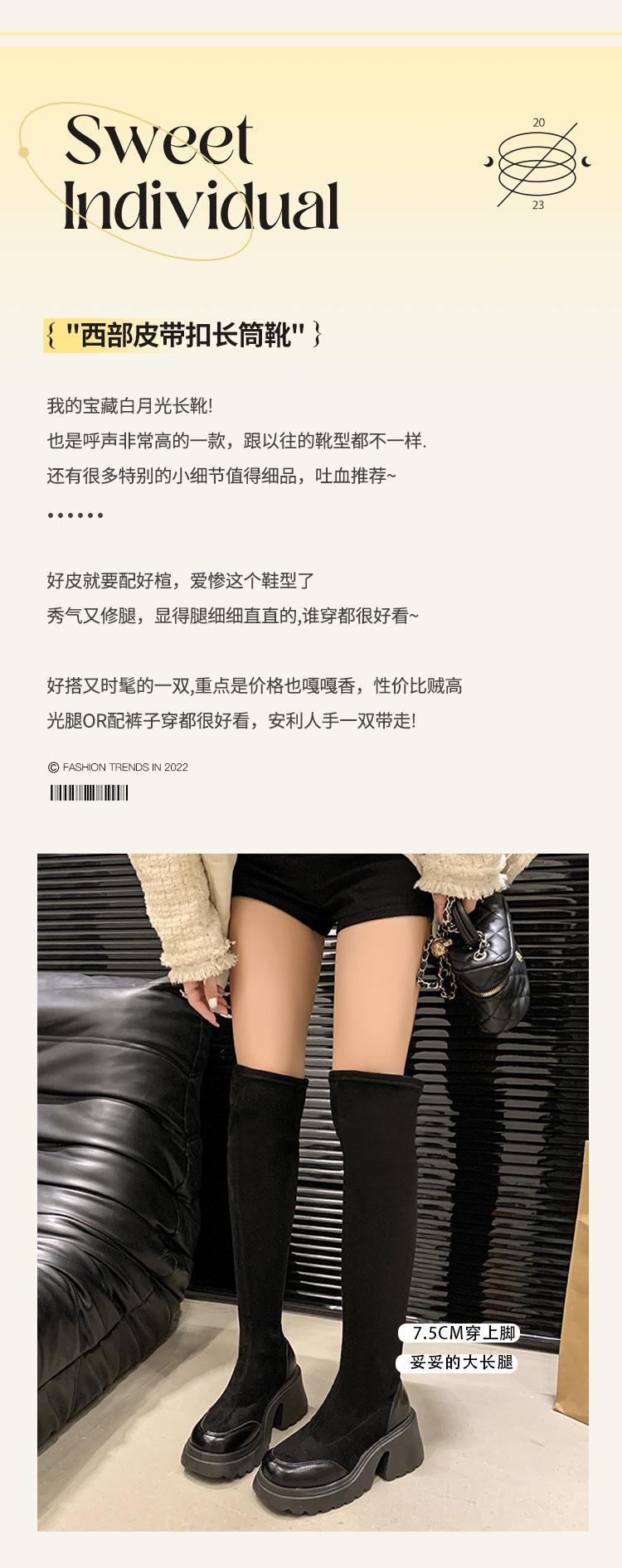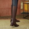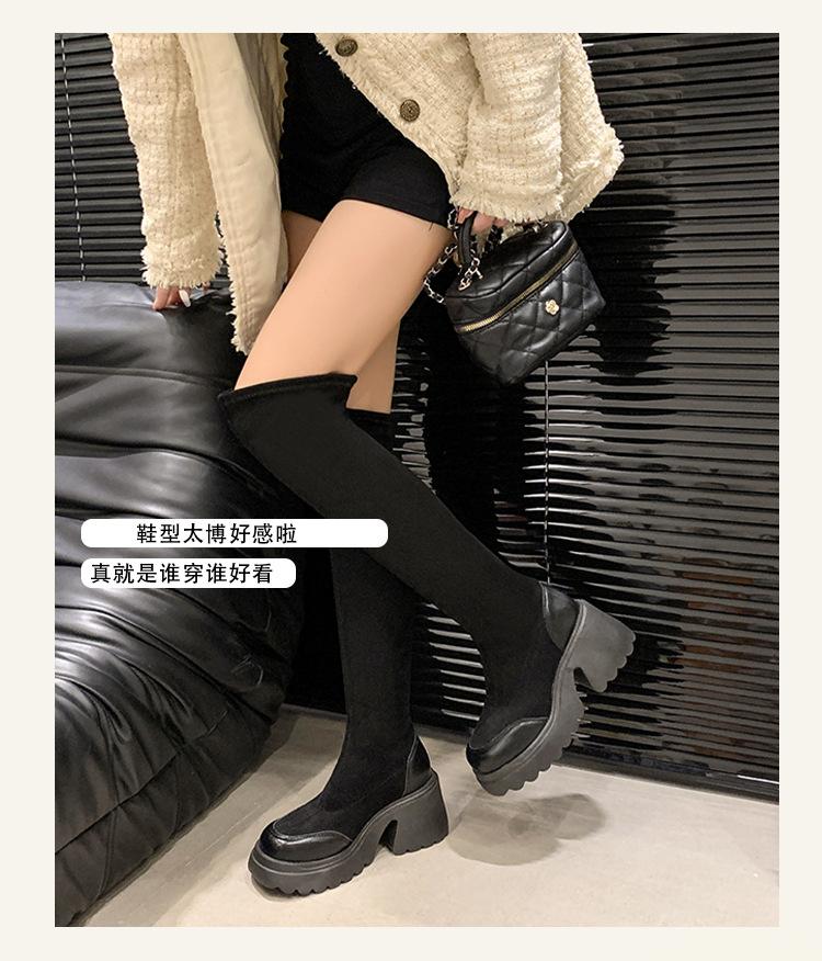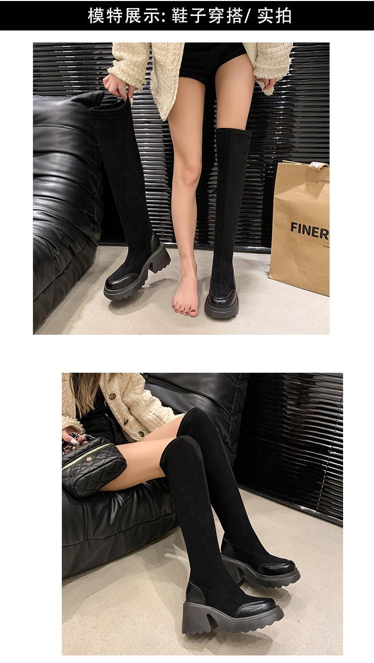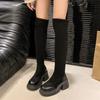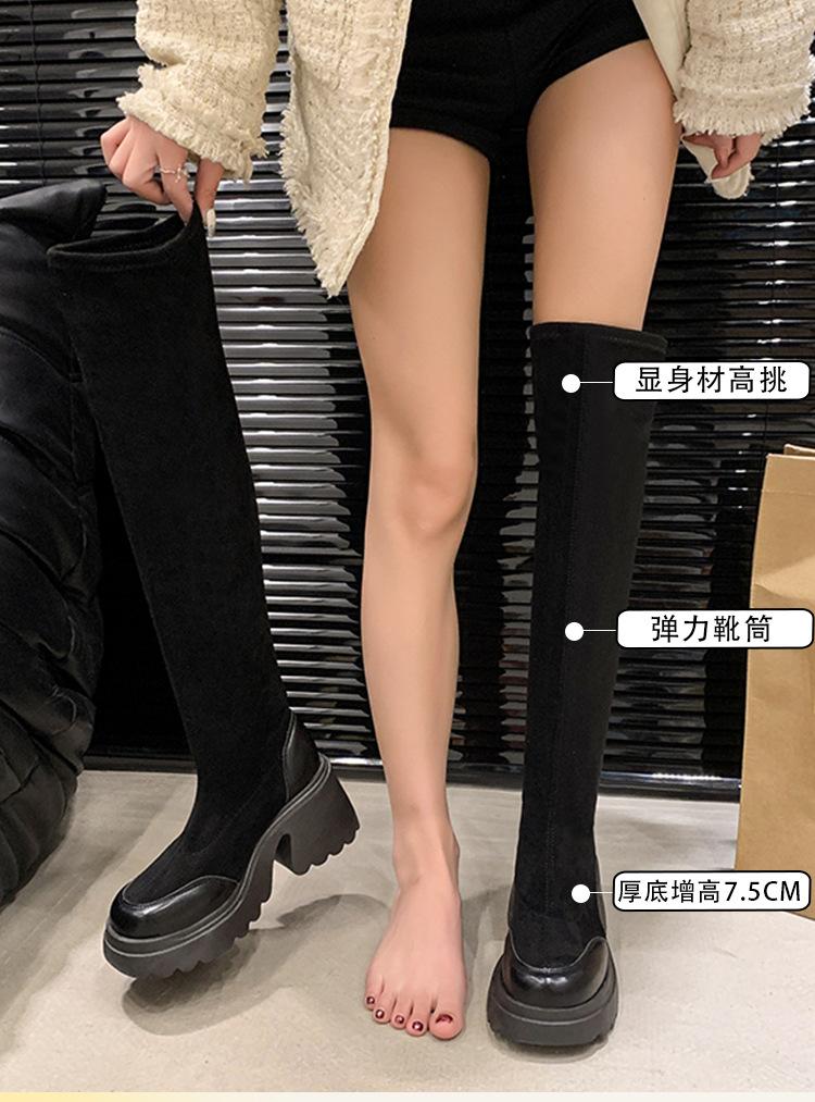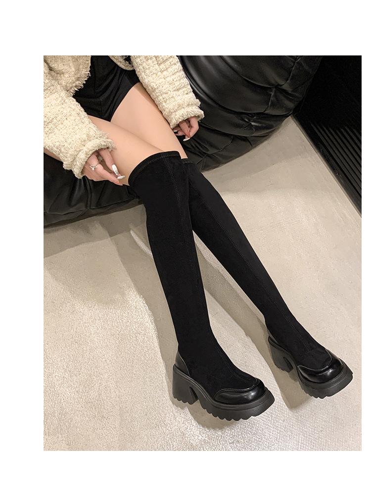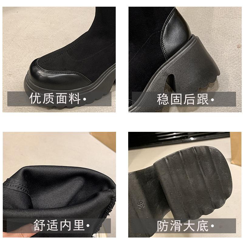 Botas por encima de la rodilla Maillard retro de otoño e invierno 2024 con calcetines finos y elásticos de tacón alto y suela gruesa para mujer