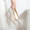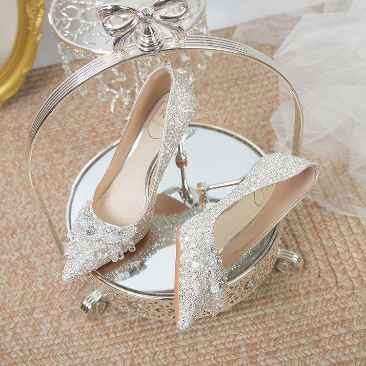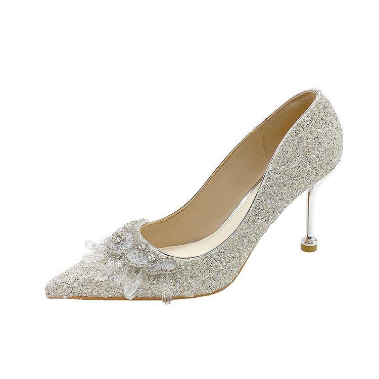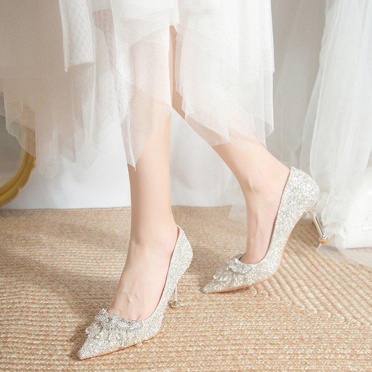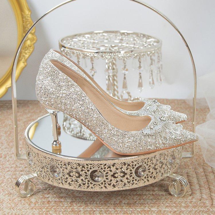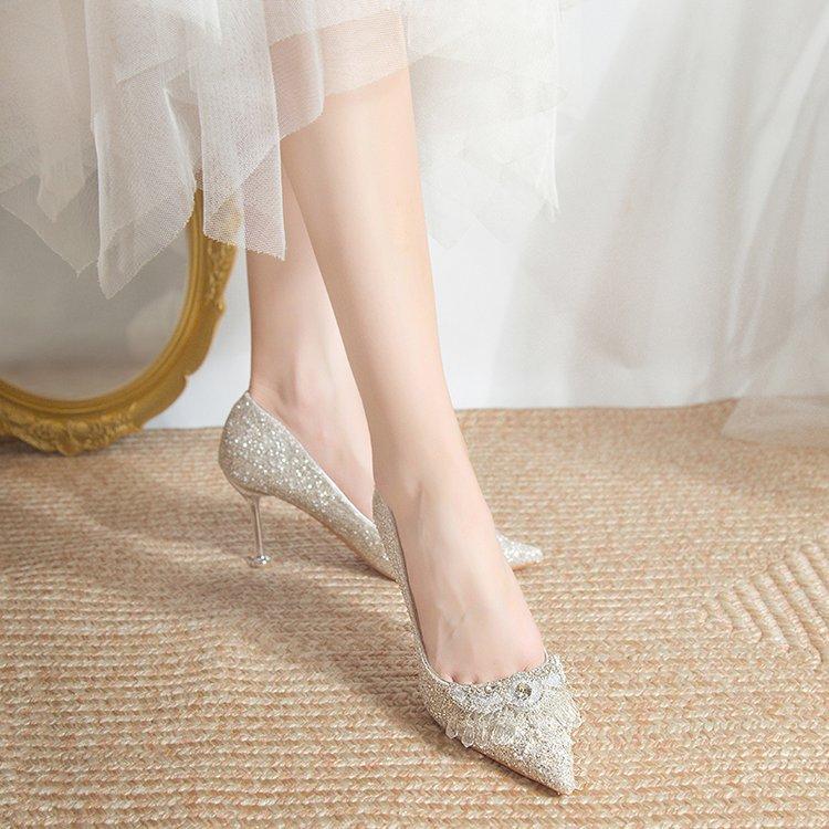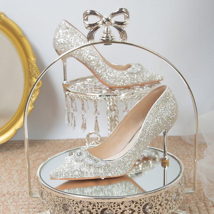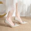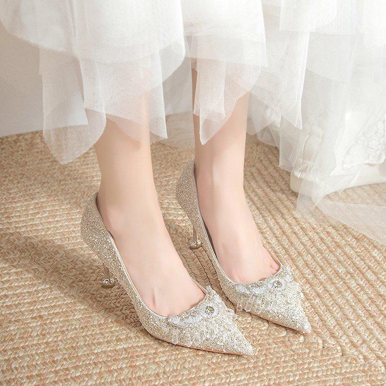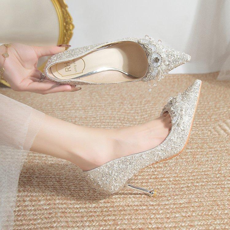 Zapatos de Boda de Punta Zapatos de Mujer 2025 Nuevo Vestido de Novia Principal Tacones Altos Zapatos de Novia Zapatos de Dama de Honor Zapatos de Compromiso de Cristal Francés