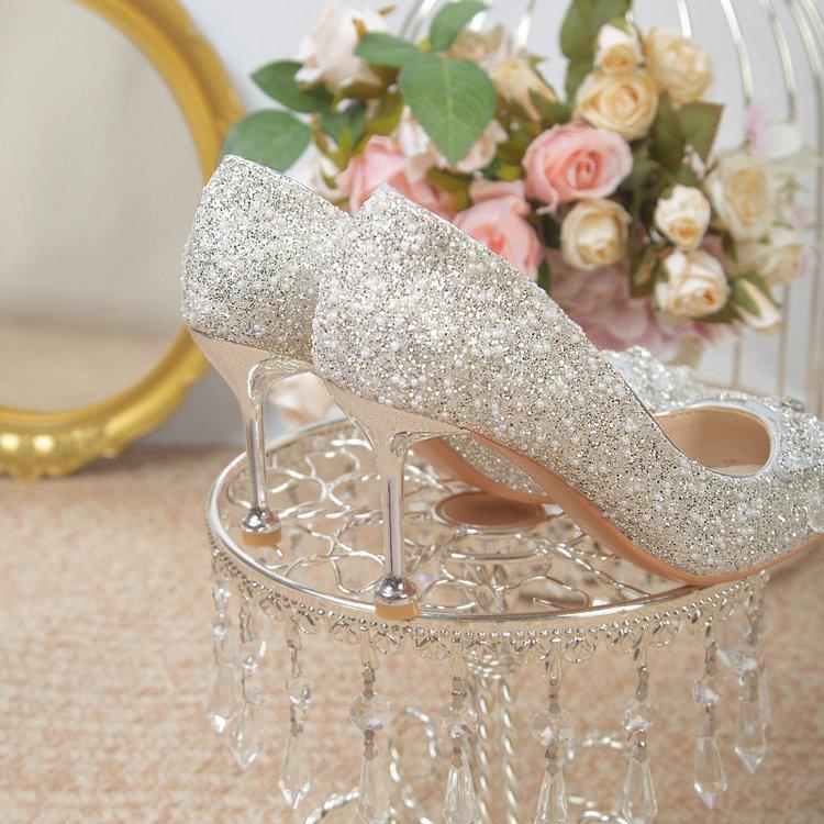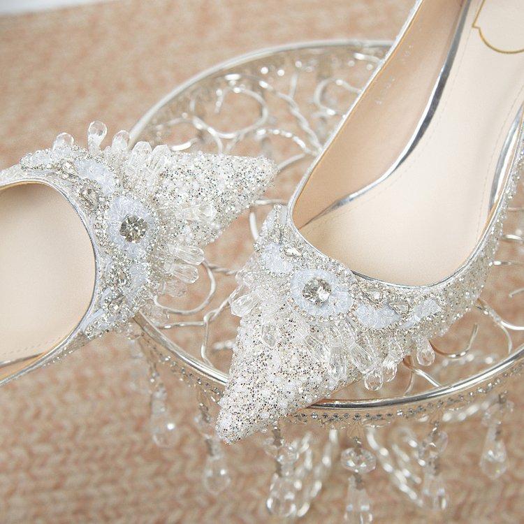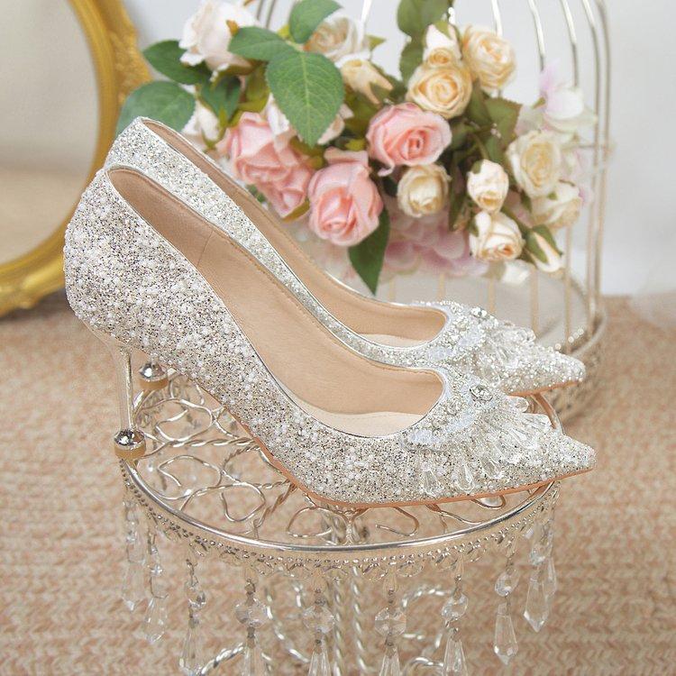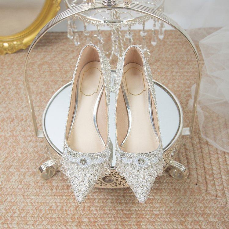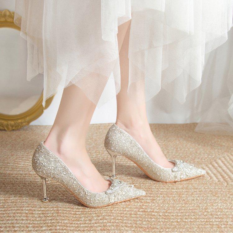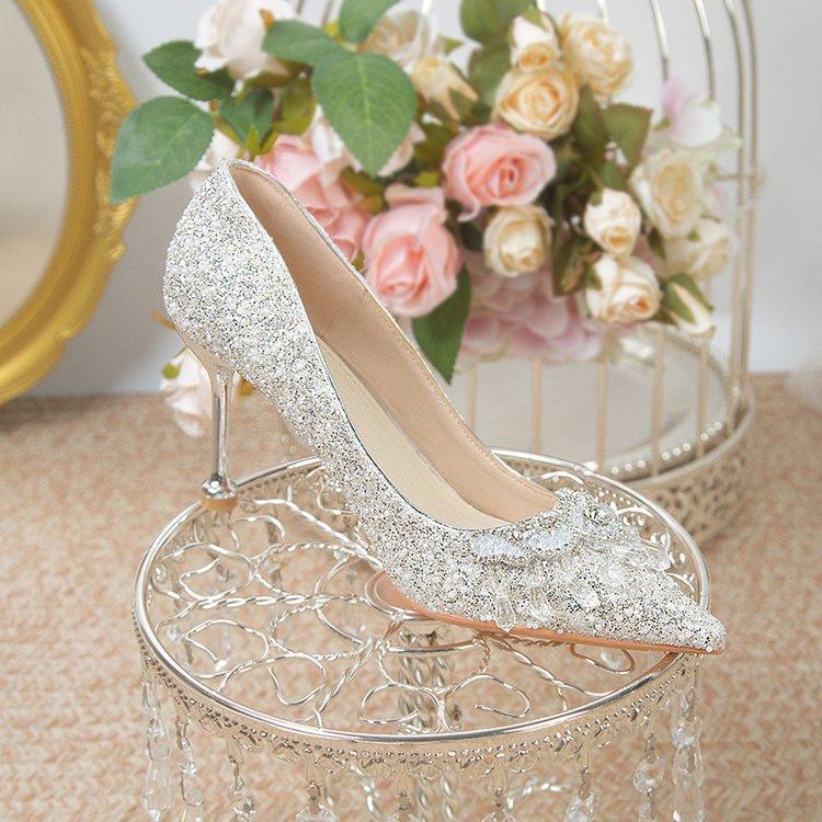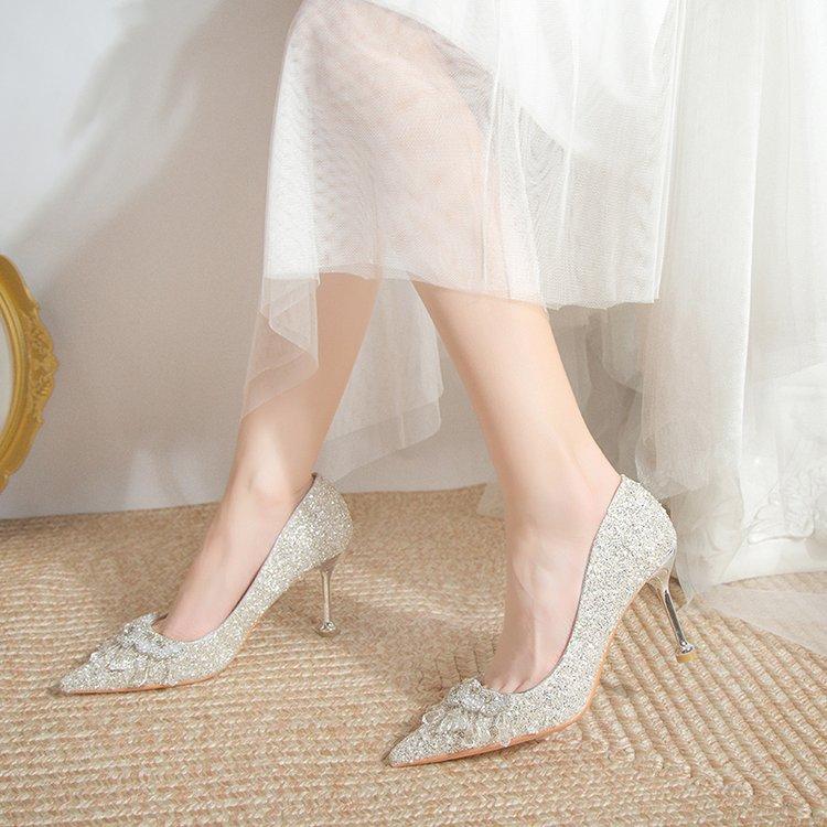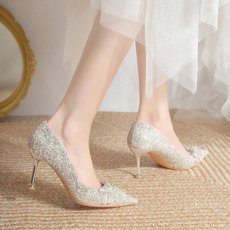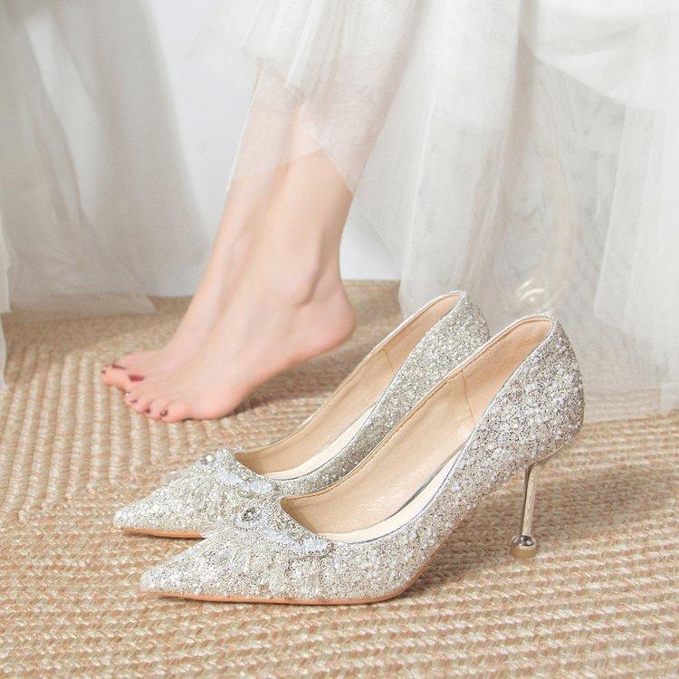 Zapatos de Boda de Punta Zapatos de Mujer 2025 Nuevo Vestido de Novia Principal Tacones Altos Zapatos de Novia Zapatos de Dama de Honor Zapatos de Compromiso de Cristal Francés