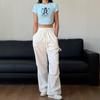 Otoño 2024 Nuevo Pantalón Deportivo de Tirantes de Cintura Alta Spice Girls para Mujer, Casual Americano Falso de Dos Piezas Slim-fit Microacampanado