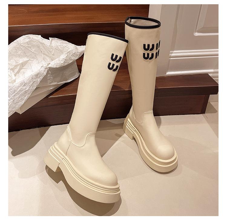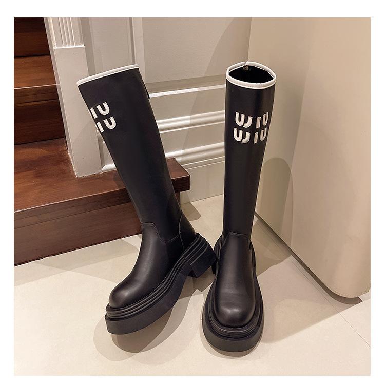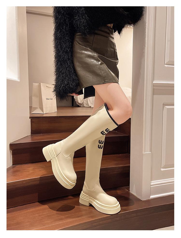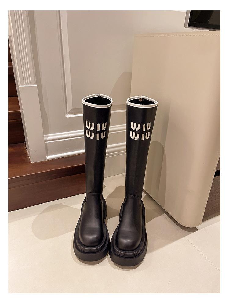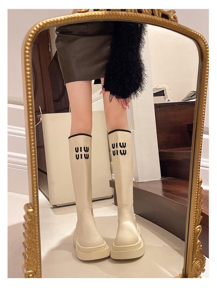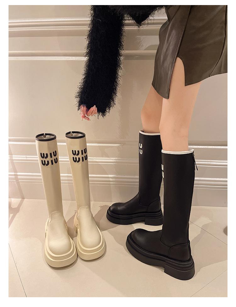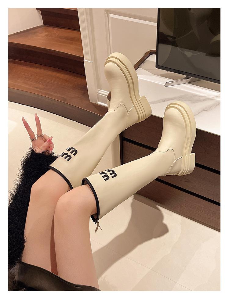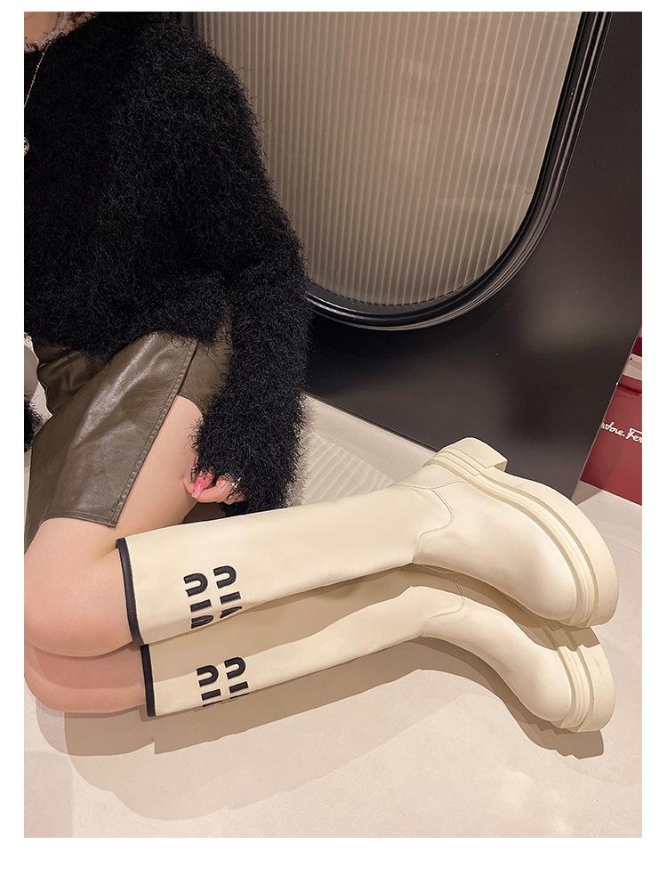 Botas Largas para Mujer 2024 Otoño e Invierno Nuevas Pero Botas hasta la Rodilla Fondo Grueso Aumento Adelgazante Moda Letra Botas de Caballero