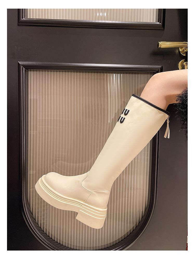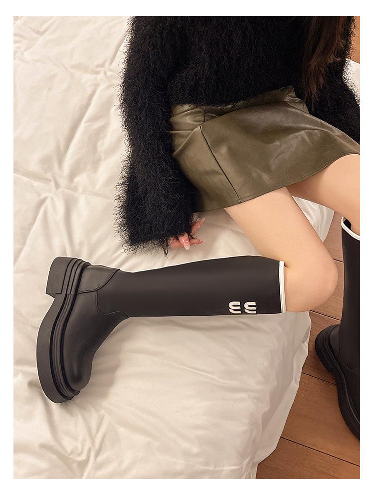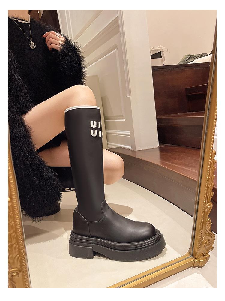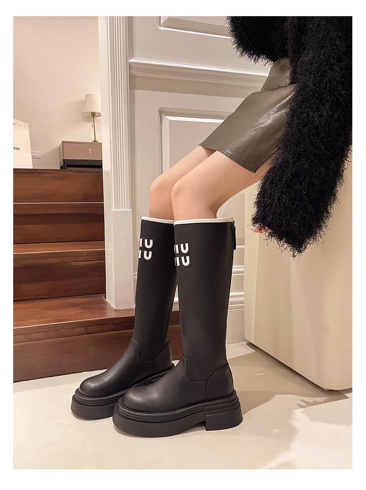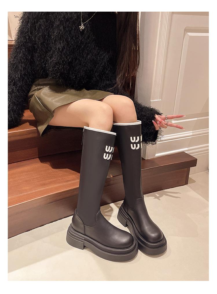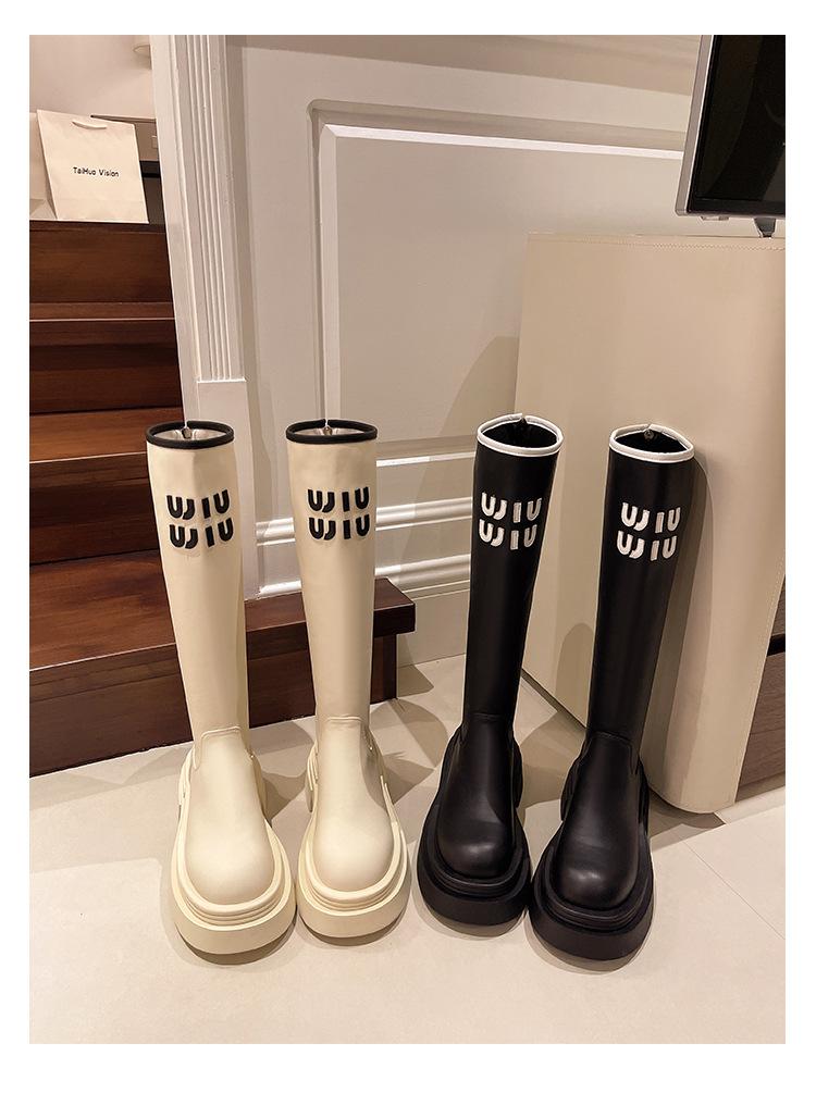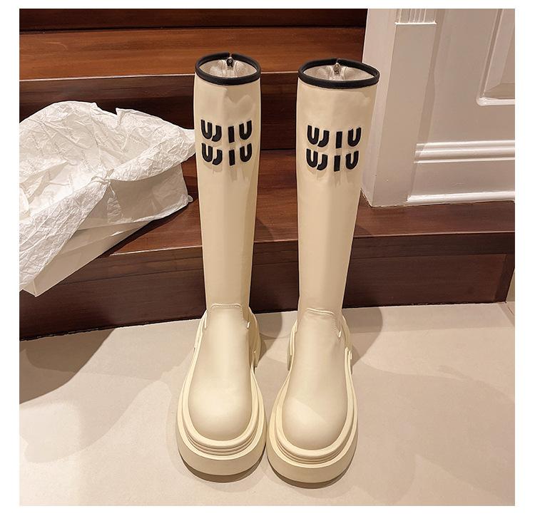 Botas Largas para Mujer 2024 Otoño e Invierno Nuevas Pero Botas hasta la Rodilla Fondo Grueso Aumento Adelgazante Moda Letra Botas de Caballero