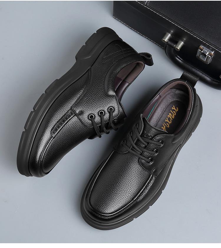 Zapatos de Cuero para Hombre 2024 Otoño e Invierno Nuevos Zapatos de Vestir de Negocios Cuero de Vaca con Cordones Zapatos Planos Negros Zapatos Profesionales de Trabajo
