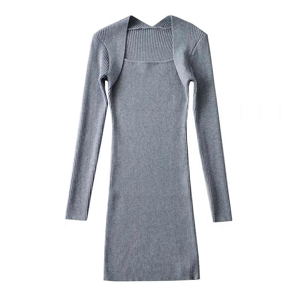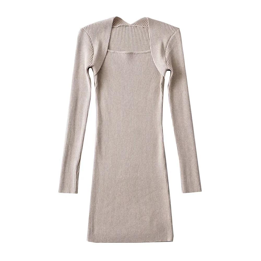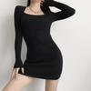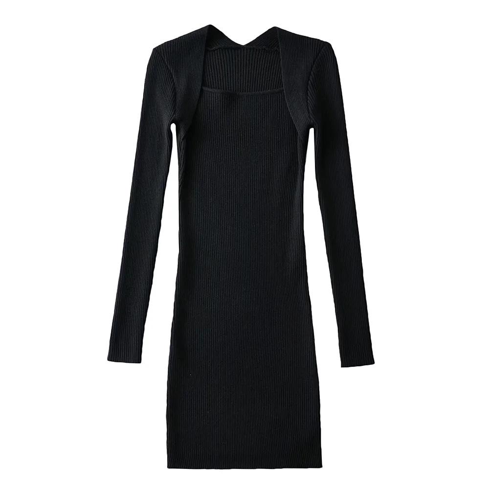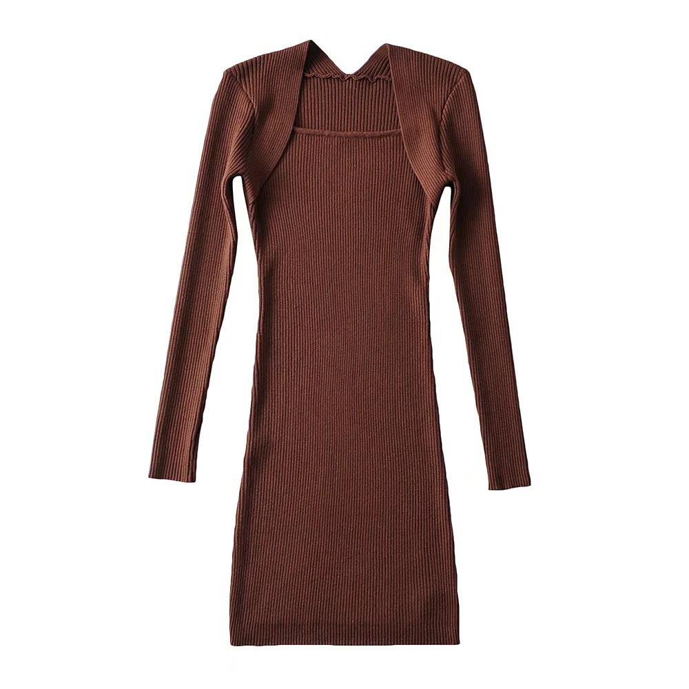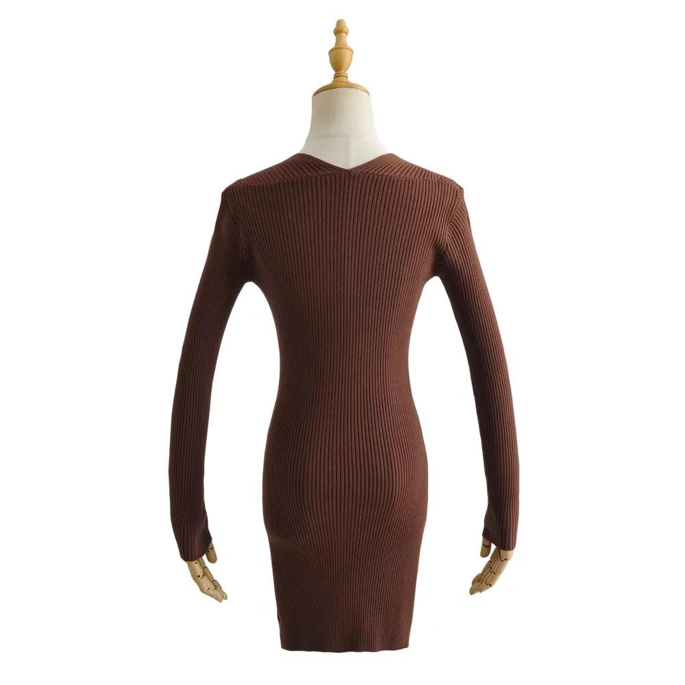 Vestido Tejido Sexy Adelgazante de Otoño e Invierno de Manga Larga Femenino Ceñido a las Caderas Ins Falda Corta para Mujeres