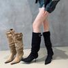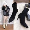 Botas altas con hebilla de cinturón y remaches para mujer, zapatos de tacón fino puntiagudo, botas largas elásticas, otoño e invierno, 2024