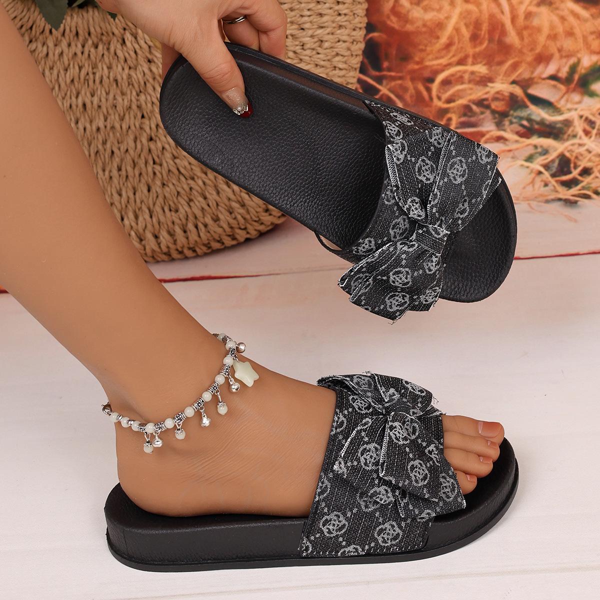 Zapatillas de Lazo de Suela Gruesa de Gran Tamaño para Exterior de Mujer Bordadas Sandalias de Playa Zapatillas