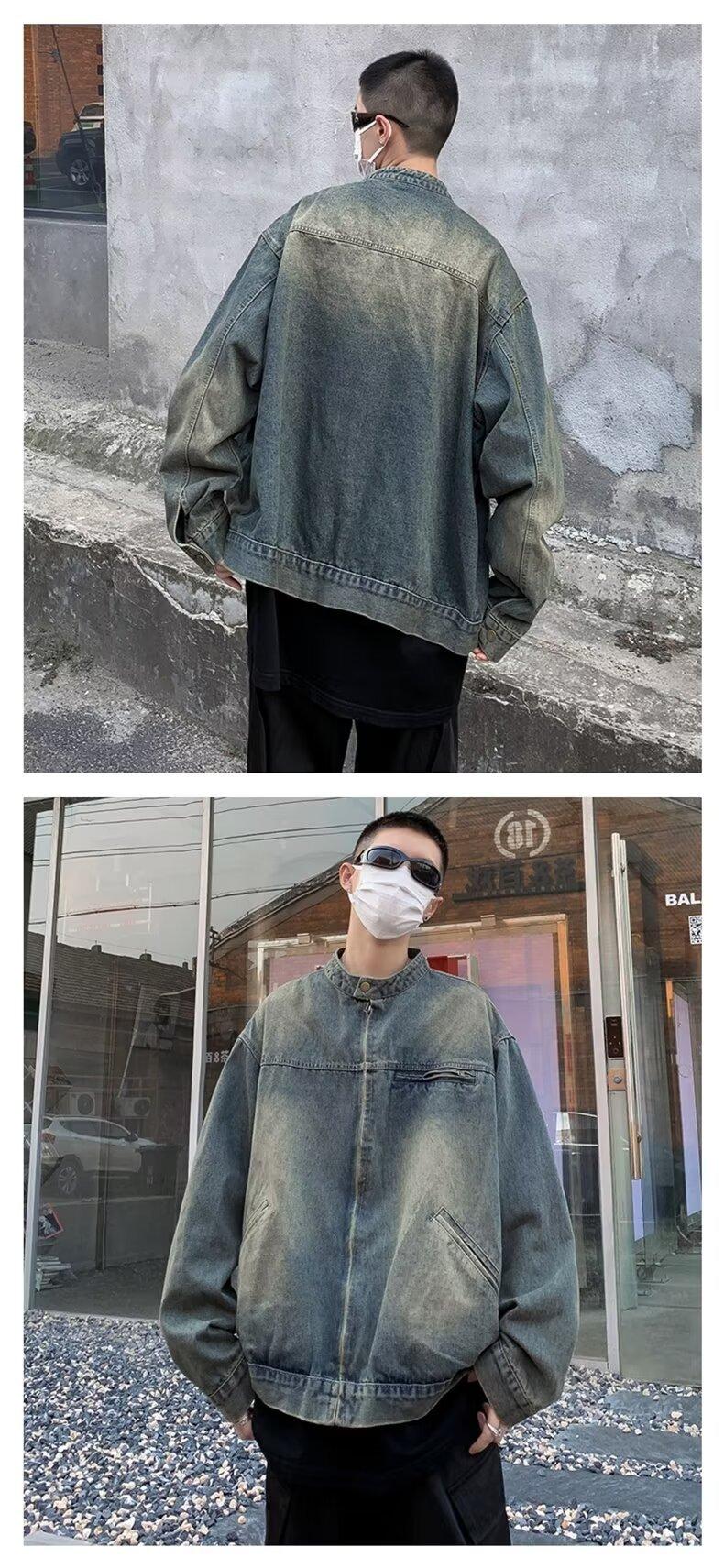Chaqueta de mezclilla retro lavada y desgastada para hombre, holgada y versátil, estilo Hong Kong, primavera y otoño 2024