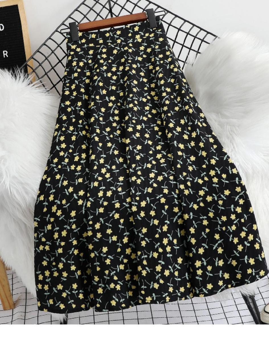 Compra Falda de gasa floral para mujer, de verano, de cintura alta, estampada, de aspecto entallado, elegante, que cubre la cadera, falda de paraguas de gran vuelo, de longitud media, de corte A al por mayor en Joom.pro
