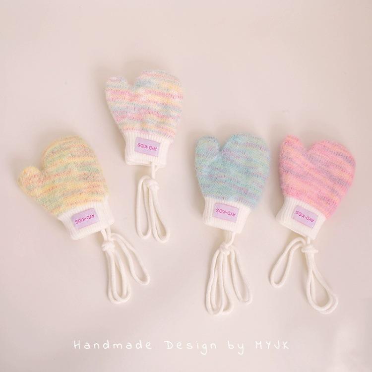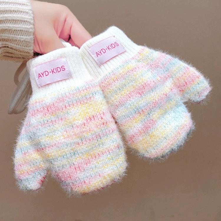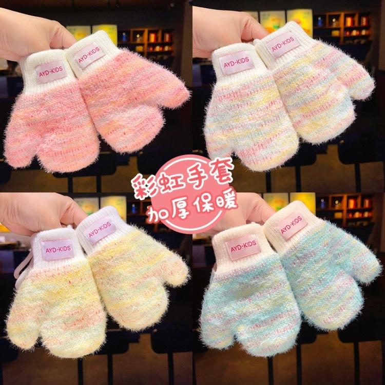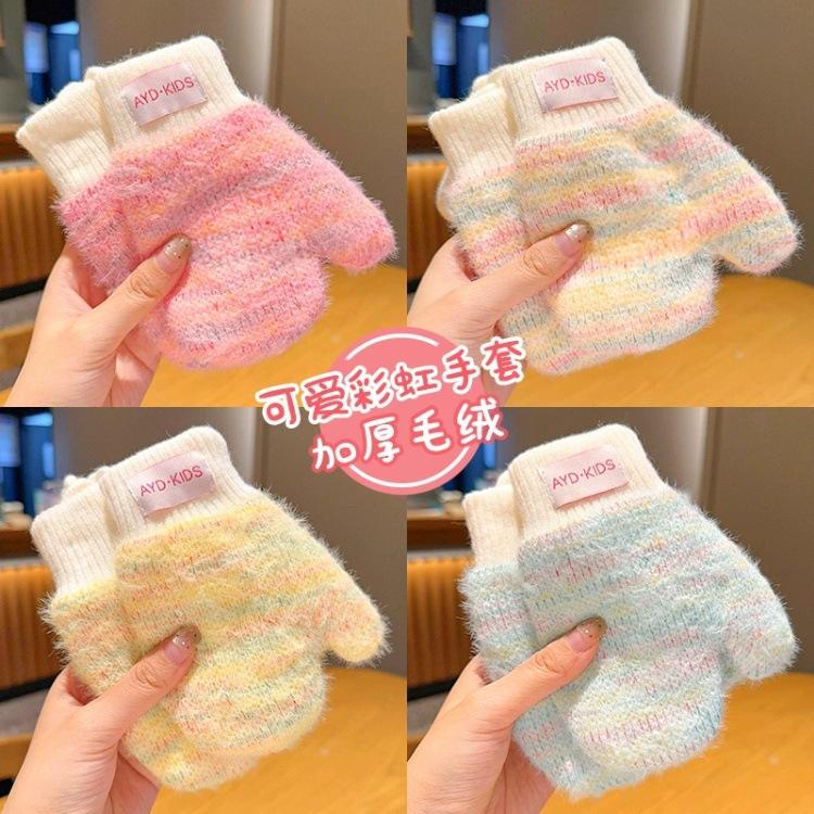 Lindos Guantes Arcoíris Niñas Otoño e Invierno Nuevos Calentador de Cuello para Niños con Forro Polar Manoplas para Niños Guantes con Estilo