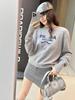 Suéter de cuello redondo con estampado de letras en jacquard y contraste de colores para otoño e invierno, nuevo, holgado e informal, combinable con todo para mujer.